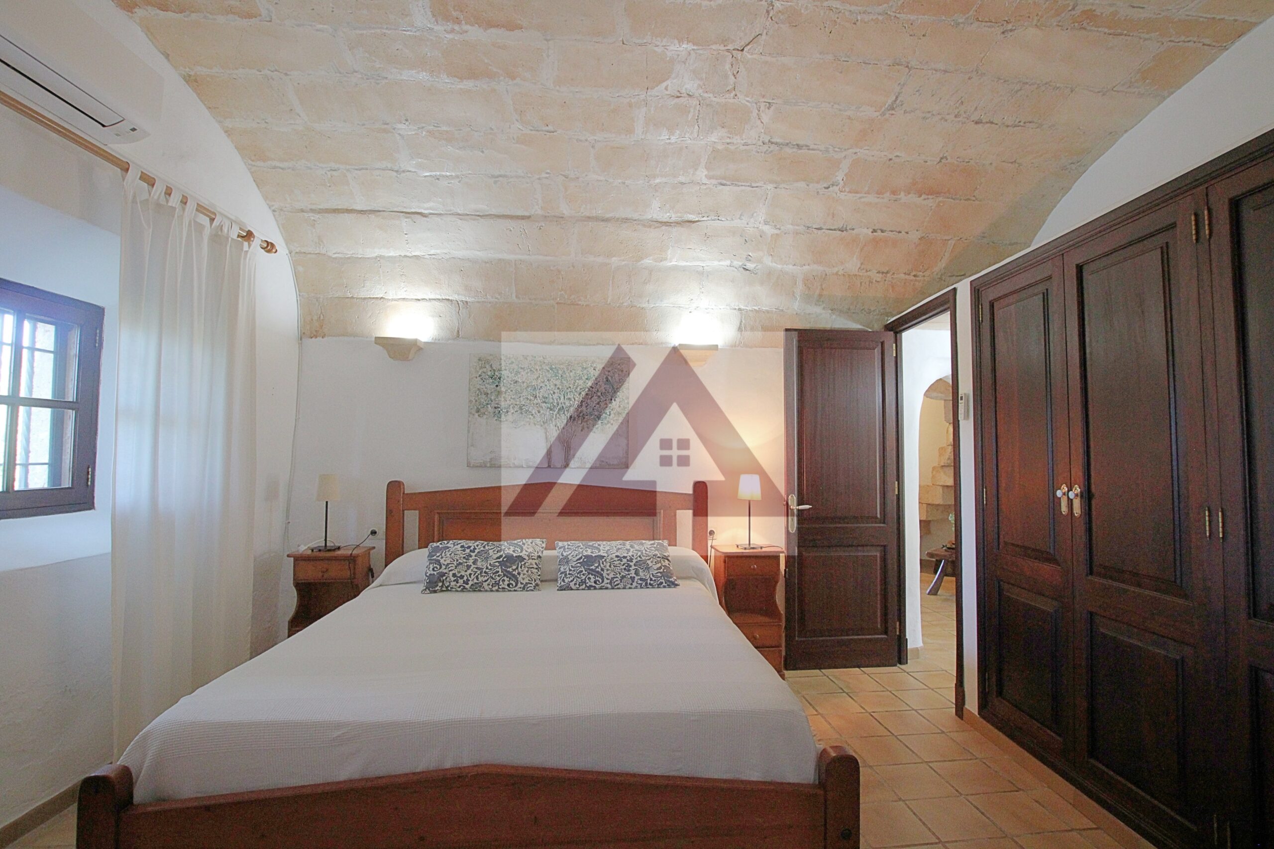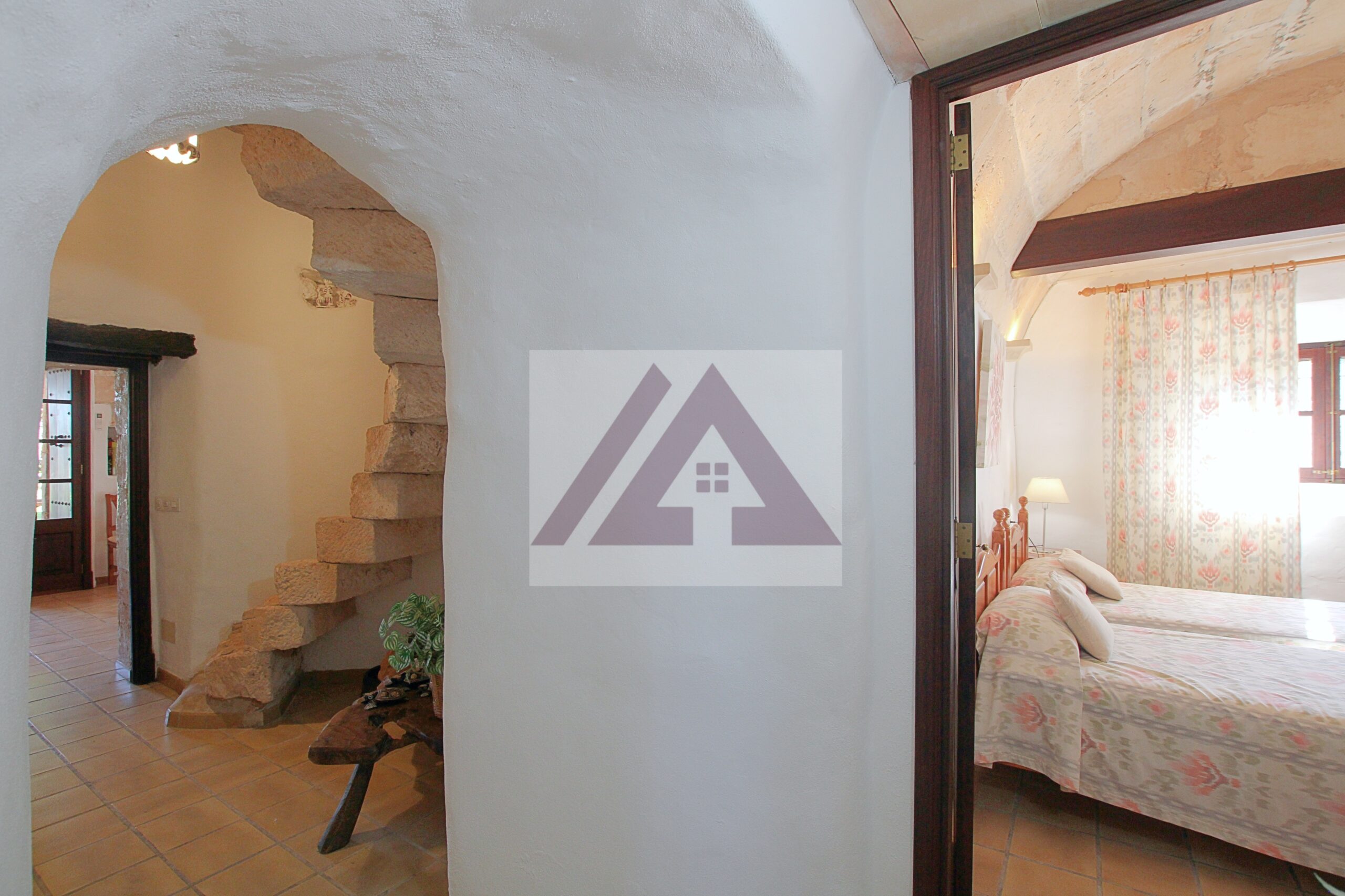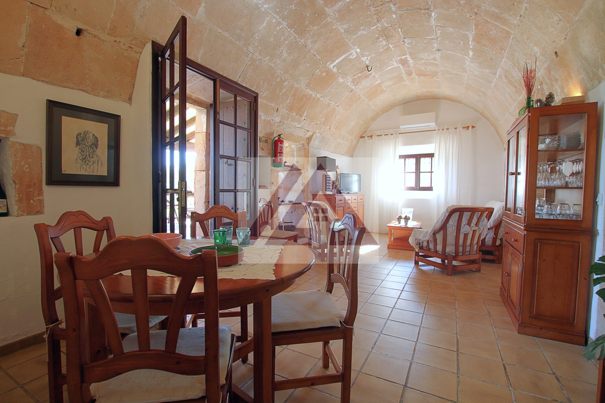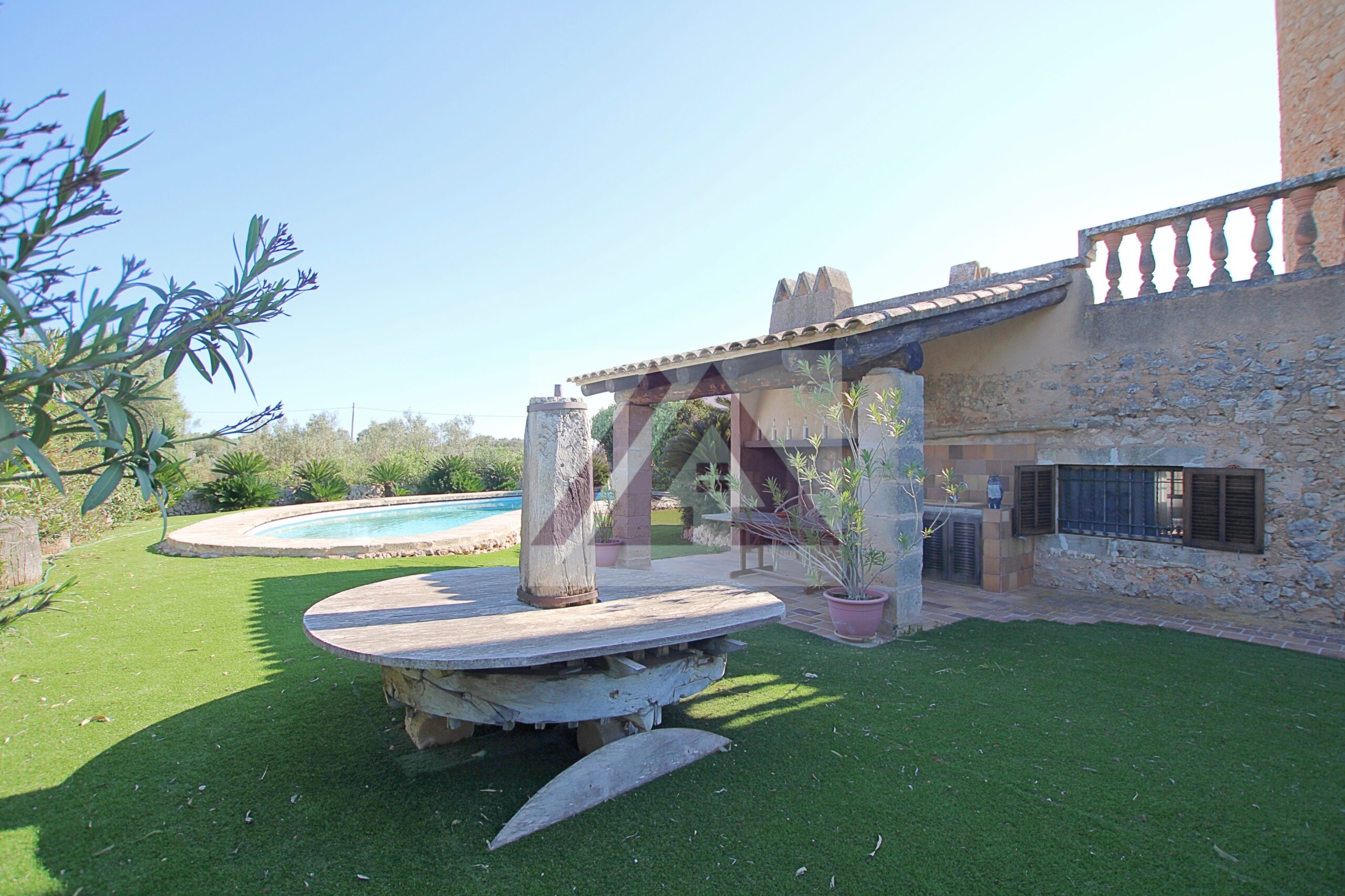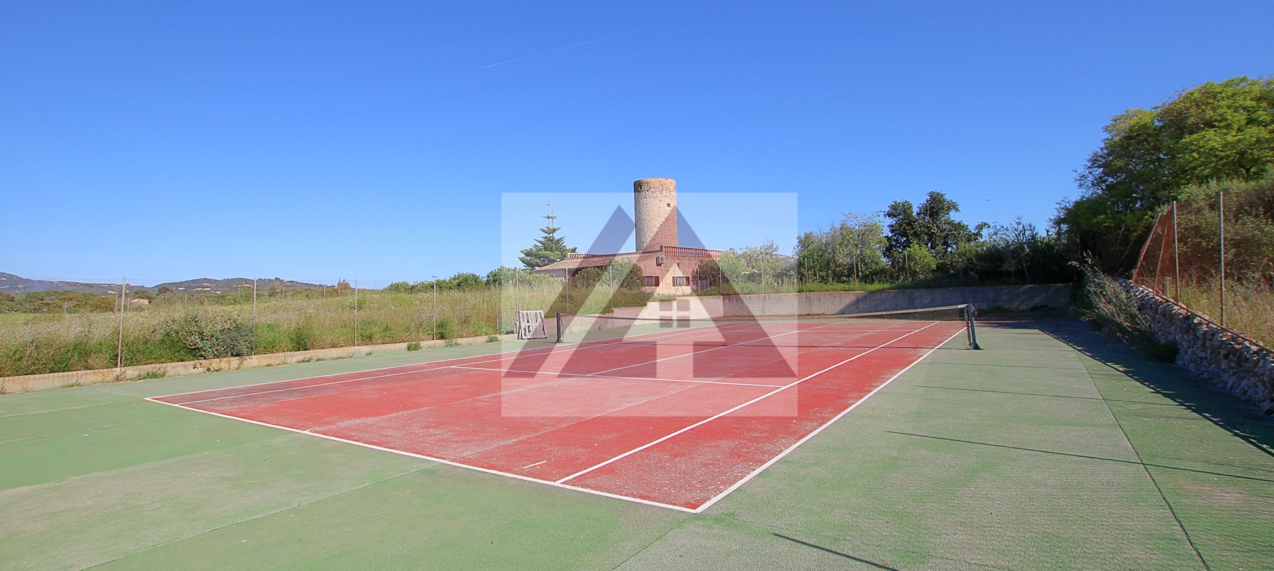 Just two kilometres from Cas Concos, on a plot of over 8,000 m², fully fenced and with an automatic gate, this fully renovated old mill is available to rent, complete with a swimming pool and a private tennis court.