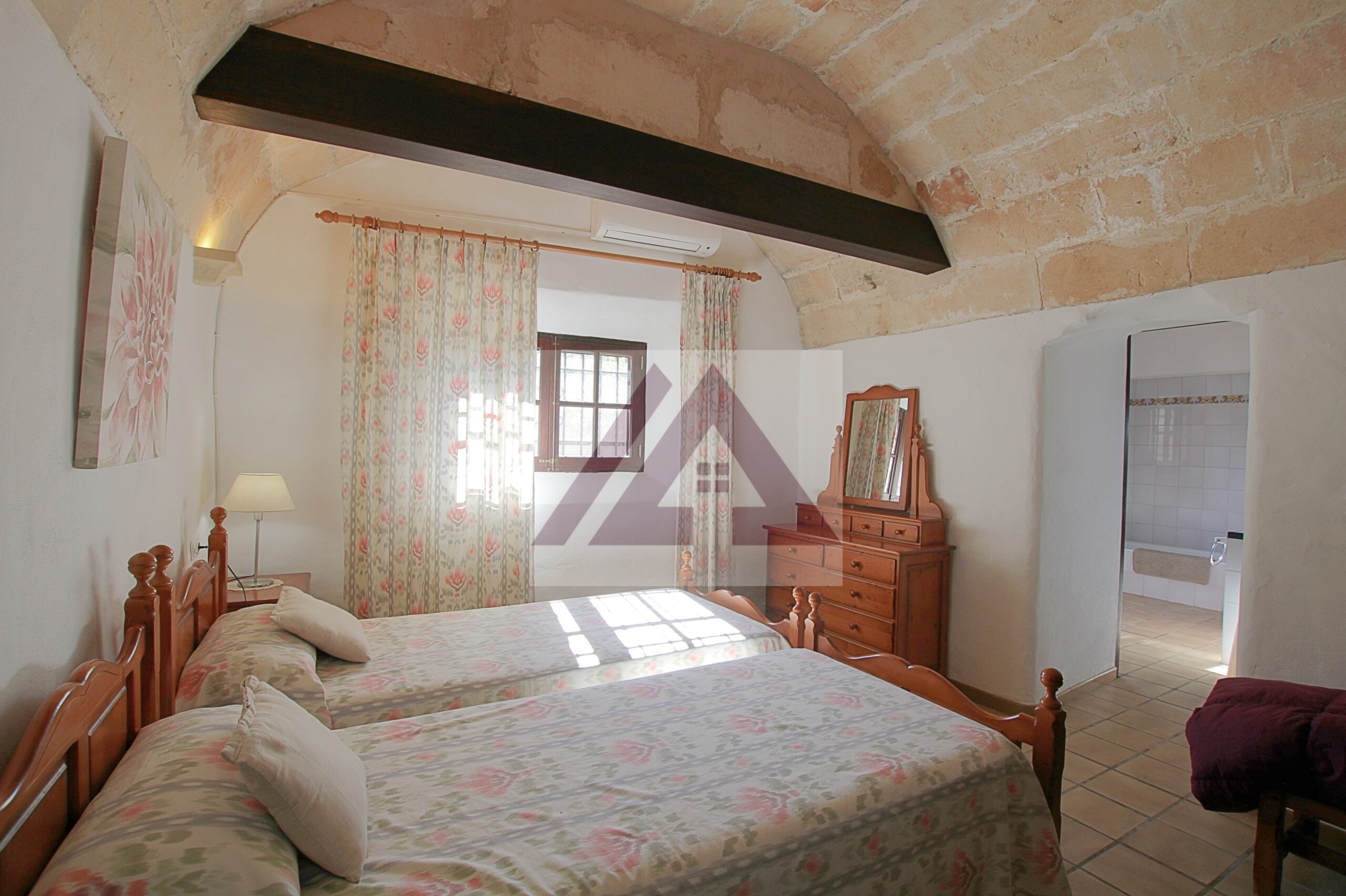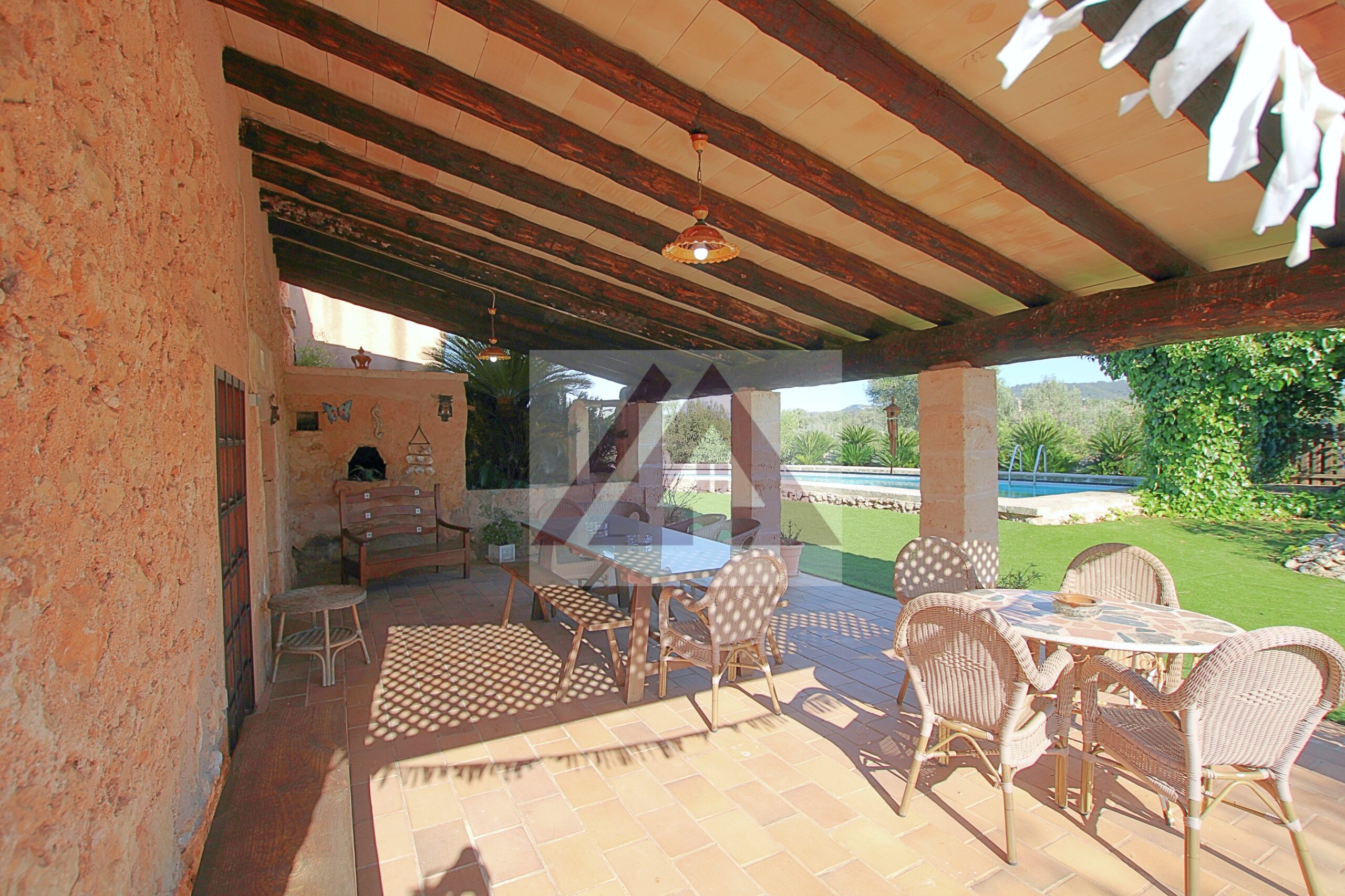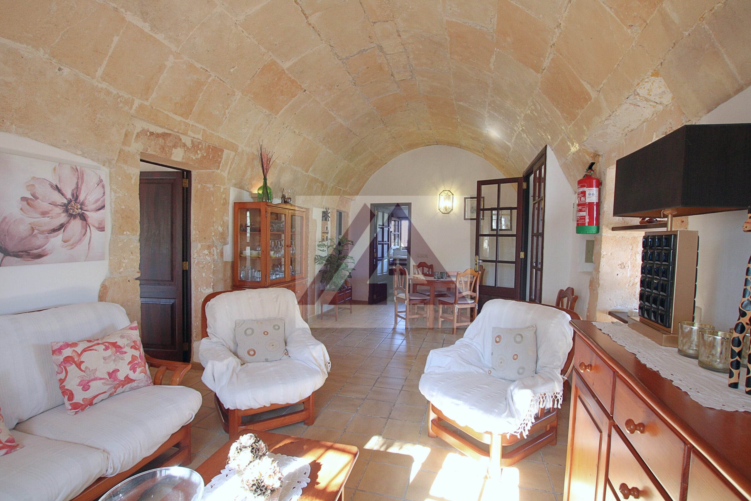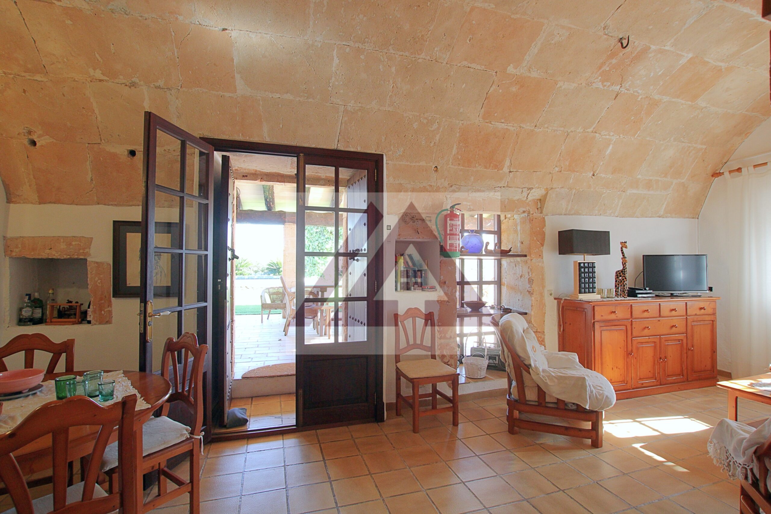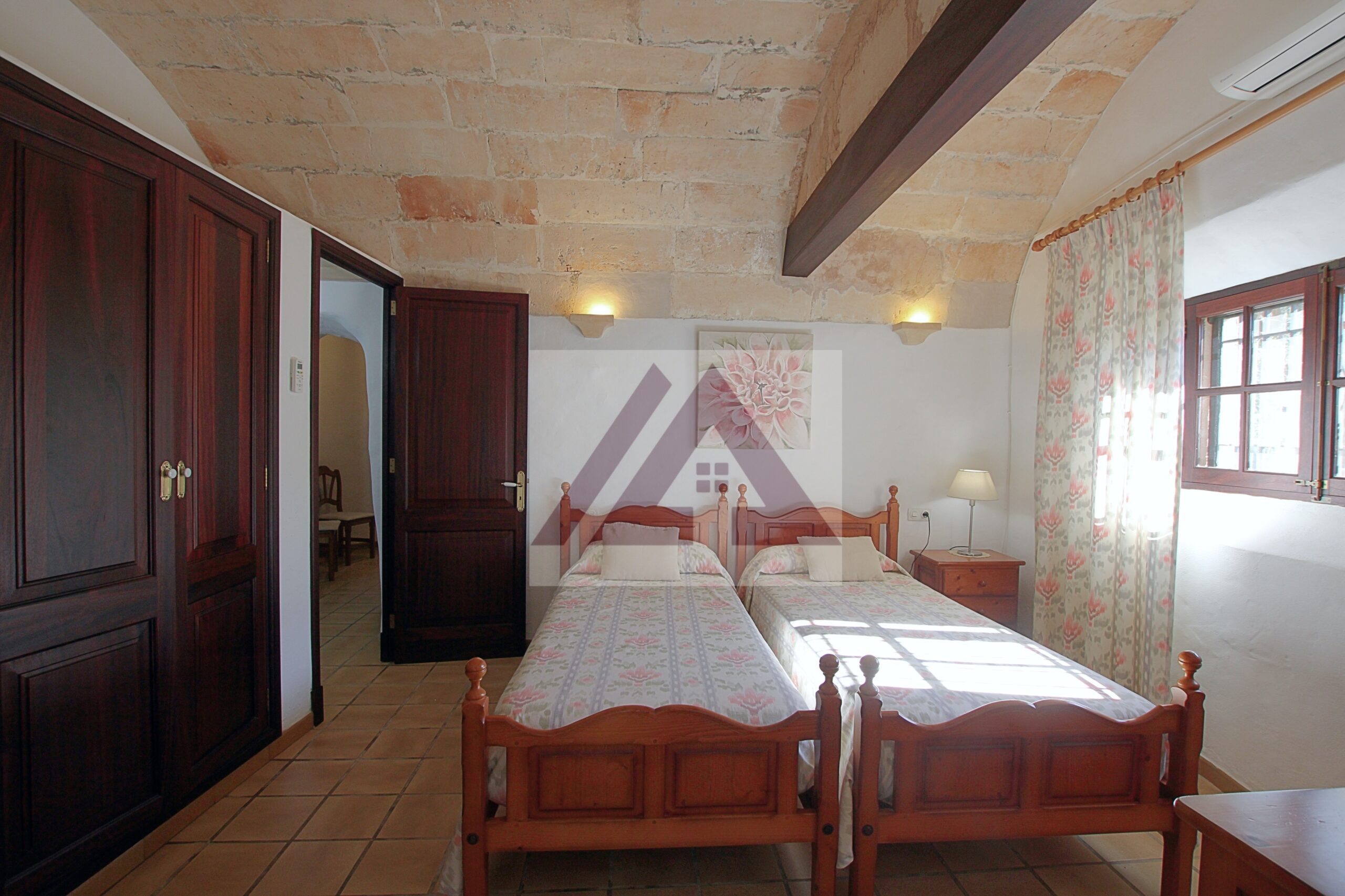 Just two kilometres from Cas Concos, on a plot of over 8,000 m², fully fenced and with an automatic gate, this fully renovated old mill is available to rent, complete with a swimming pool and a private tennis court.