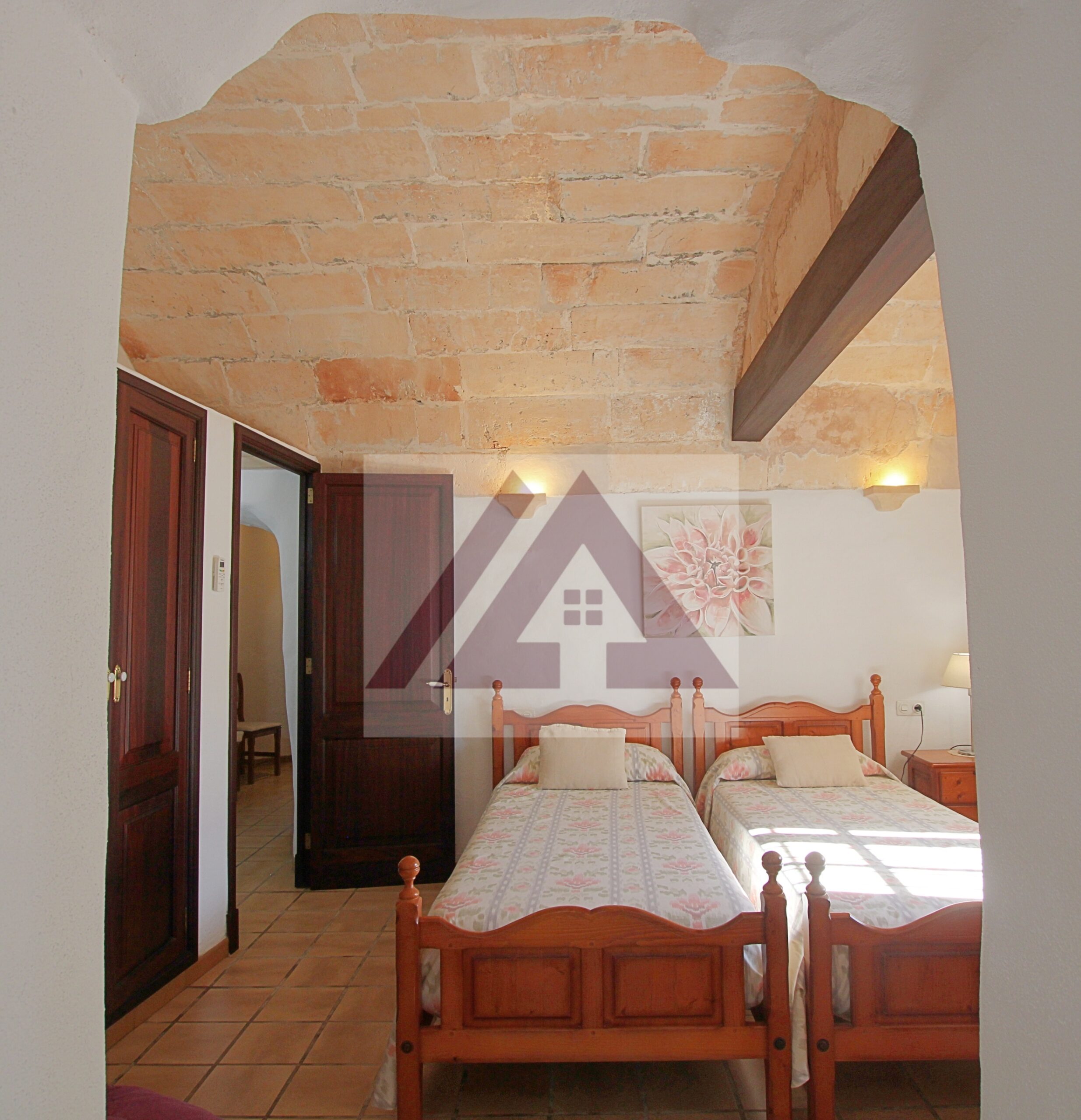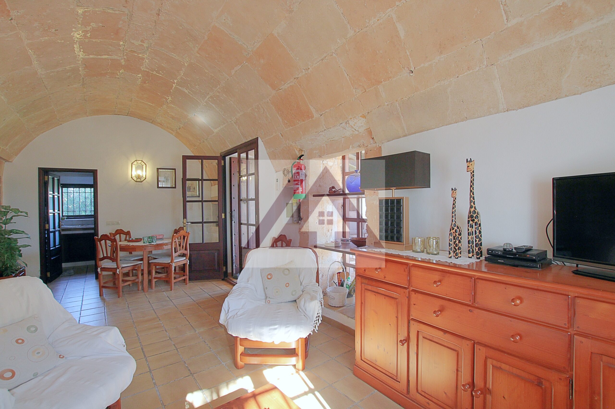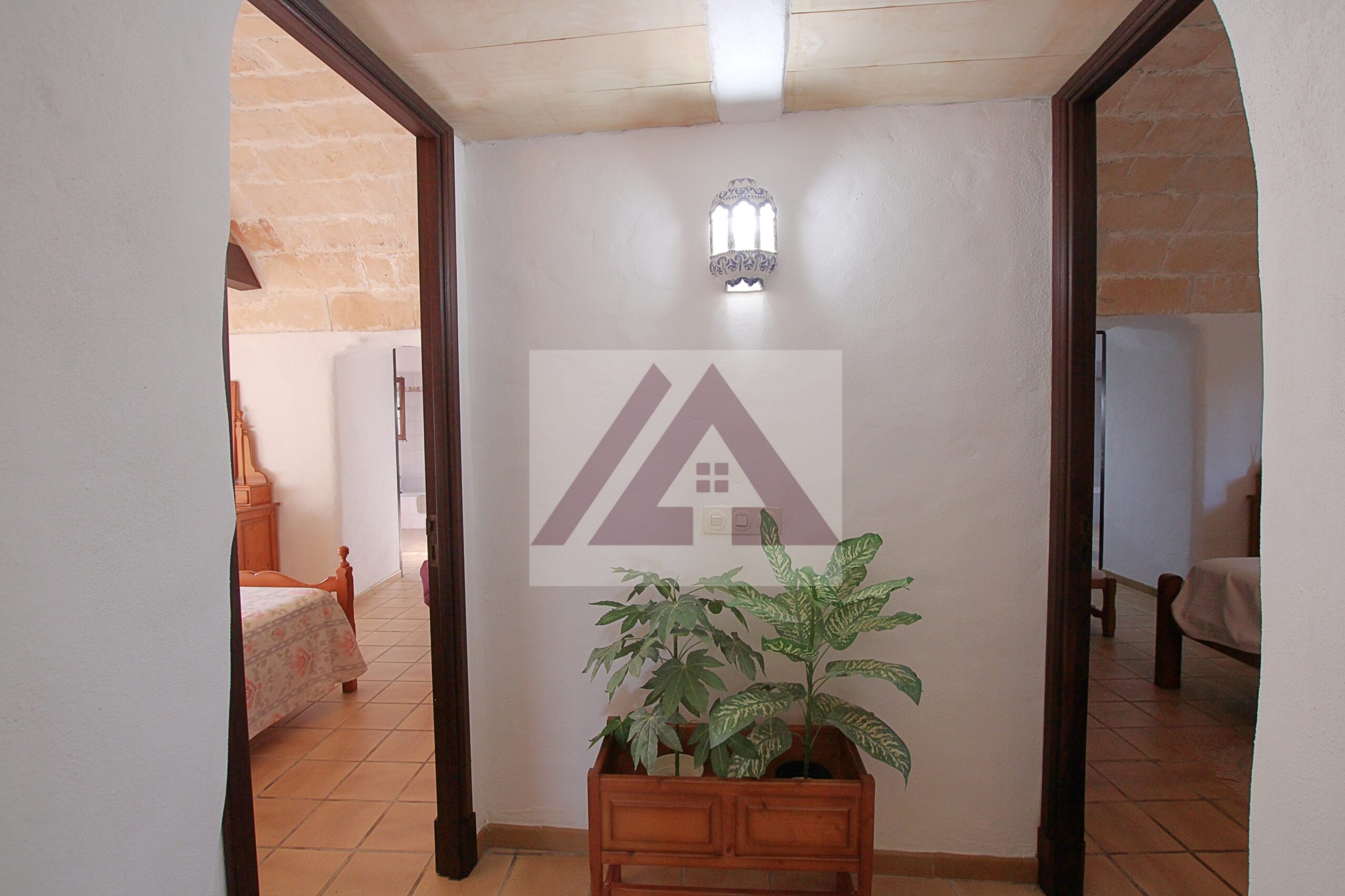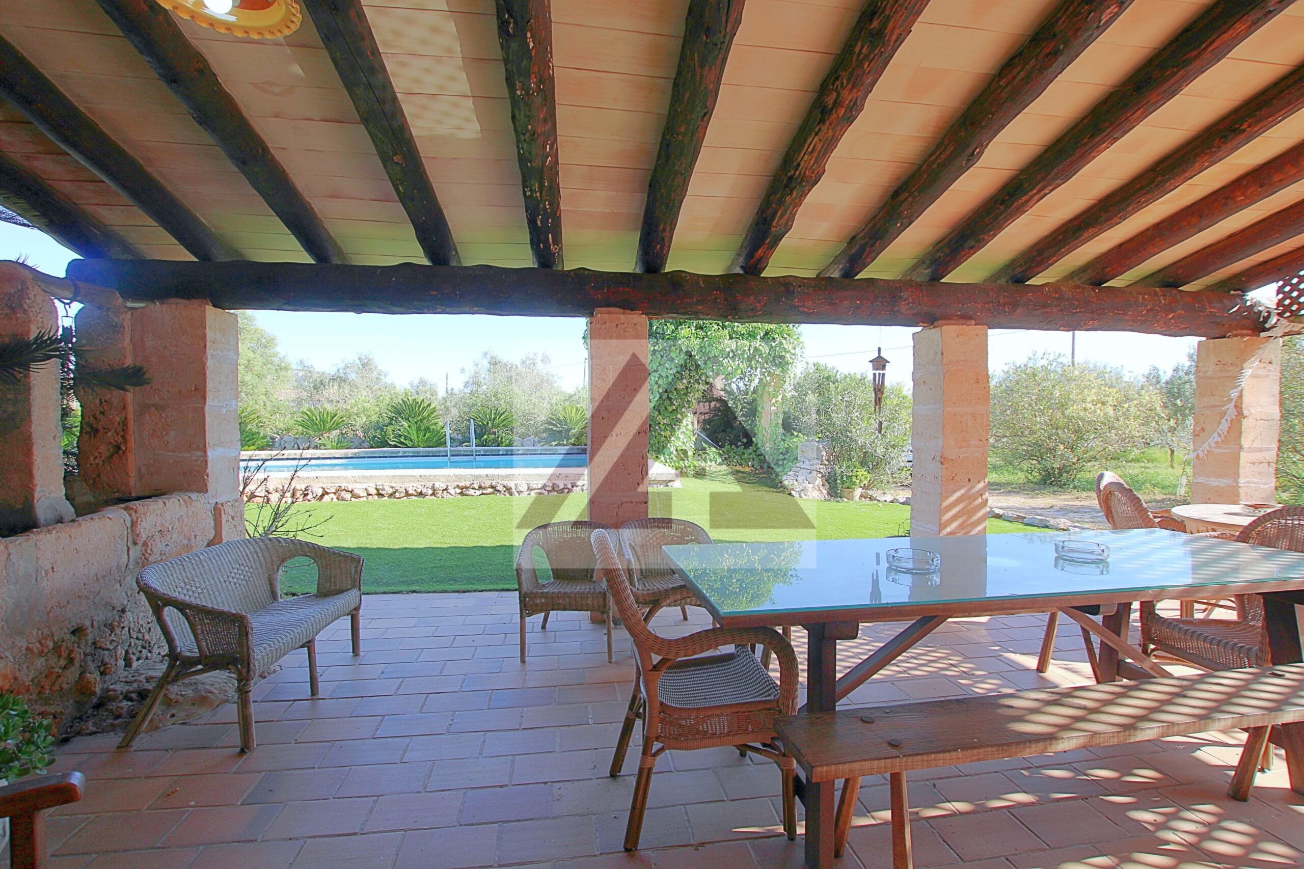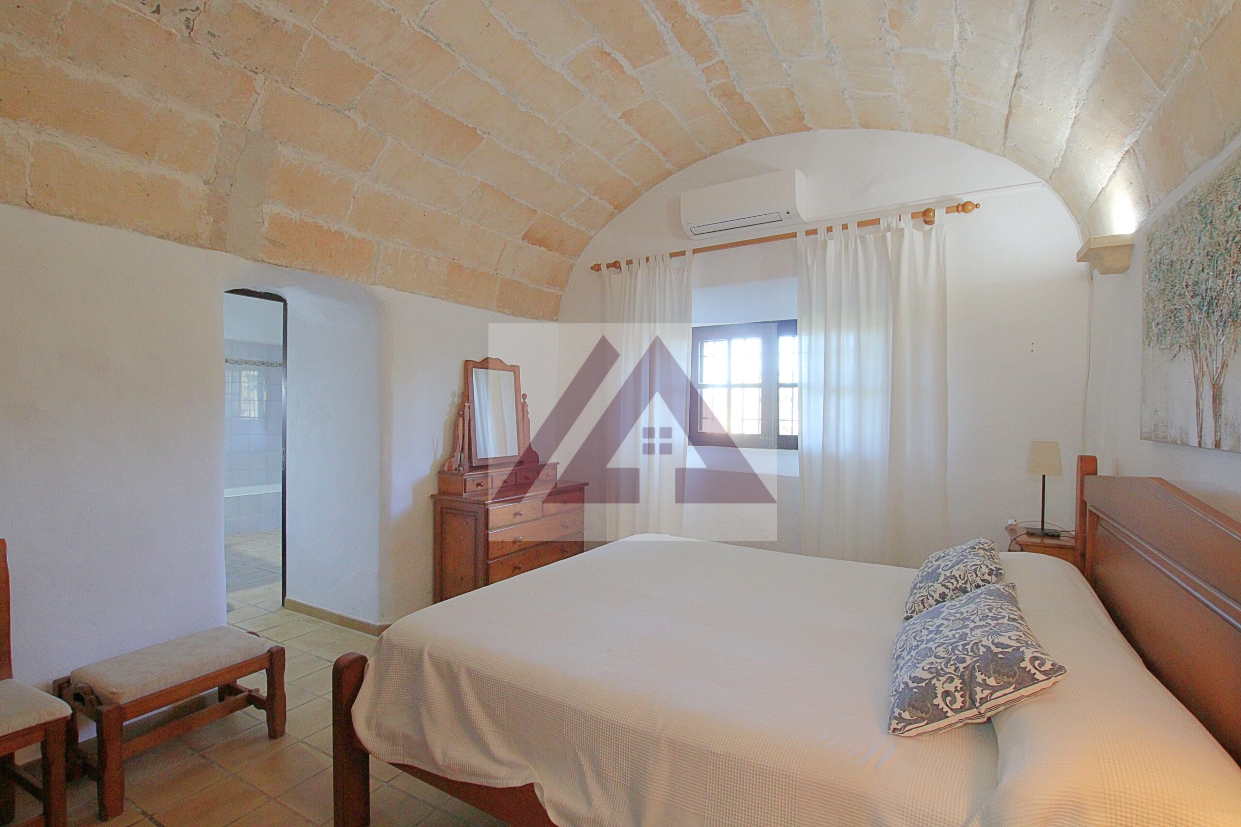 Just two kilometres from Cas Concos, on a plot of over 8,000 m², fully fenced and with an automatic gate, this fully renovated old mill is available to rent, complete with a swimming pool and a private tennis court.