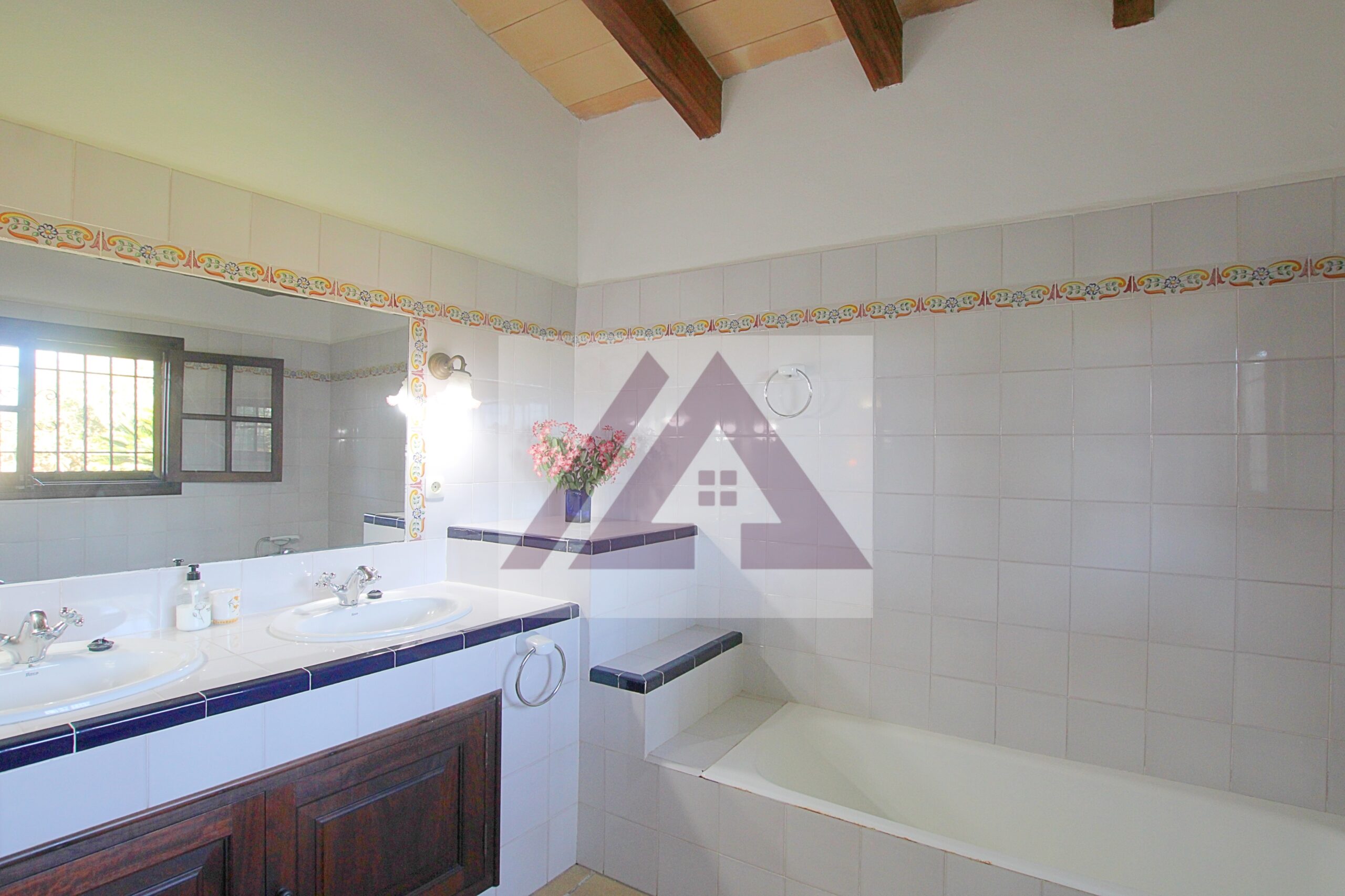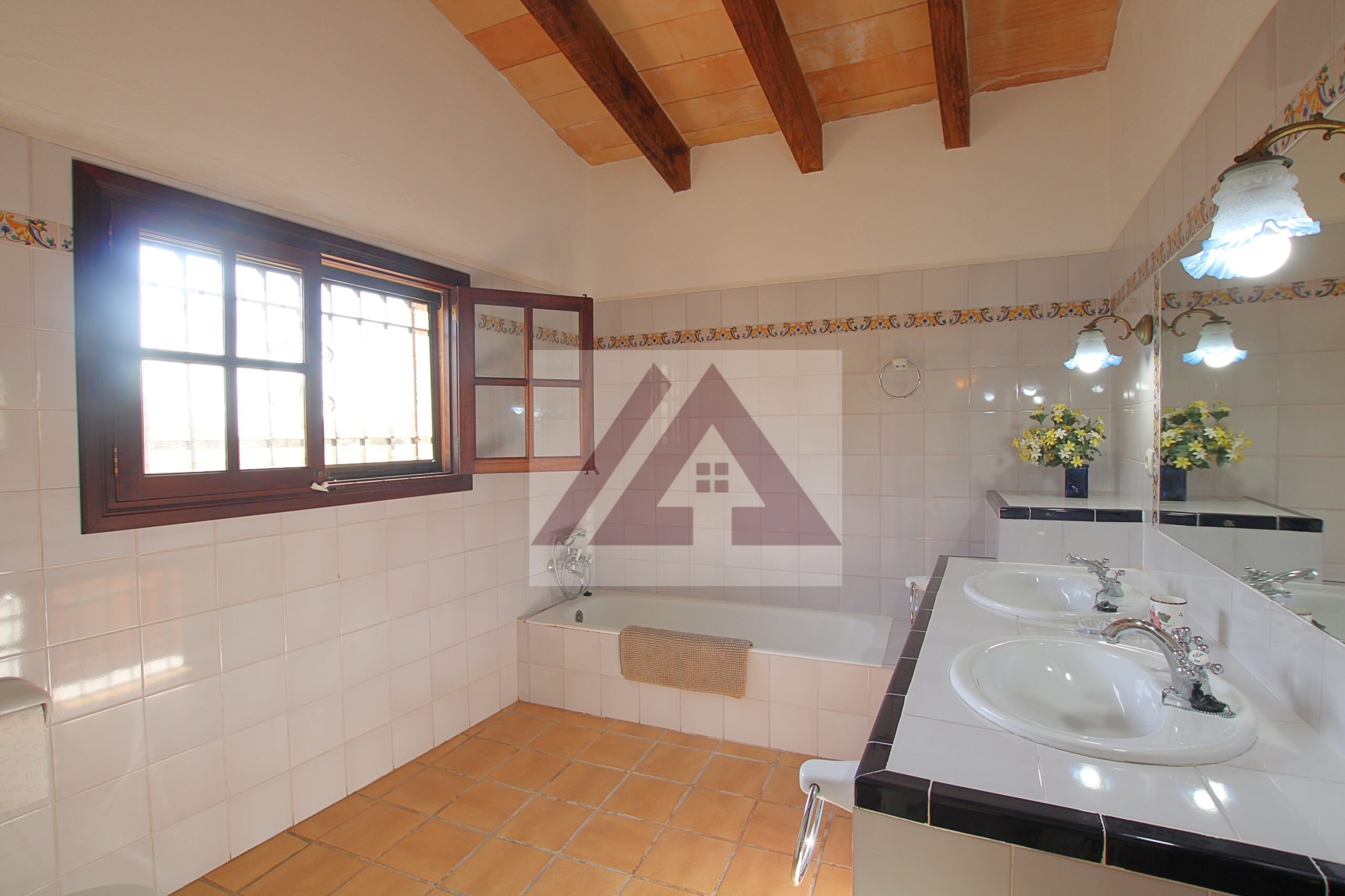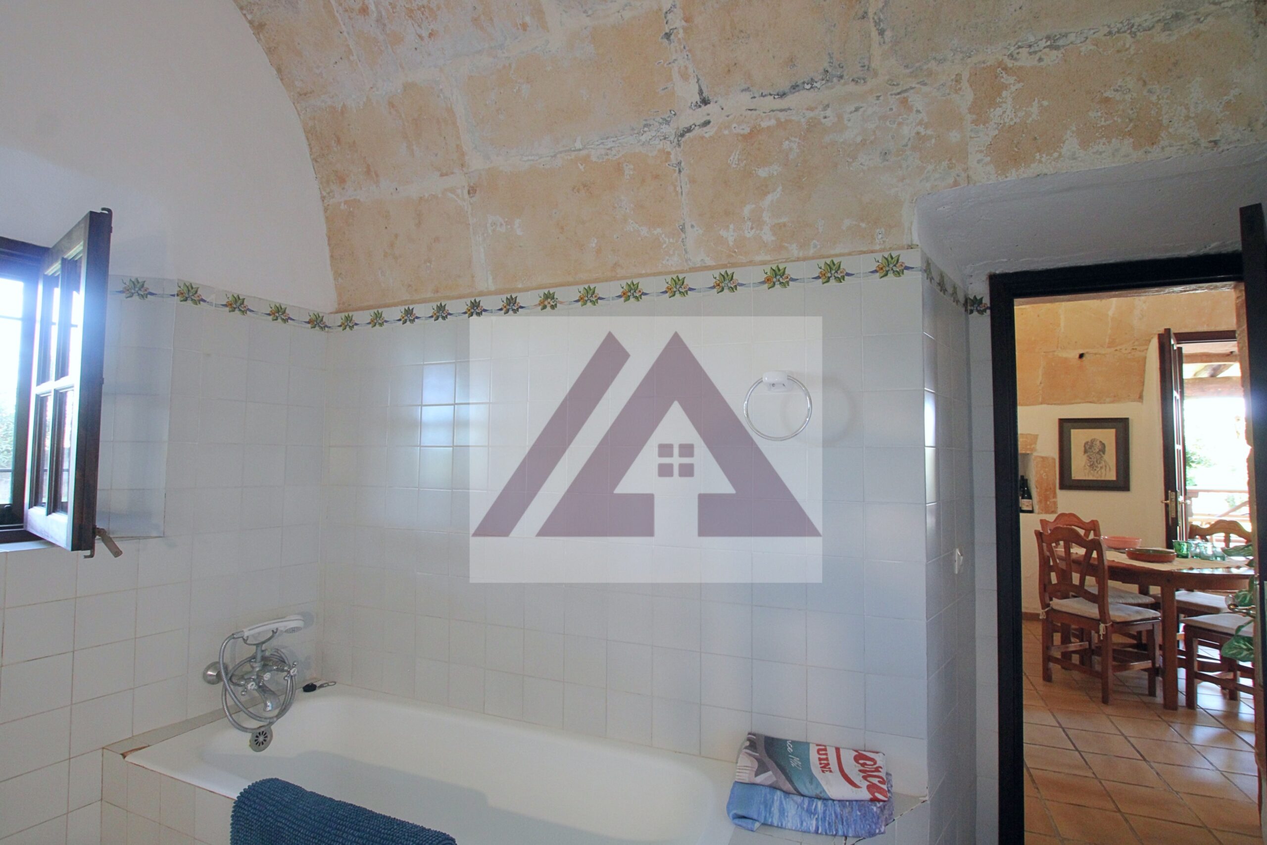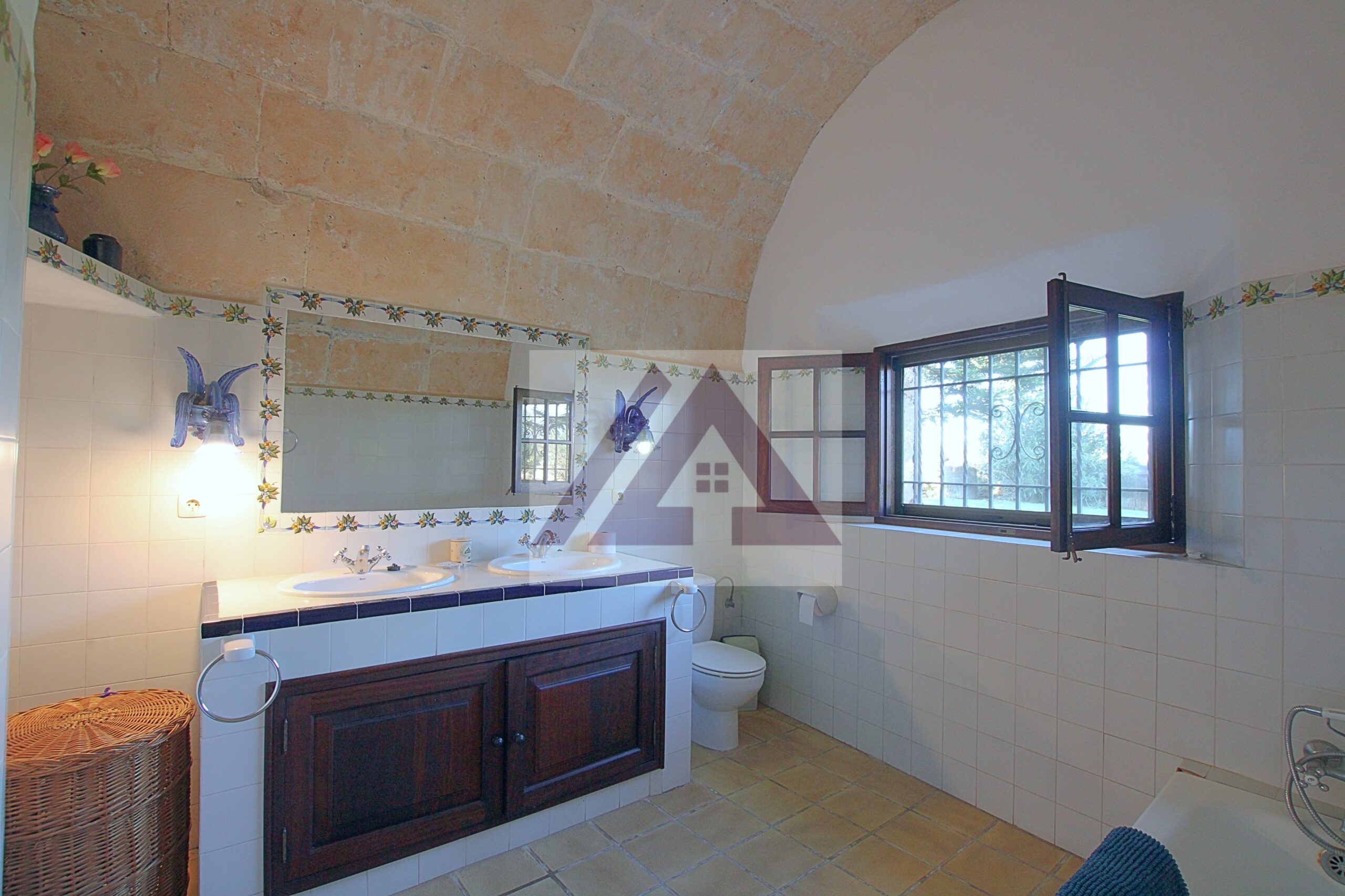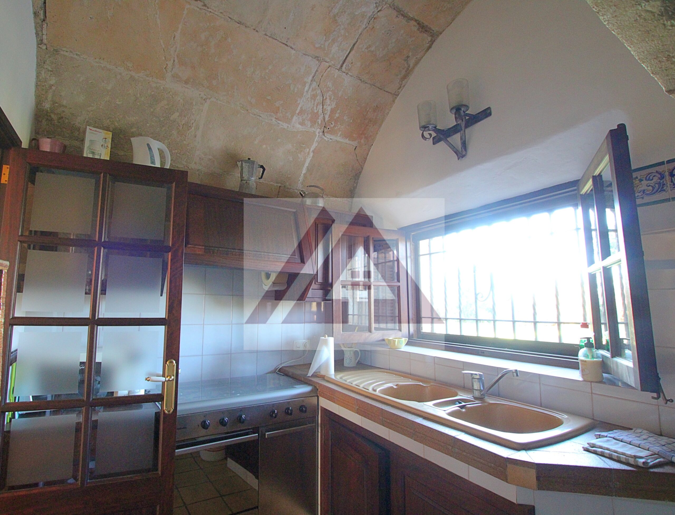 Just two kilometres from Cas Concos, on a plot of over 8,000 m², fully fenced and with an automatic gate, this fully renovated old mill is available to rent, complete with a swimming pool and a private tennis court.