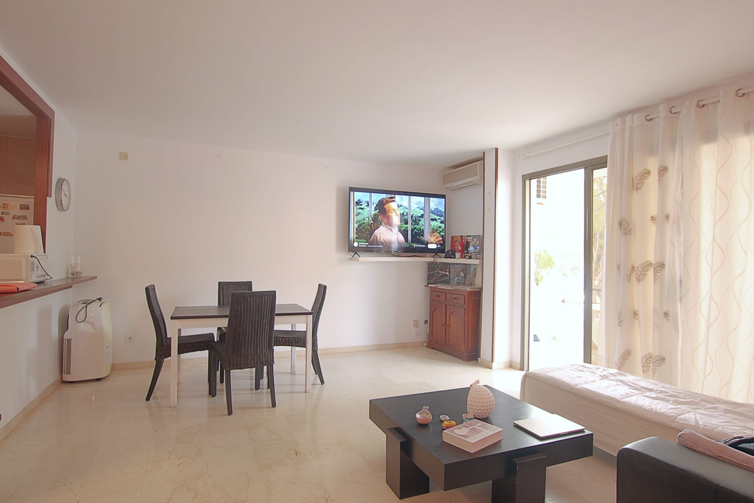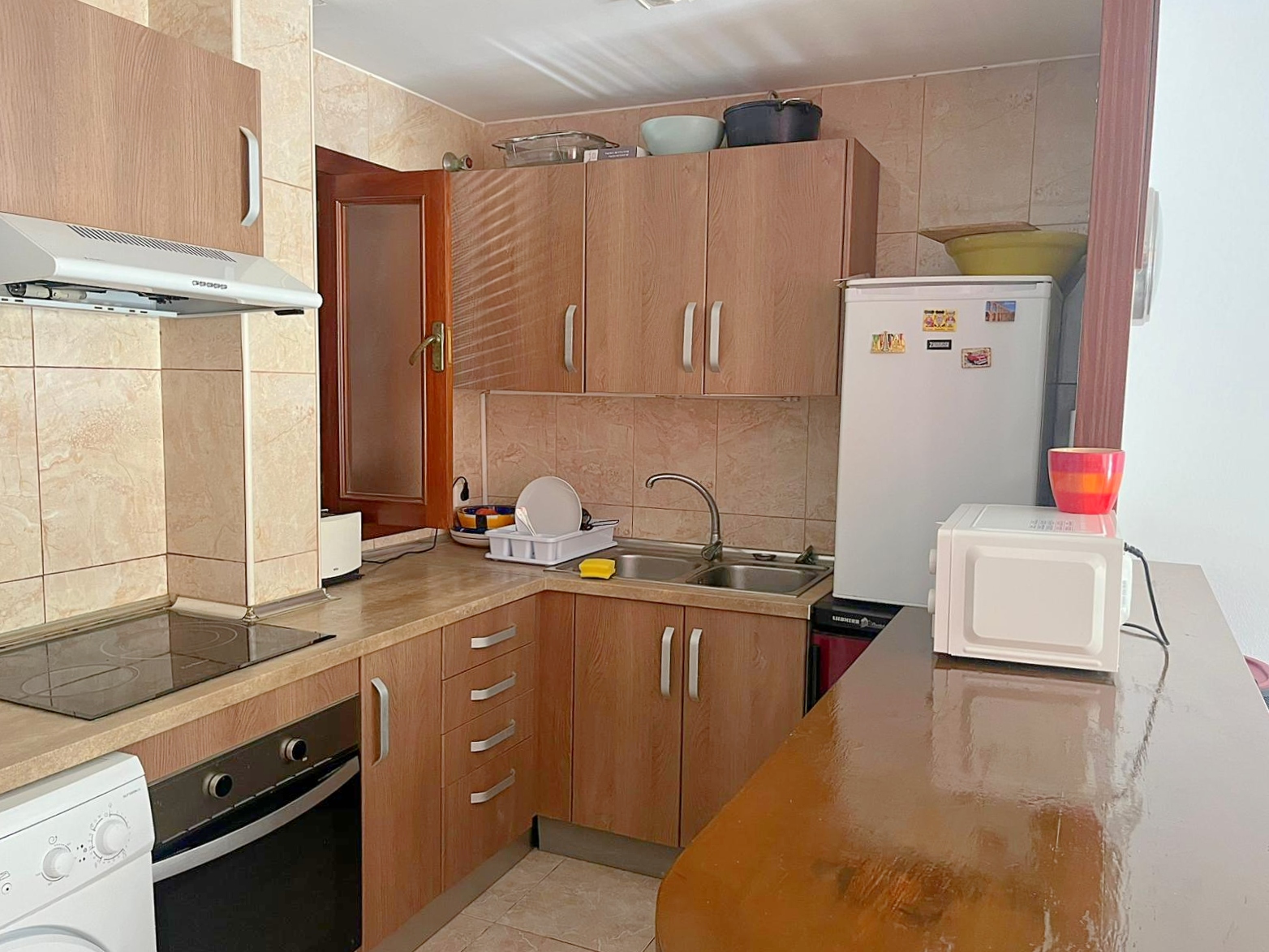It has about 110 m2 constructed surface, 80 m2 of living space distributed in two bedrooms, both of them exterior and with built-in wardrobe, a bathroom with shower and a kitchen with open plan bar integrated in the bright living room.