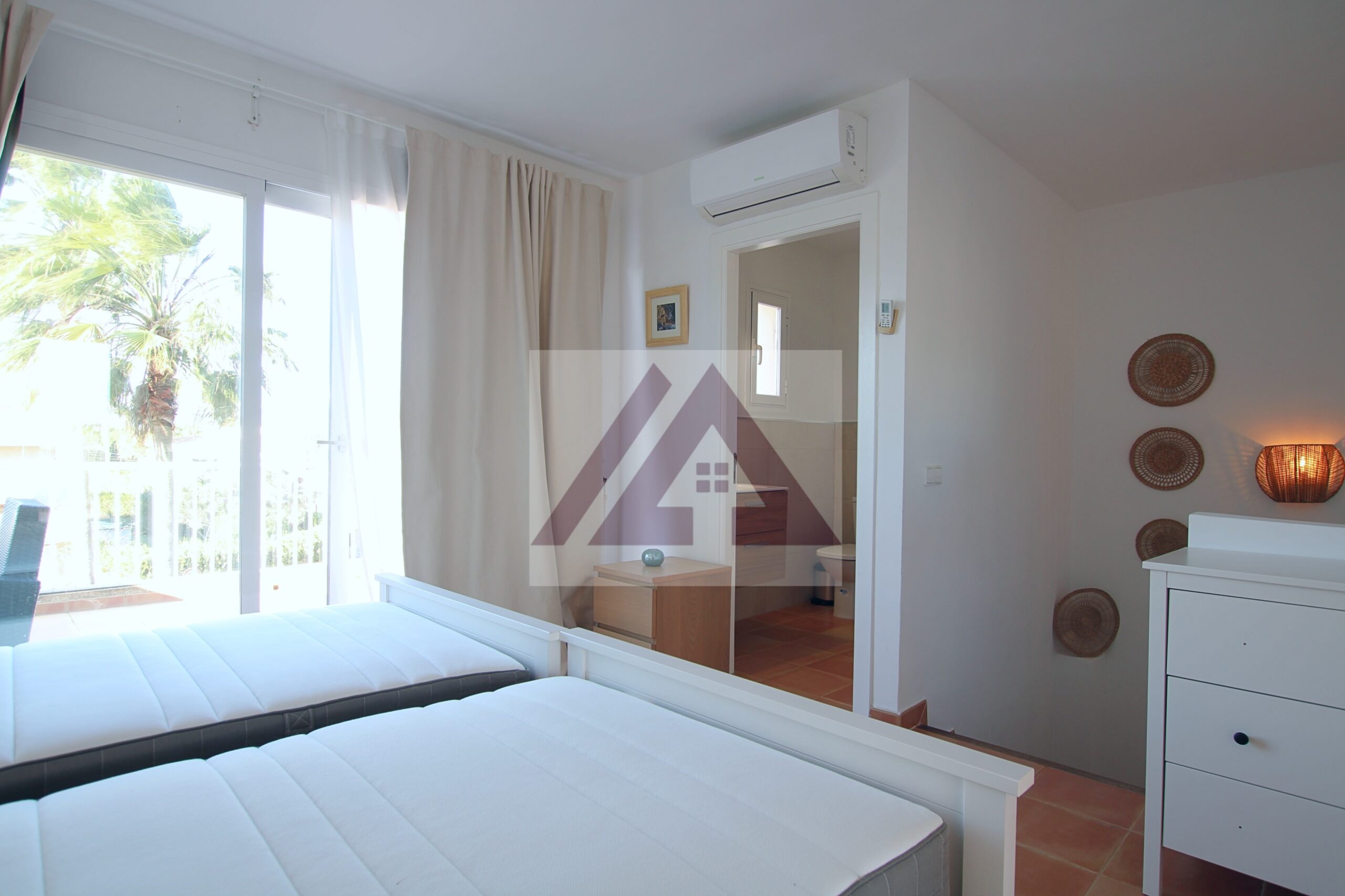 En la planta de arriba se encuentra una habitación doble con baño completo en suite y salida a dos terrazas, una cada lado por un total de 50 m2.