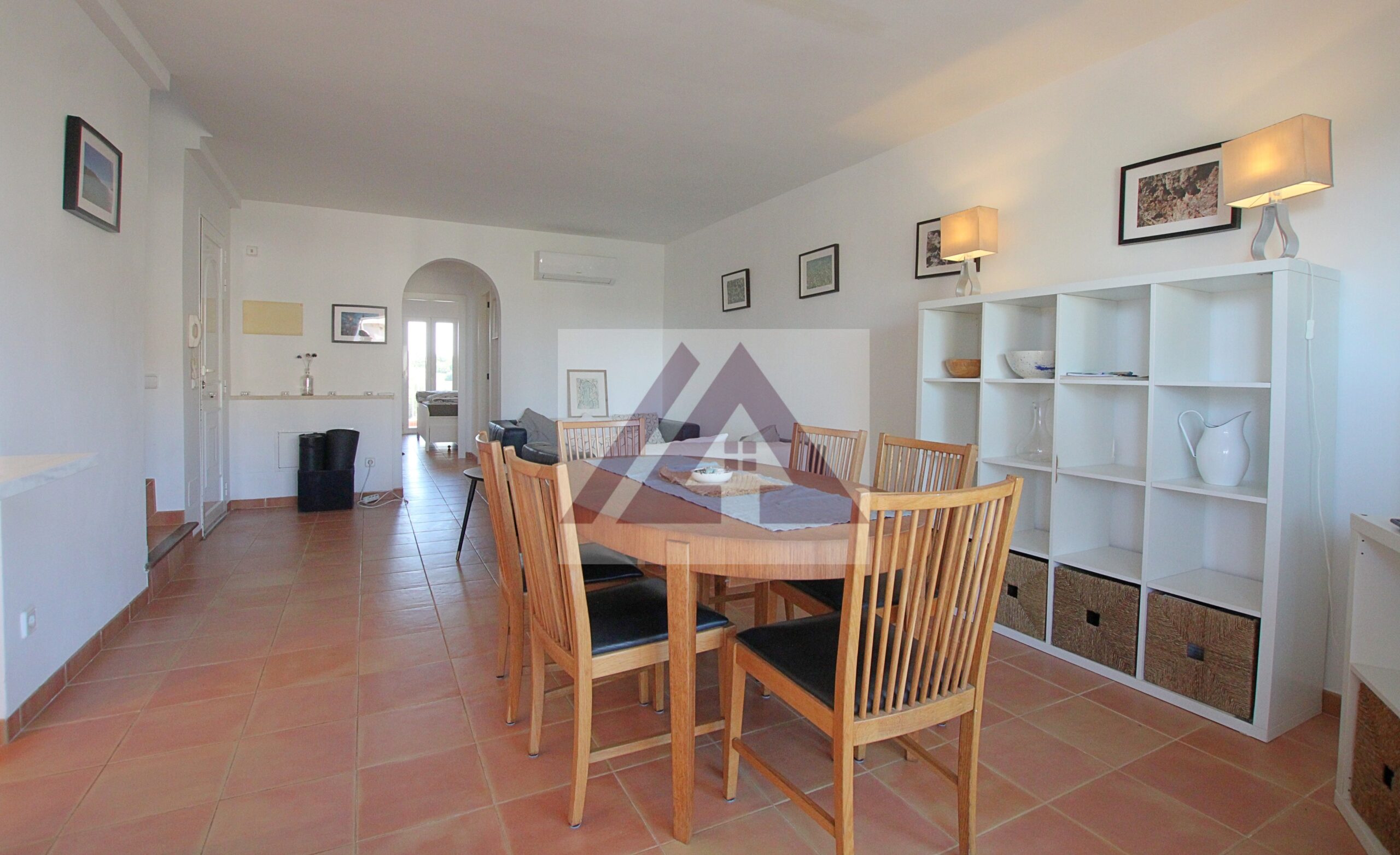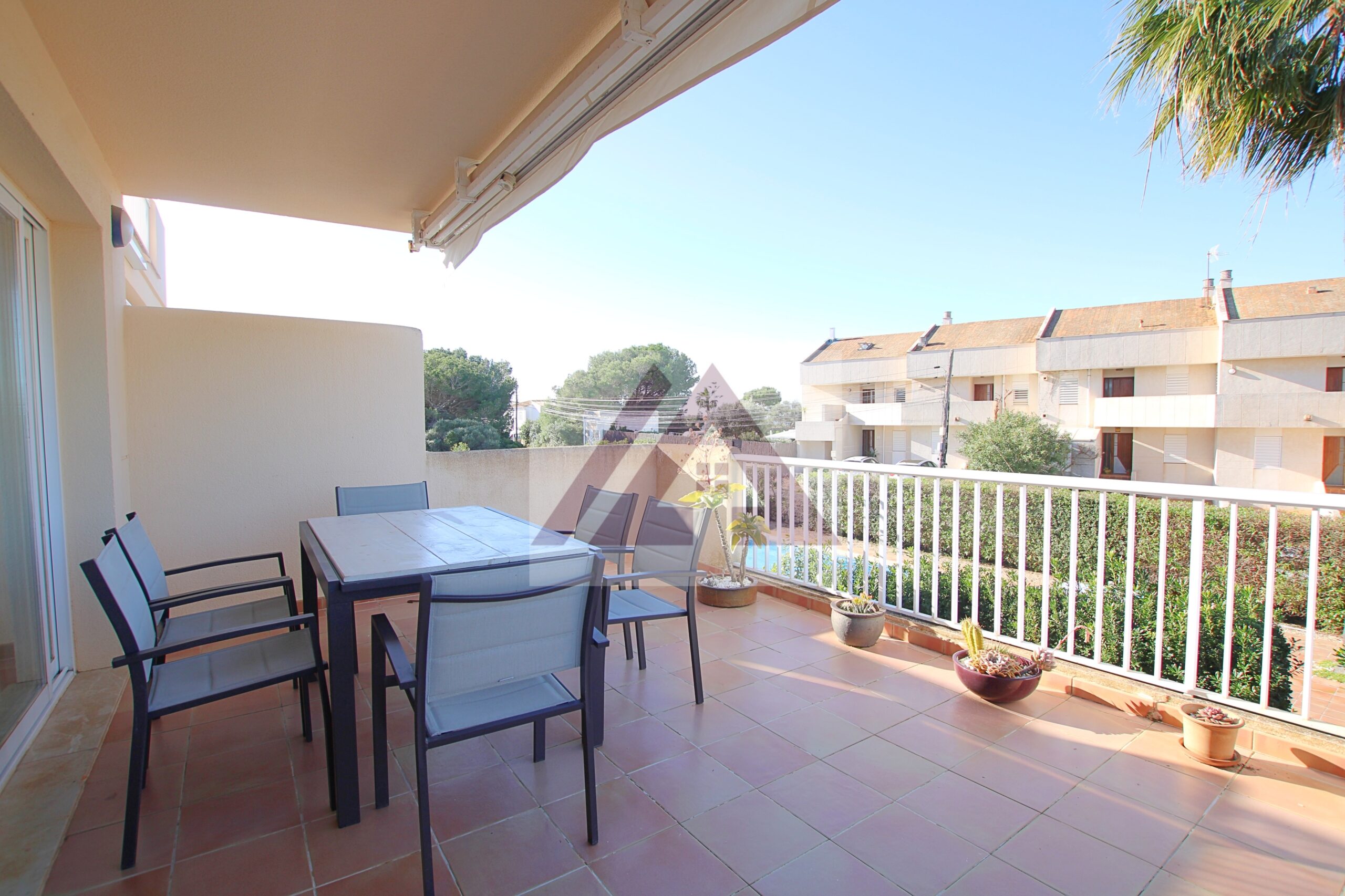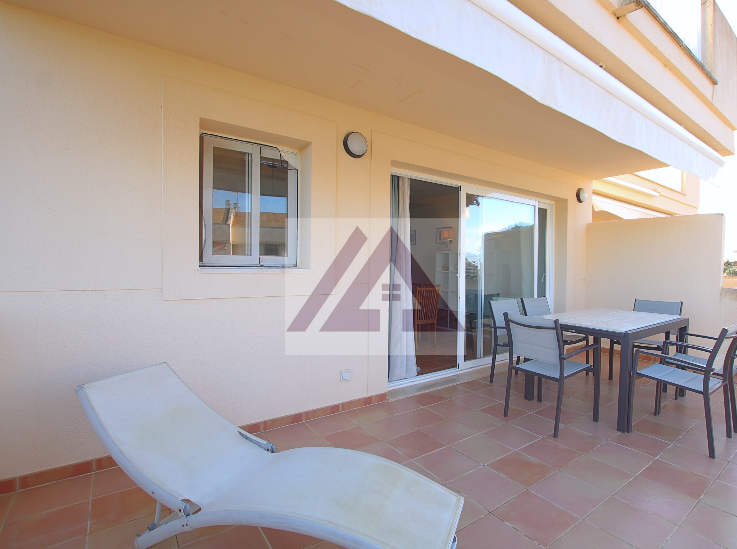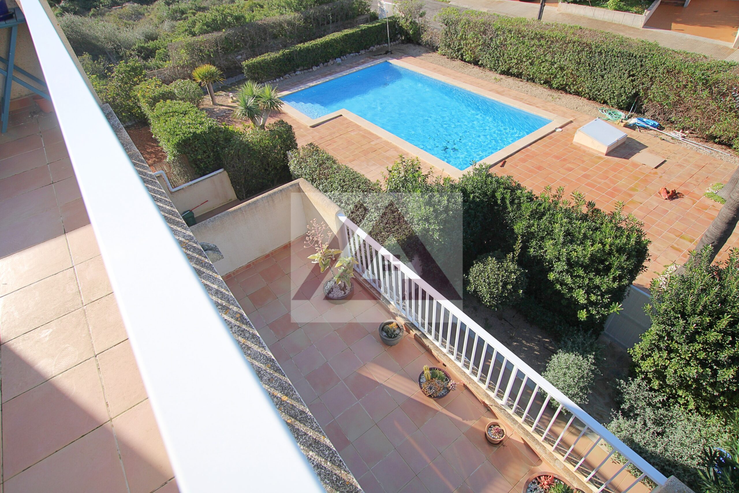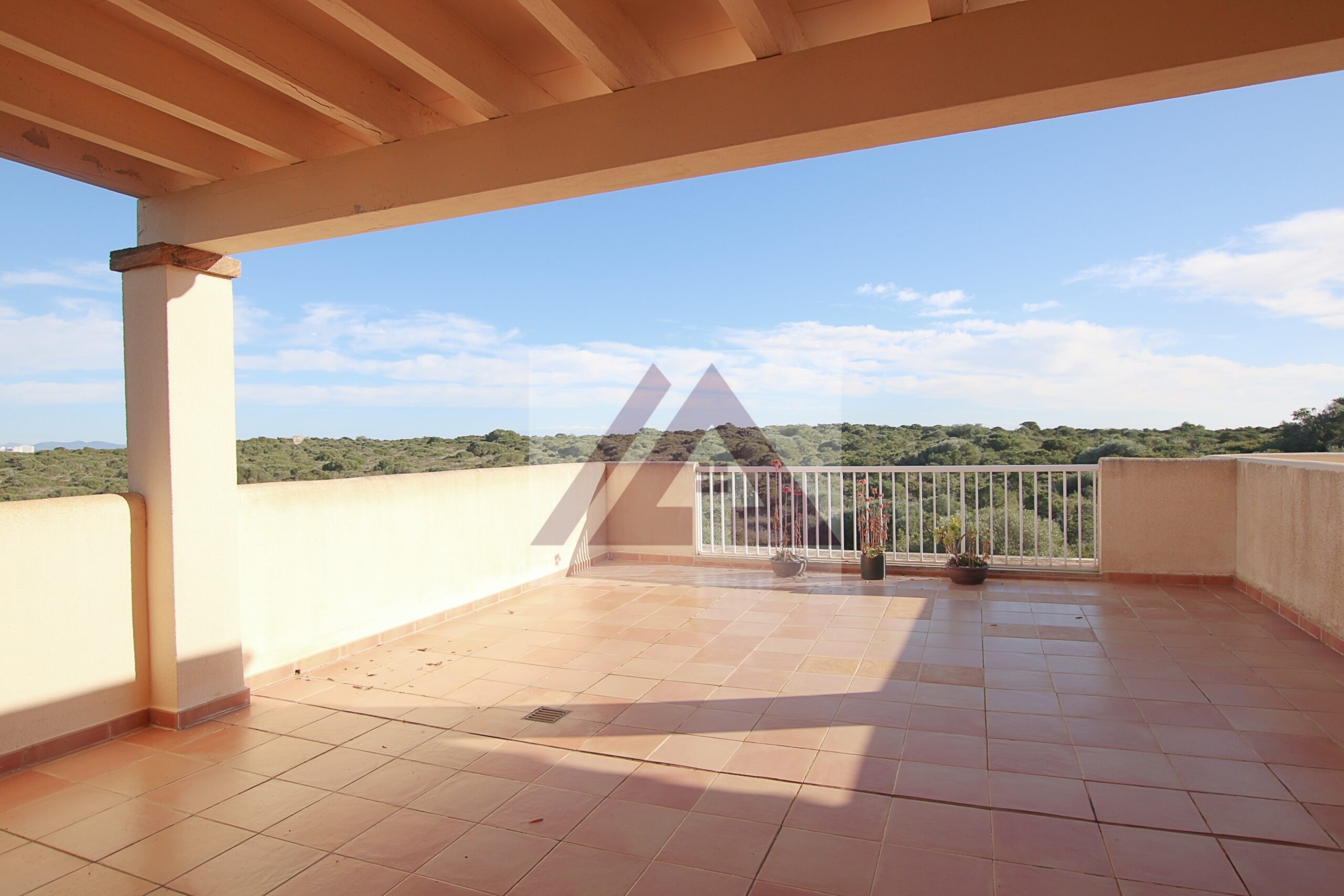 Desde el salón se accede a una terraza semi techada de unos 40 m2 con vistas a la piscina, ideal para comidas en familia.