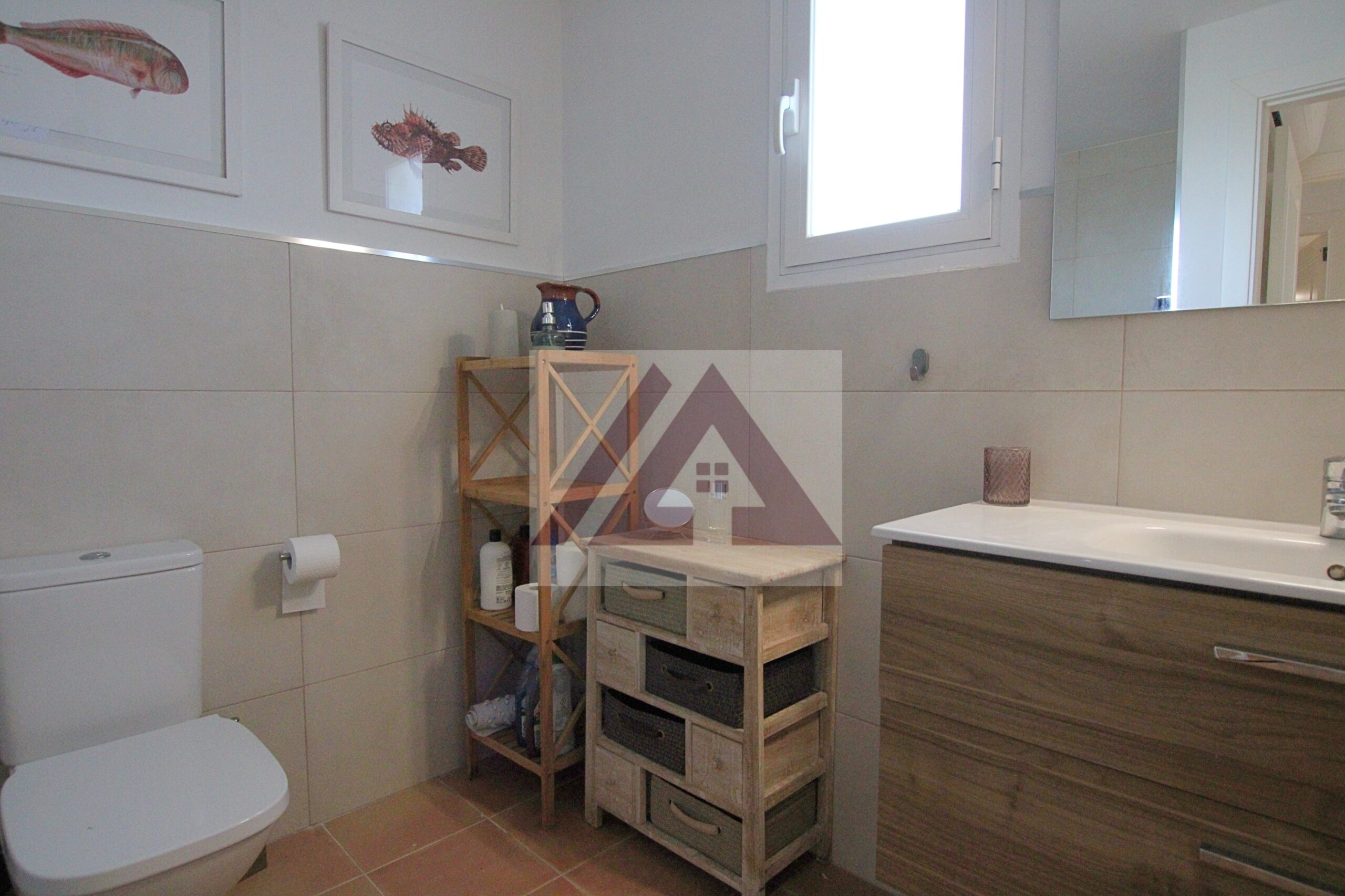 En la misma planta se encuentra 2 baños completos 1 de ellos en suite y dos habitaciones dobles, con armarios empotrados y salida a la terraza trasera de unos 22 m2 con coladuria, con lavadora.