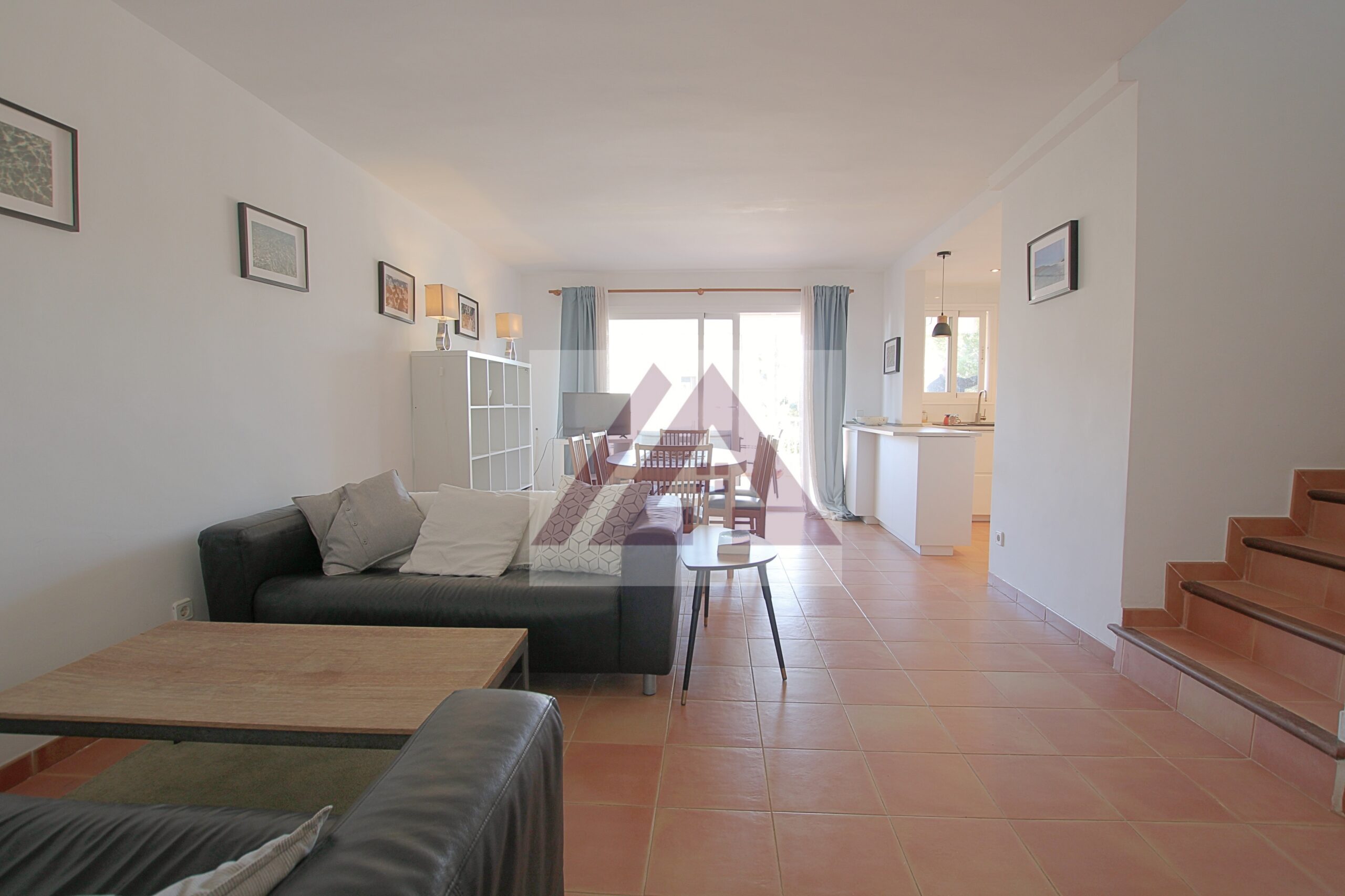En Portocolom, a pocos minutos andando de las playas del Arenal de Portocolom y del faro, se alquila durante 12 meses este estupendo atico duplex con plaza de parking privada y piscina comunitaria.