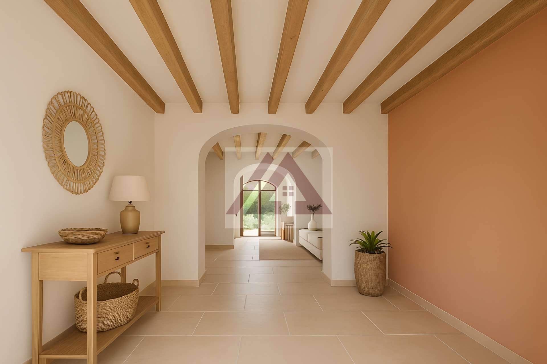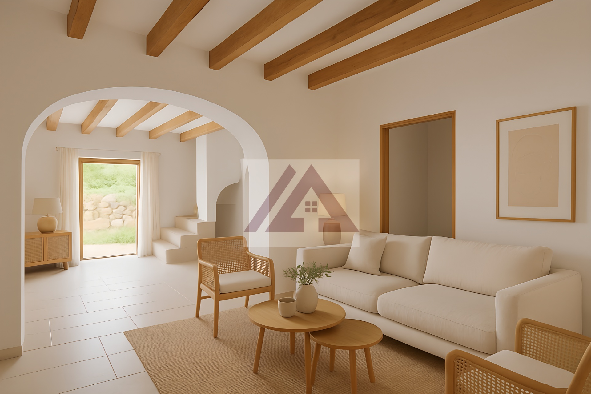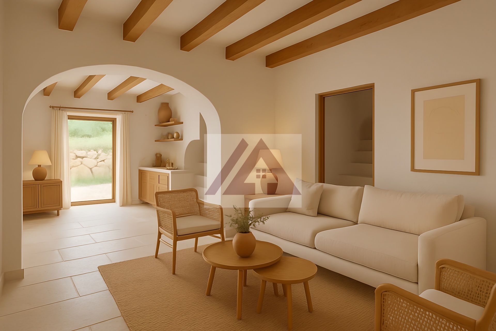 La parte dedicada a vivienda tiene unas preciosa vigas vista en perfecto estado y la parte que era dedicada al almacenaje de la comida de los animales dispone de un ambiente abovedado.