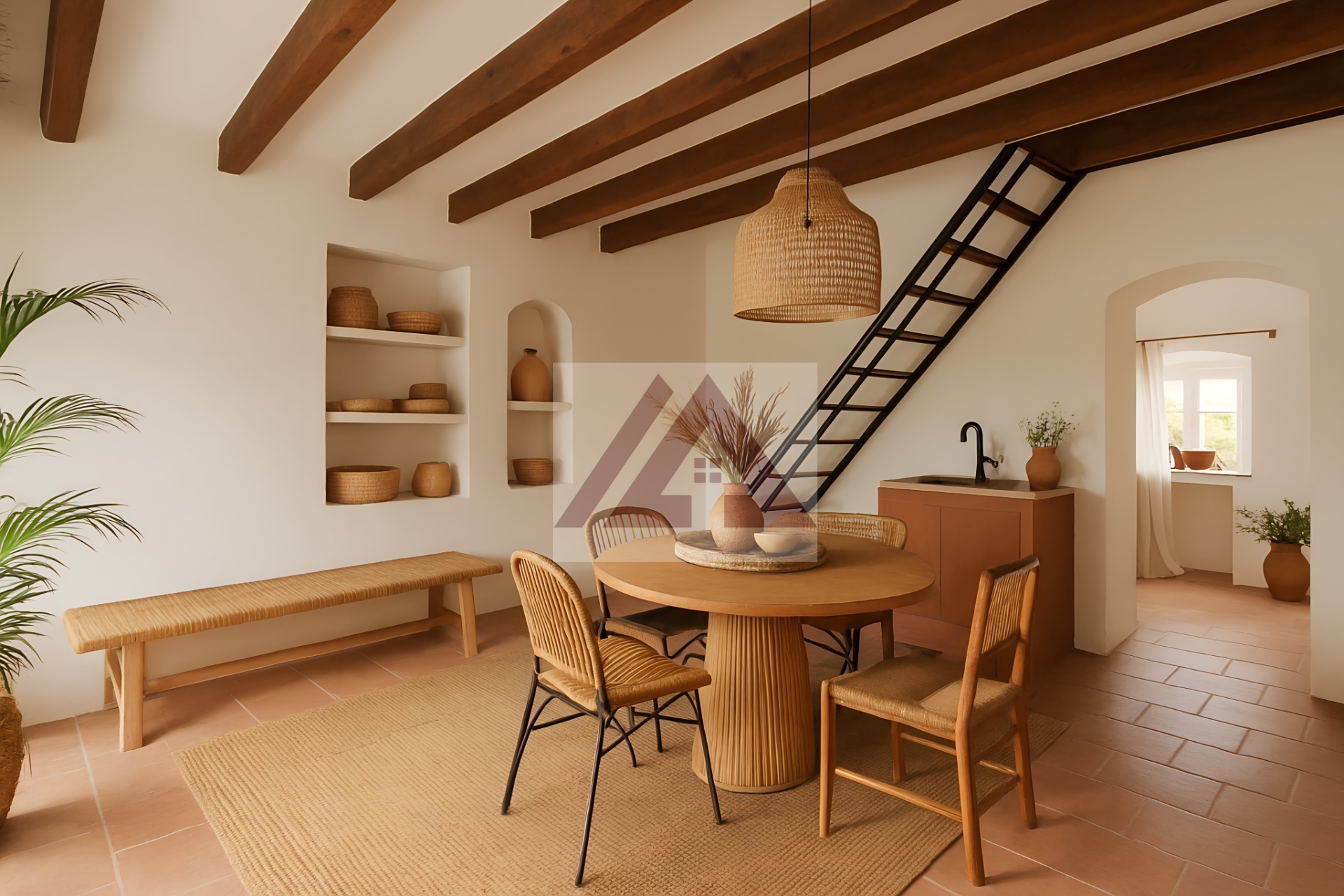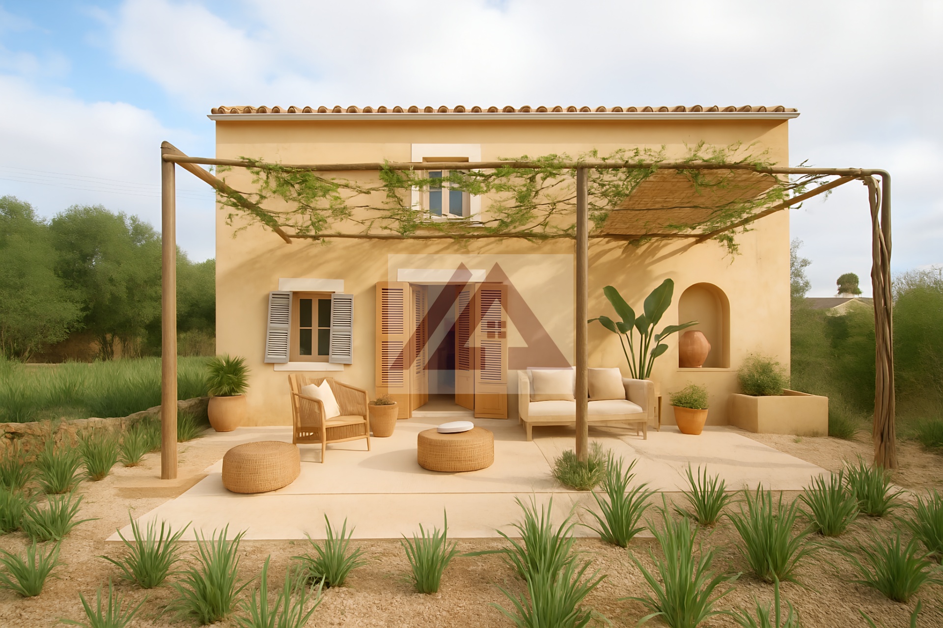 En una zona elevada cerca de Calas de Mallorca, se encuentra esta antigua finca rústica con impresionante vistas al mar.