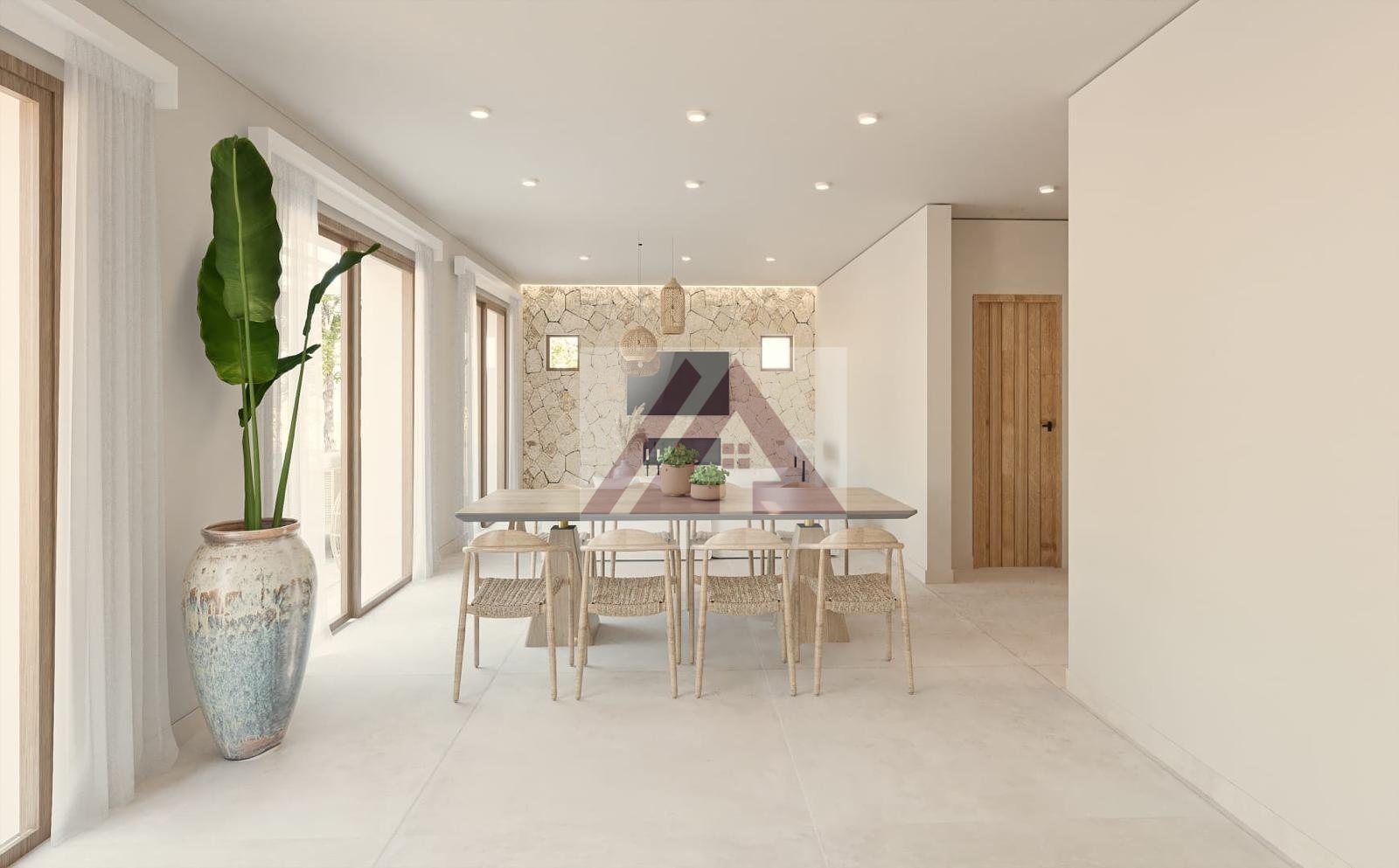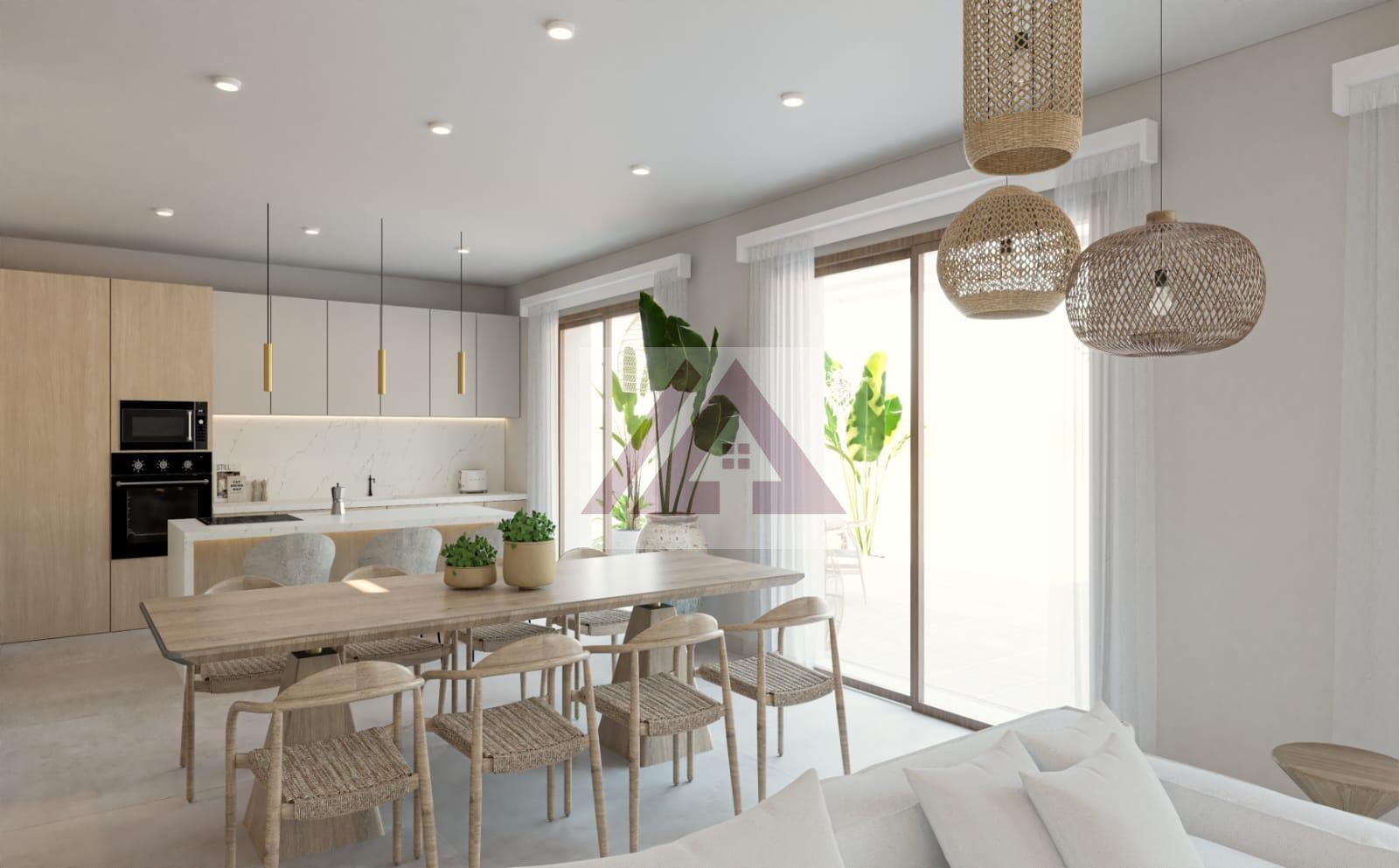 Planta baja dispondrá de un recibidor que nos cede paso a un luminoso salón-comedor con chimenea empotrada y varias salidas a la terraza-porche de unos 70 m2 con vista a la piscina de 35 m2.