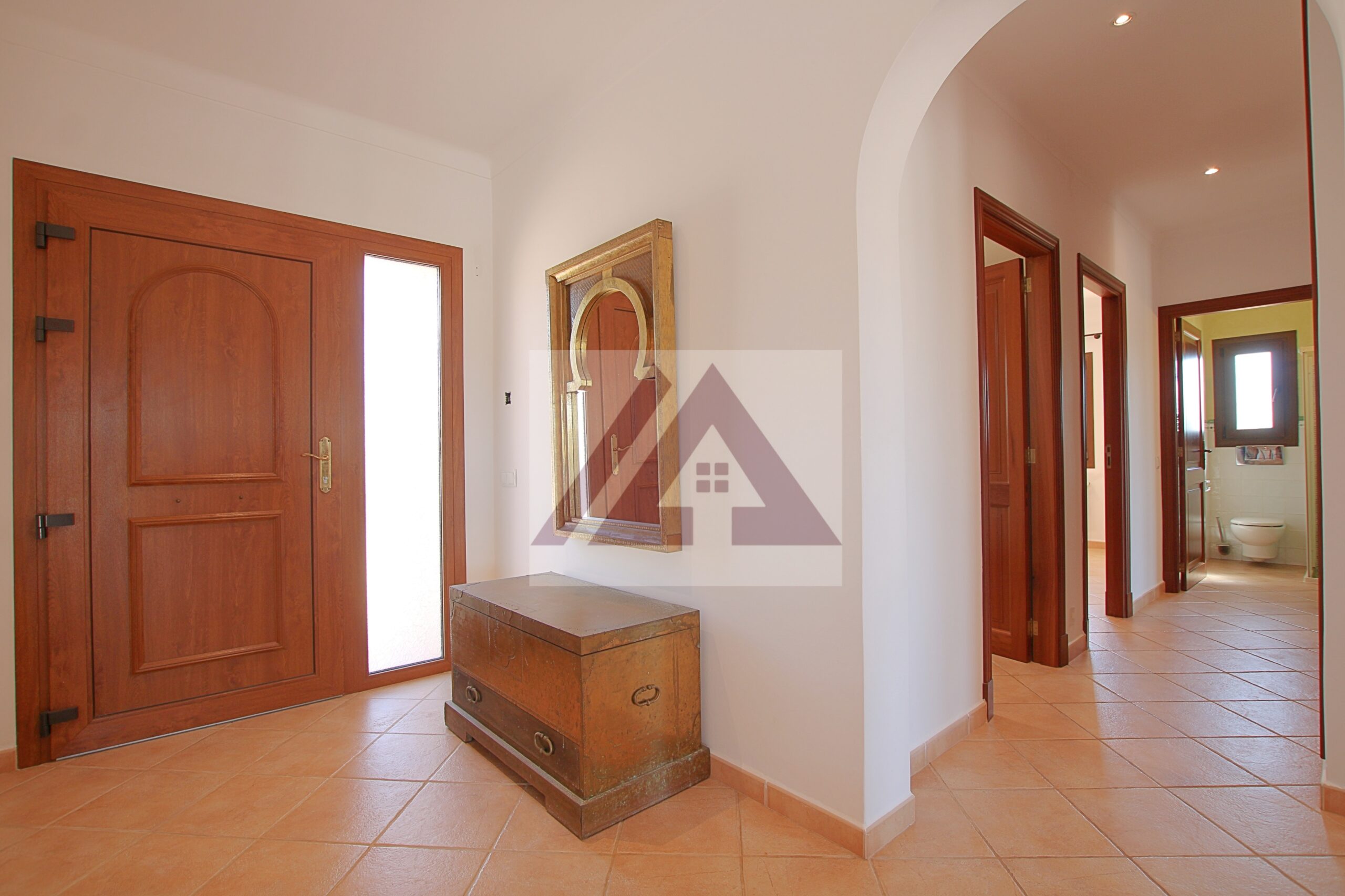 L'ampio ingresso conduce sulla destra al luminoso soggiorno-sala da pranzo con grande cucina integrata e attrezzata, con uscita sulla grande terrazza in parte coperta, dove si trovano la zona barbecue e la grande piscina con area relax e doccia esterna.
