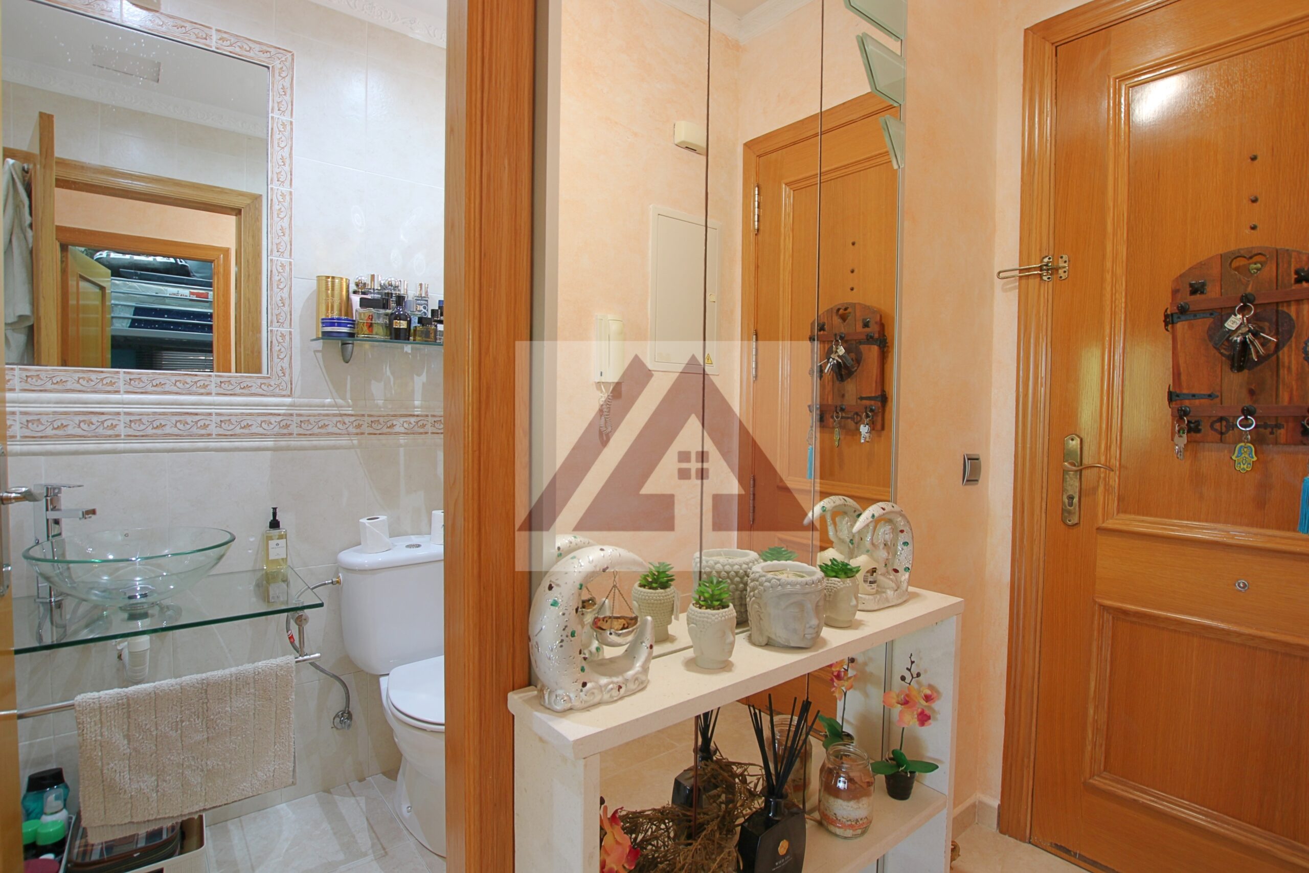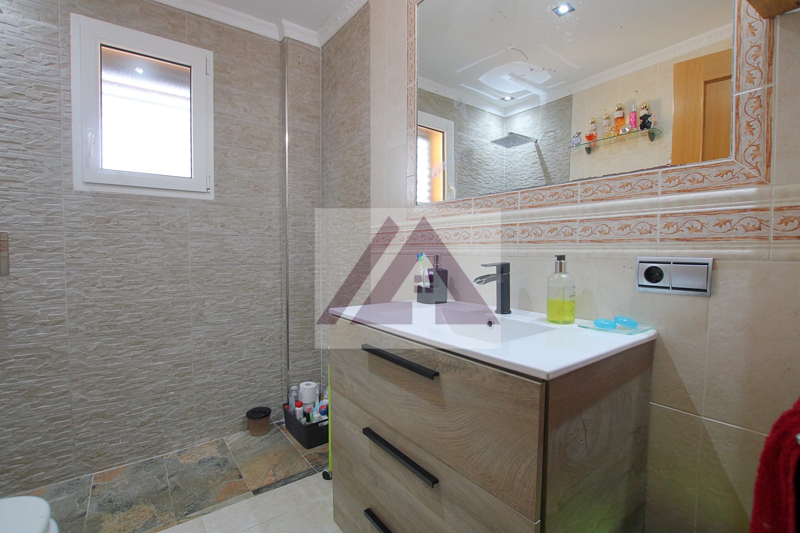 100 m², verteilt auf 3 Schlafzimmer, alle nach außen gelegen, mit Einbauschränken und 2 Badezimmern, eines davon en suite.