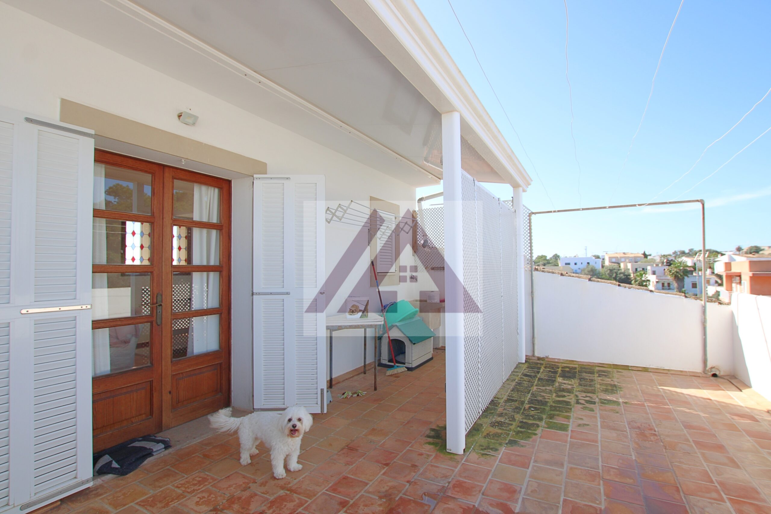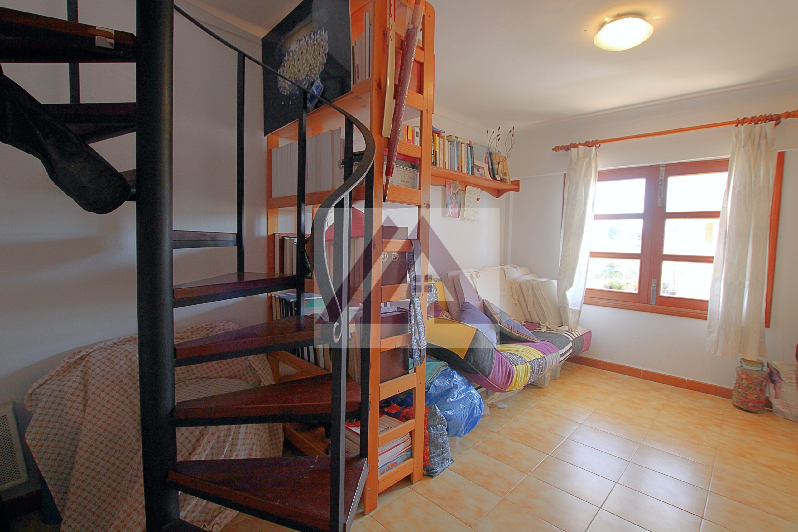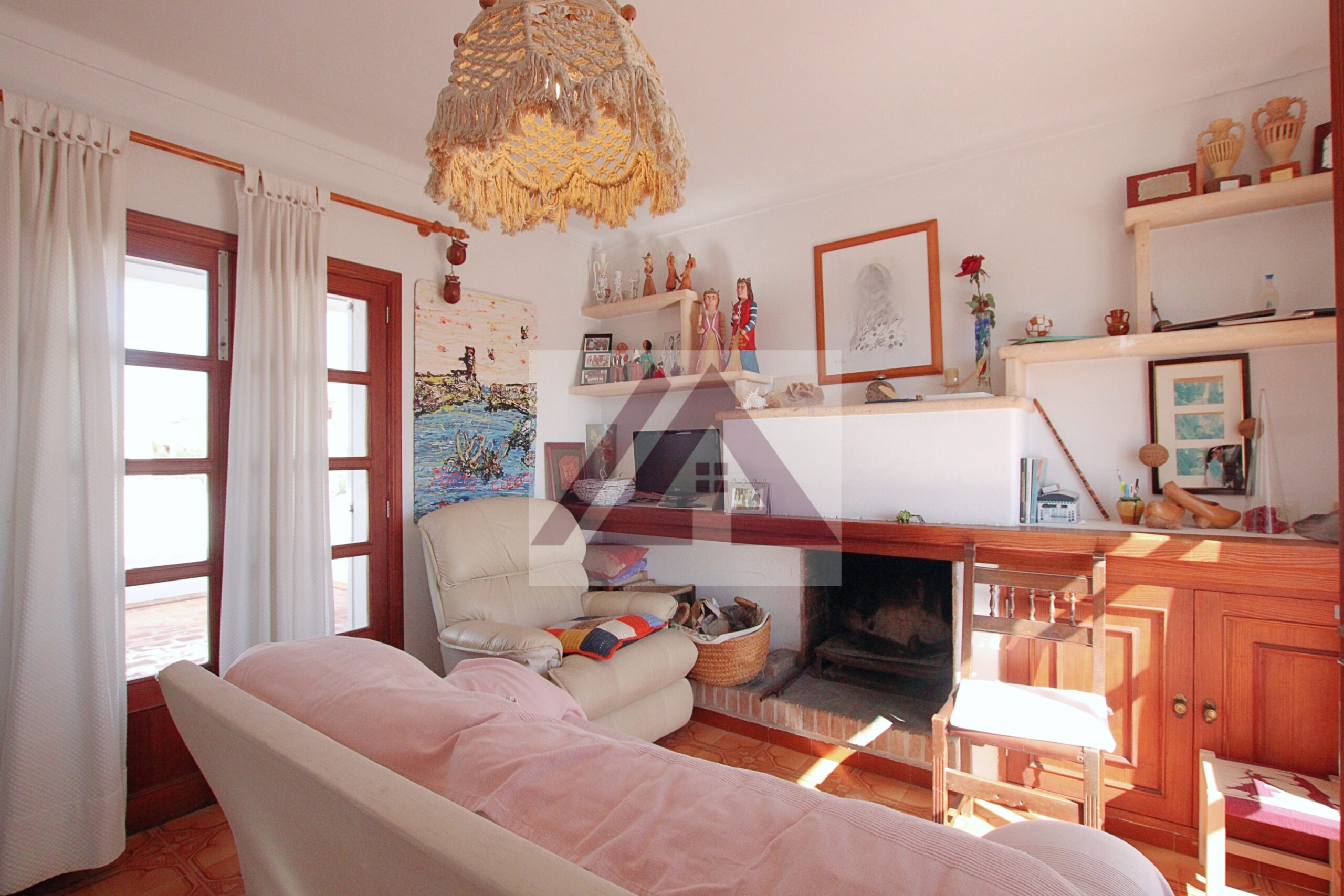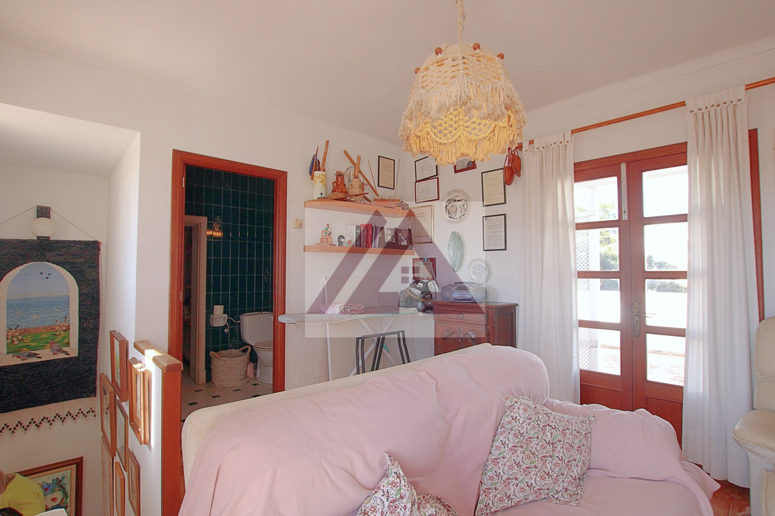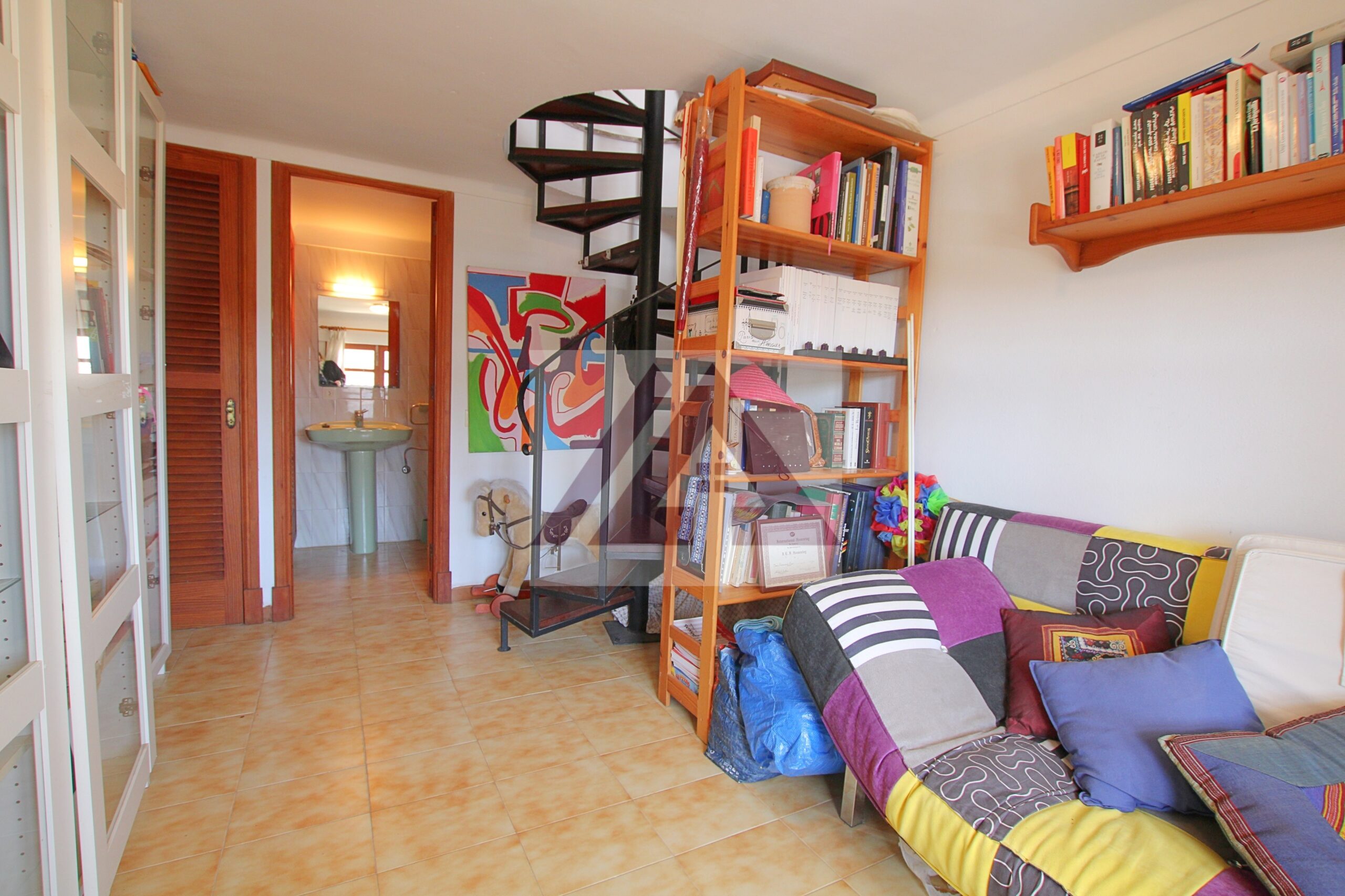Vom Esszimmer aus führt eine weitere Innentreppe in den zweiten Stock, wo sich ein hübsches, helles Wohnzimmer mit Zugang zu zwei großen Terrassen befindet, von denen aus man einen freien und teilweisen Blick auf das Meer hat.