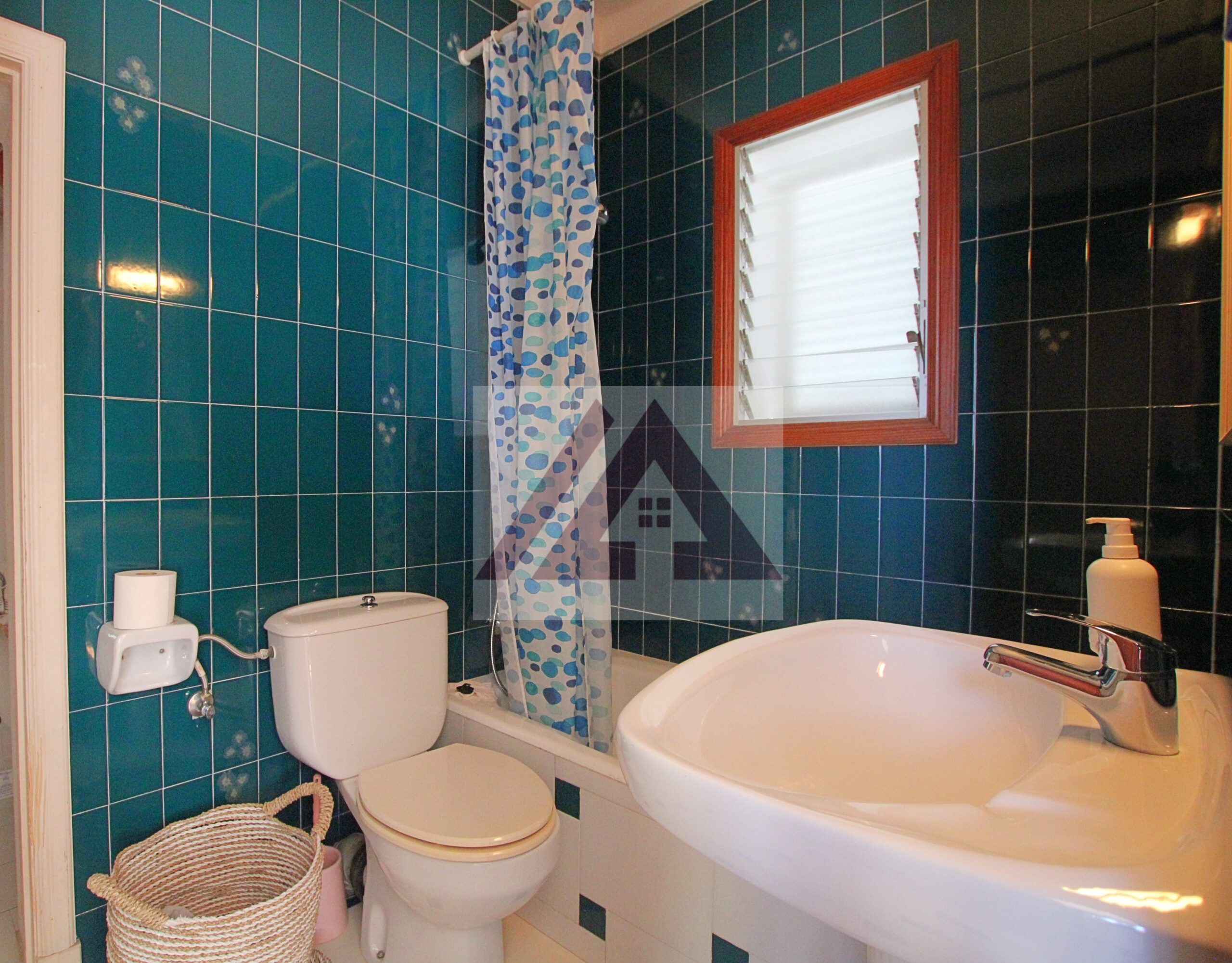 20 m², ein helles Wohn-Esszimmer, eine große Küche im Office-Stil, zwei Doppelzimmer mit Einbauschränken, mit Zugang zur Terrasse, von der aus man den Blick auf den Pool genießen kann, und ein Badezimmer mit Badewanne.