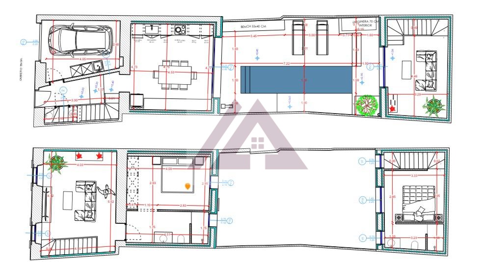 Das Haupthaus besteht aus einer Garage mit direktem Zugang über ein automatisches Tor, einem Gäste-WC, einer offenen Einbauküche mit direktem Zugang zum Chill-out-Bereich und zum privaten Salzwasserpool.
