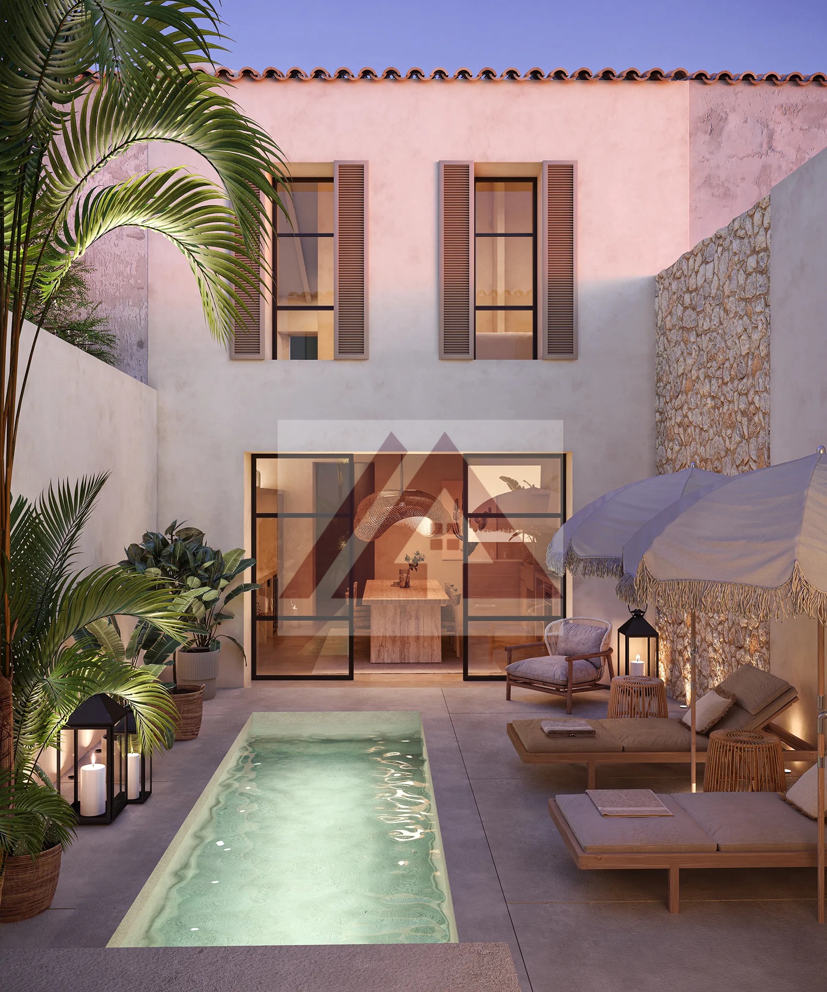 Das Haus wurde unter Verwendung bester Baumaterialien und mit viel Liebe zum Detail renoviert, wobei der mallorquinische Charakter bewahrt wurde, der sich in den sichtbaren Holzbalken und dem eleganten Interieur im mediterranen Stil widerspiegelt.