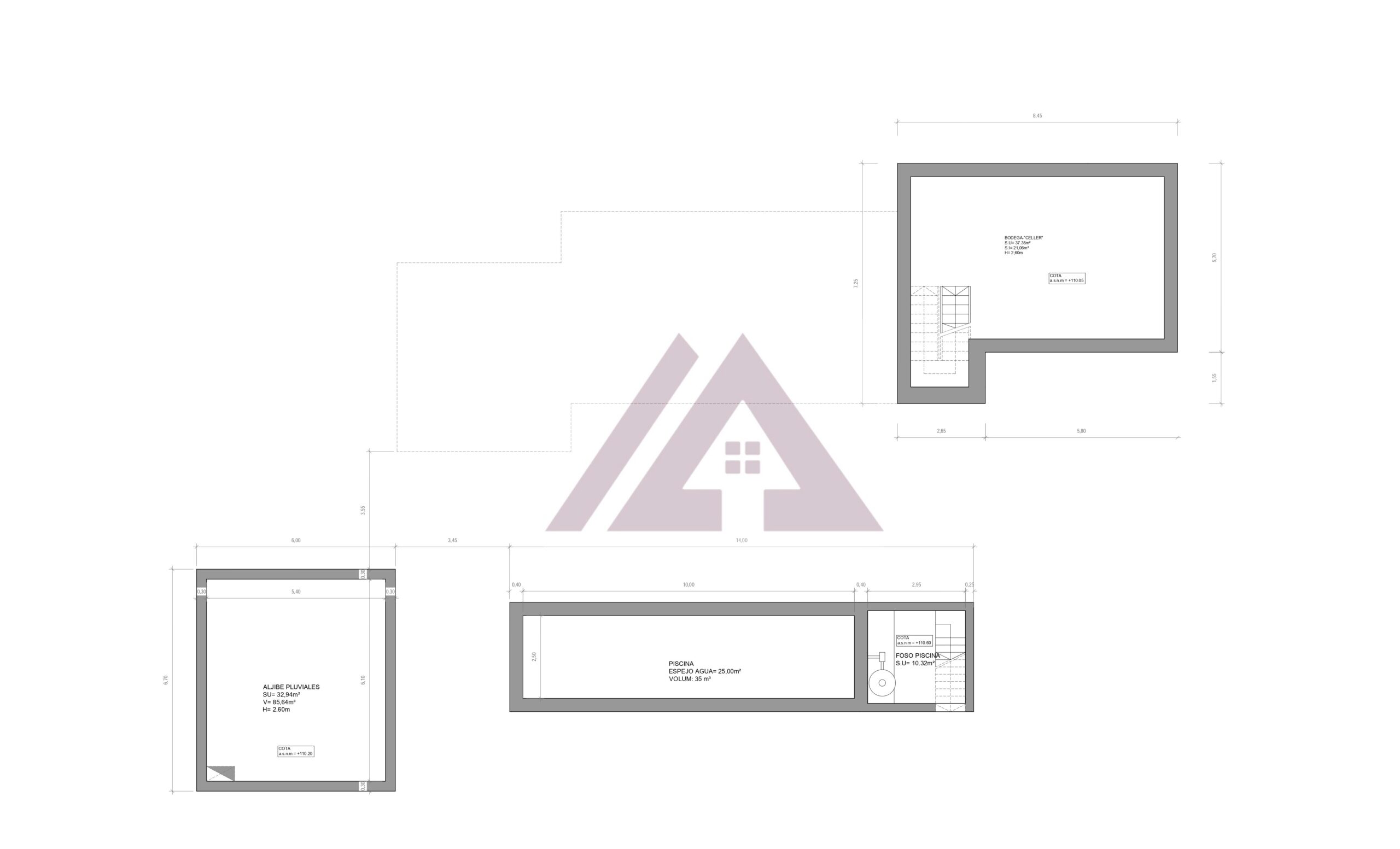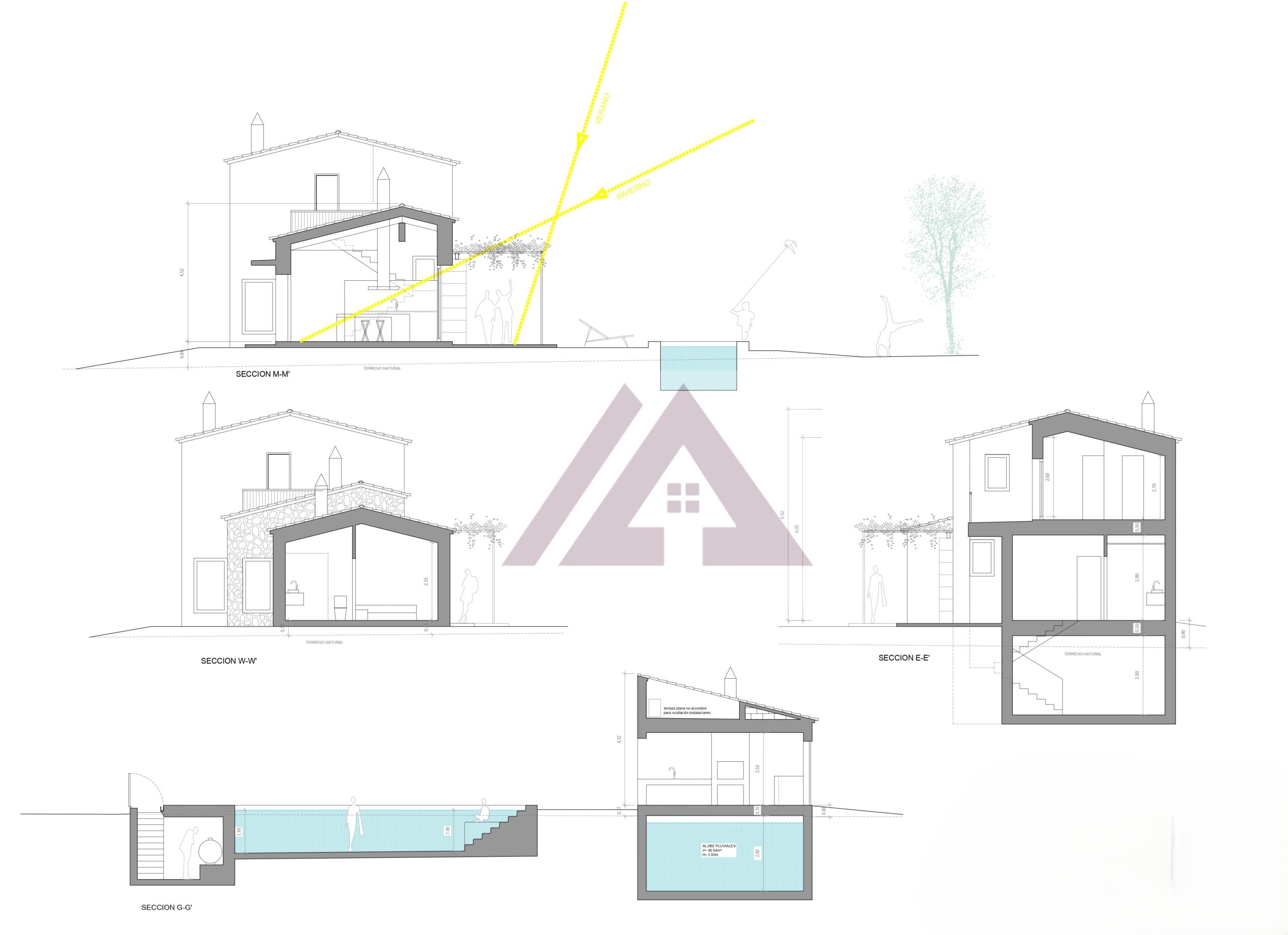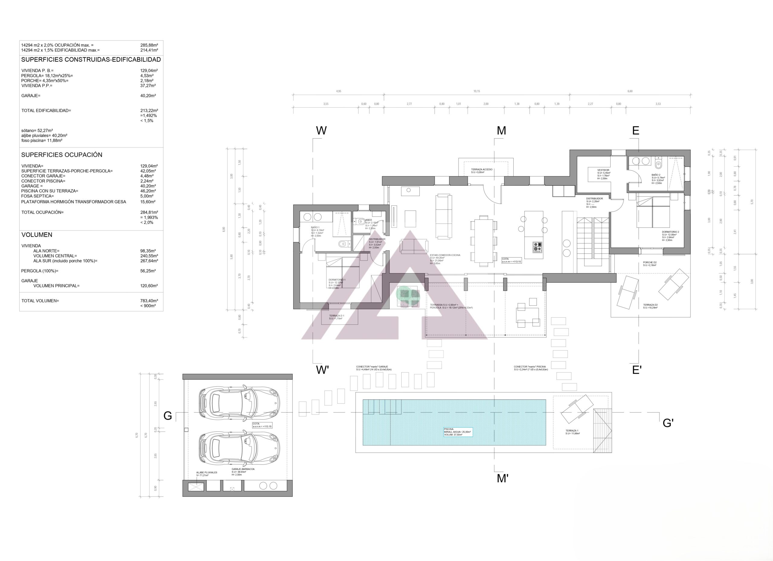 Auf diesem sonnigen Grundstück, das zudem keine Nachbarn in der Nähe hat, ist ein Einfamilienhaus mit Swimmingpool und Garage mit einer Gesamtfläche von 280 m² geplant.