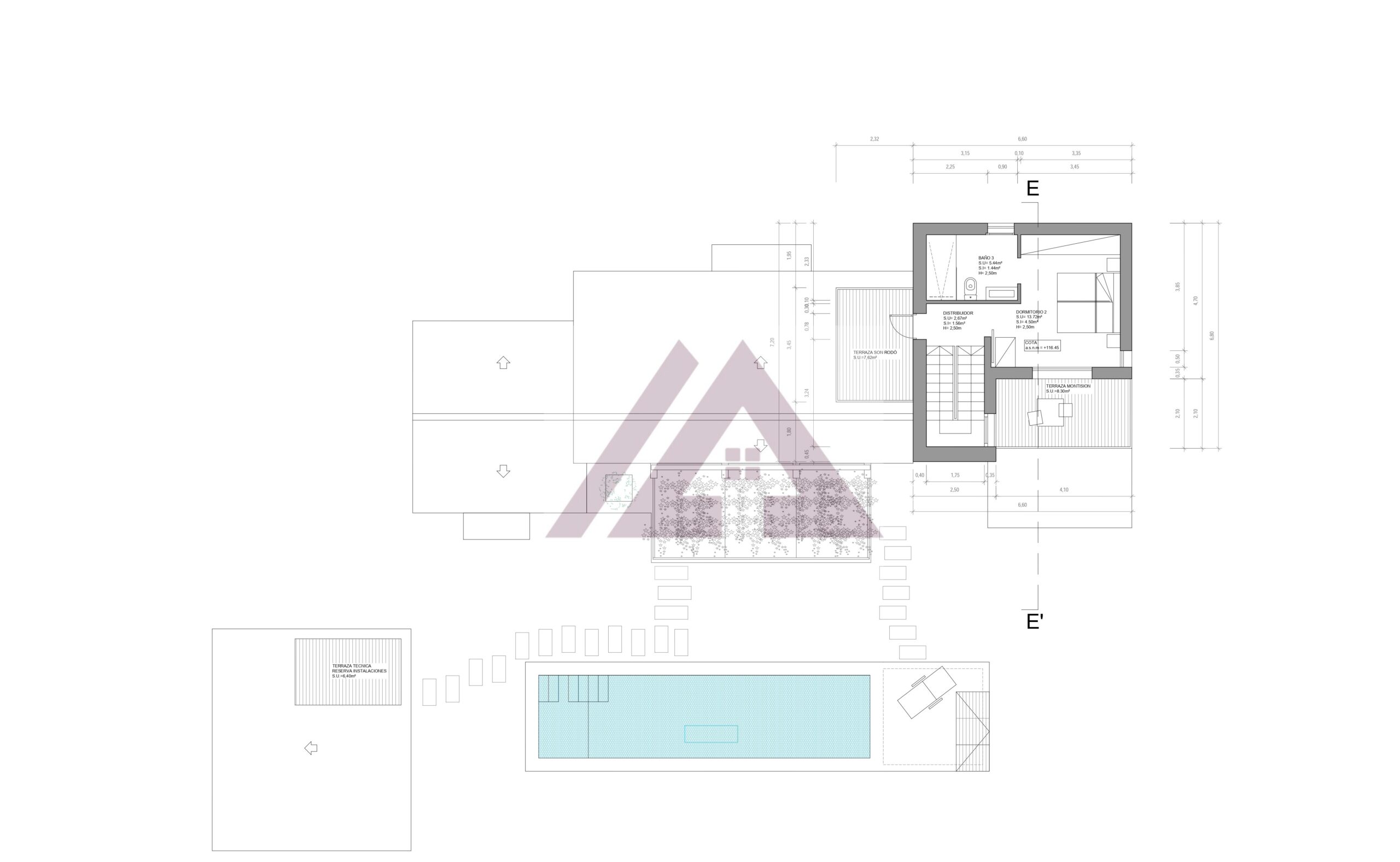 Im Erdgeschoss sind ein geräumiges Wohn-Esszimmer mit integrierter Kücheninsel, eine Gästetoilette und eine große Pergola von 20 m² vorgesehen, die in den großen Chill-out-Bereich mit Swimmingpool übergeht.