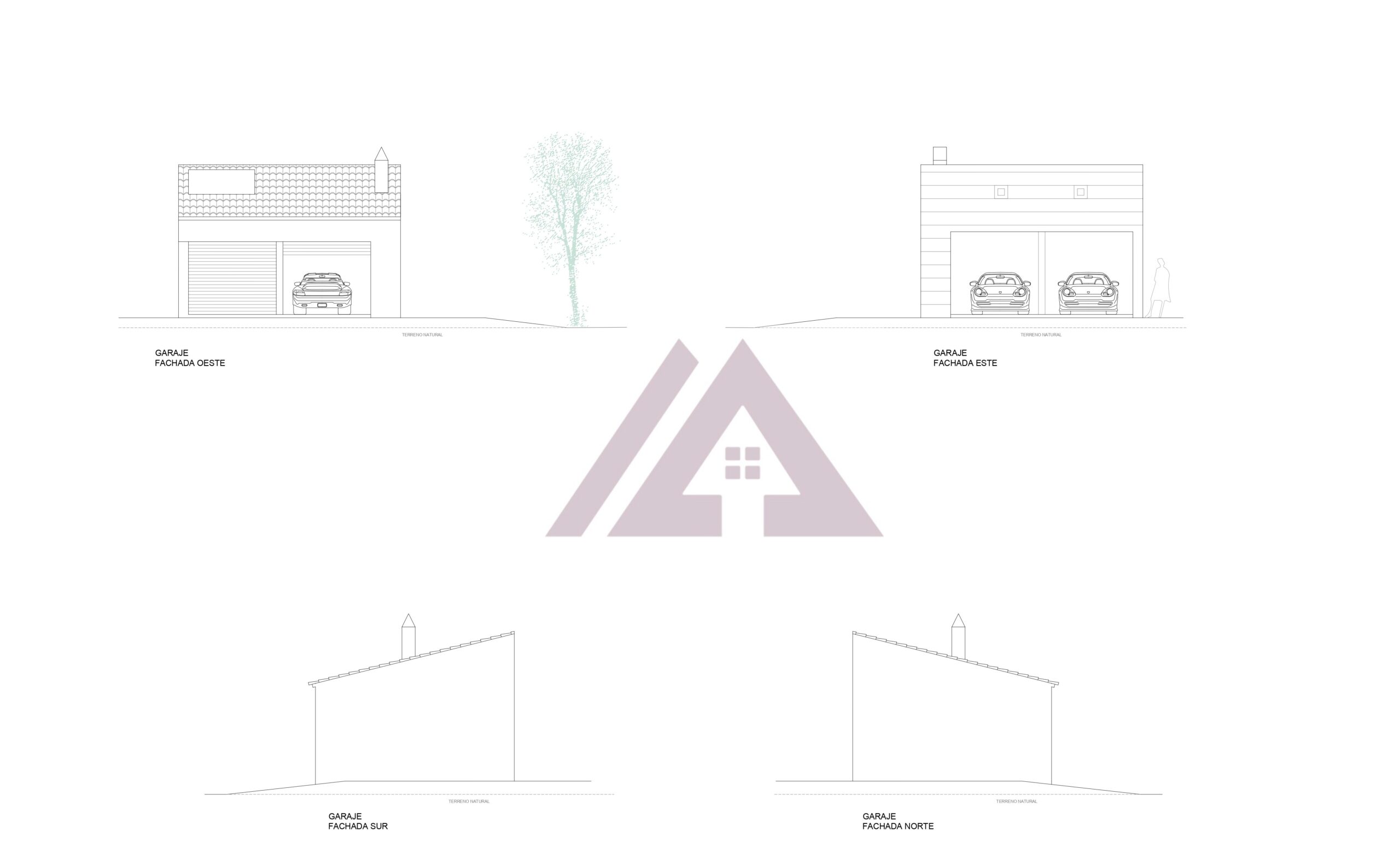 Das Projekt umfasst auch eine separate Garage für zwei Autos und einen praktischen Abstellraum.