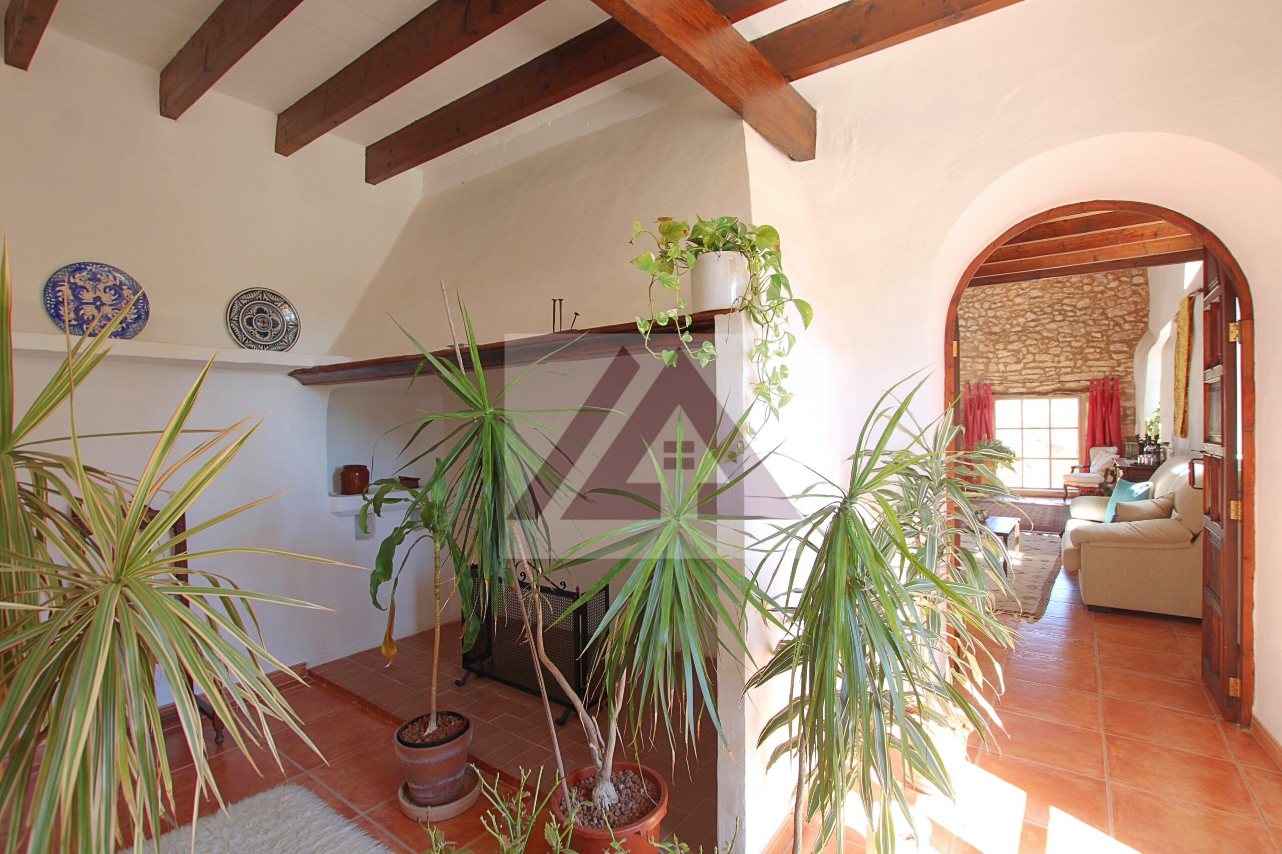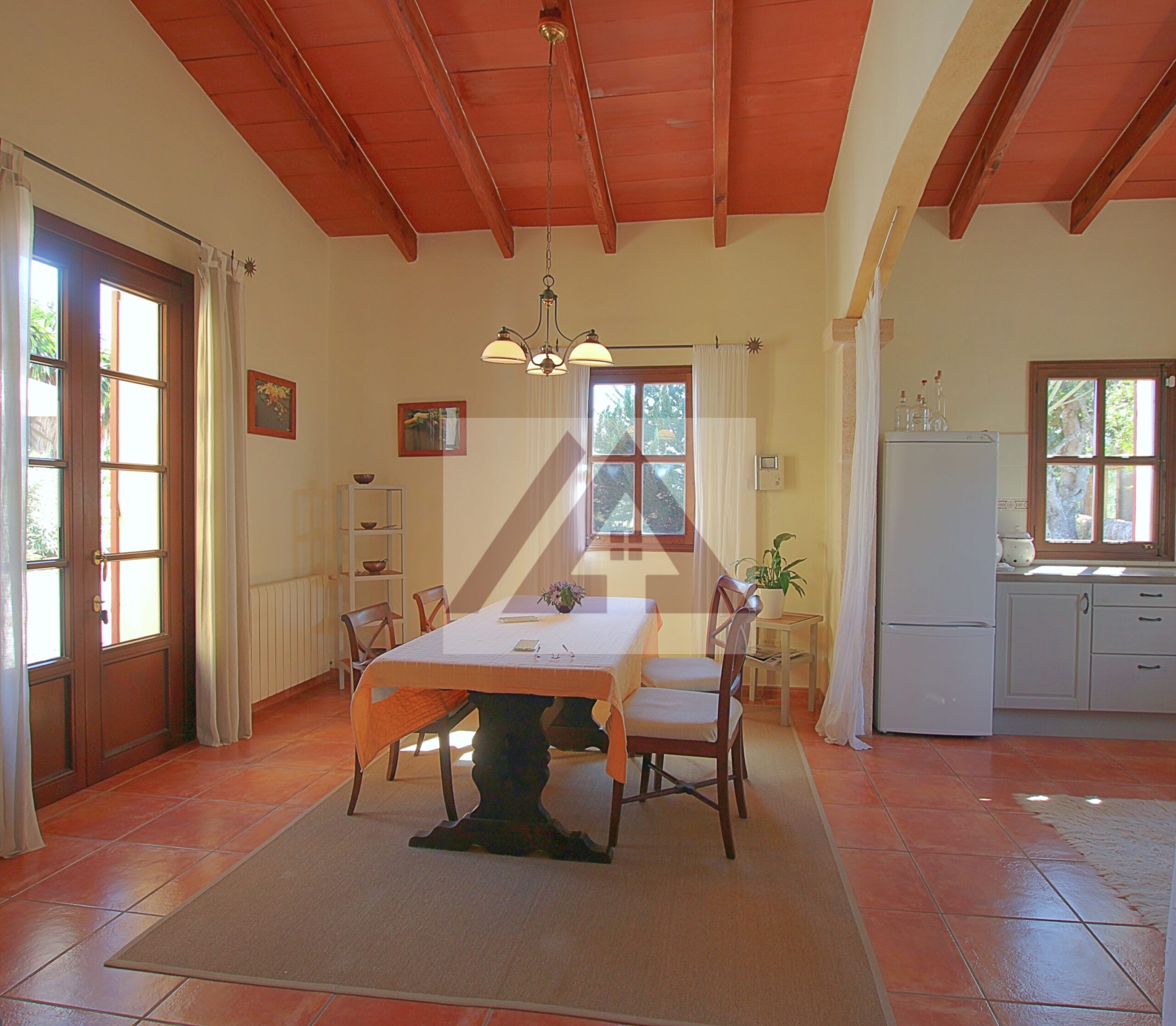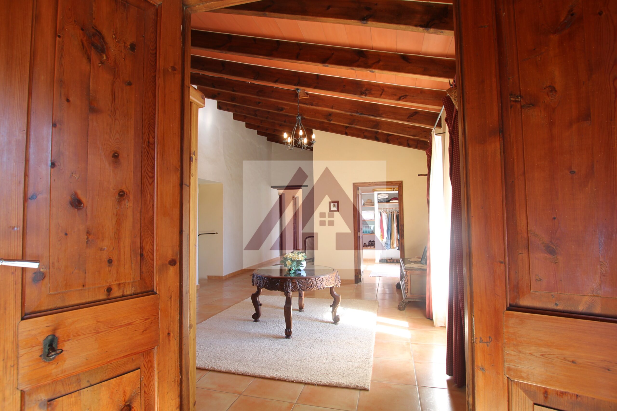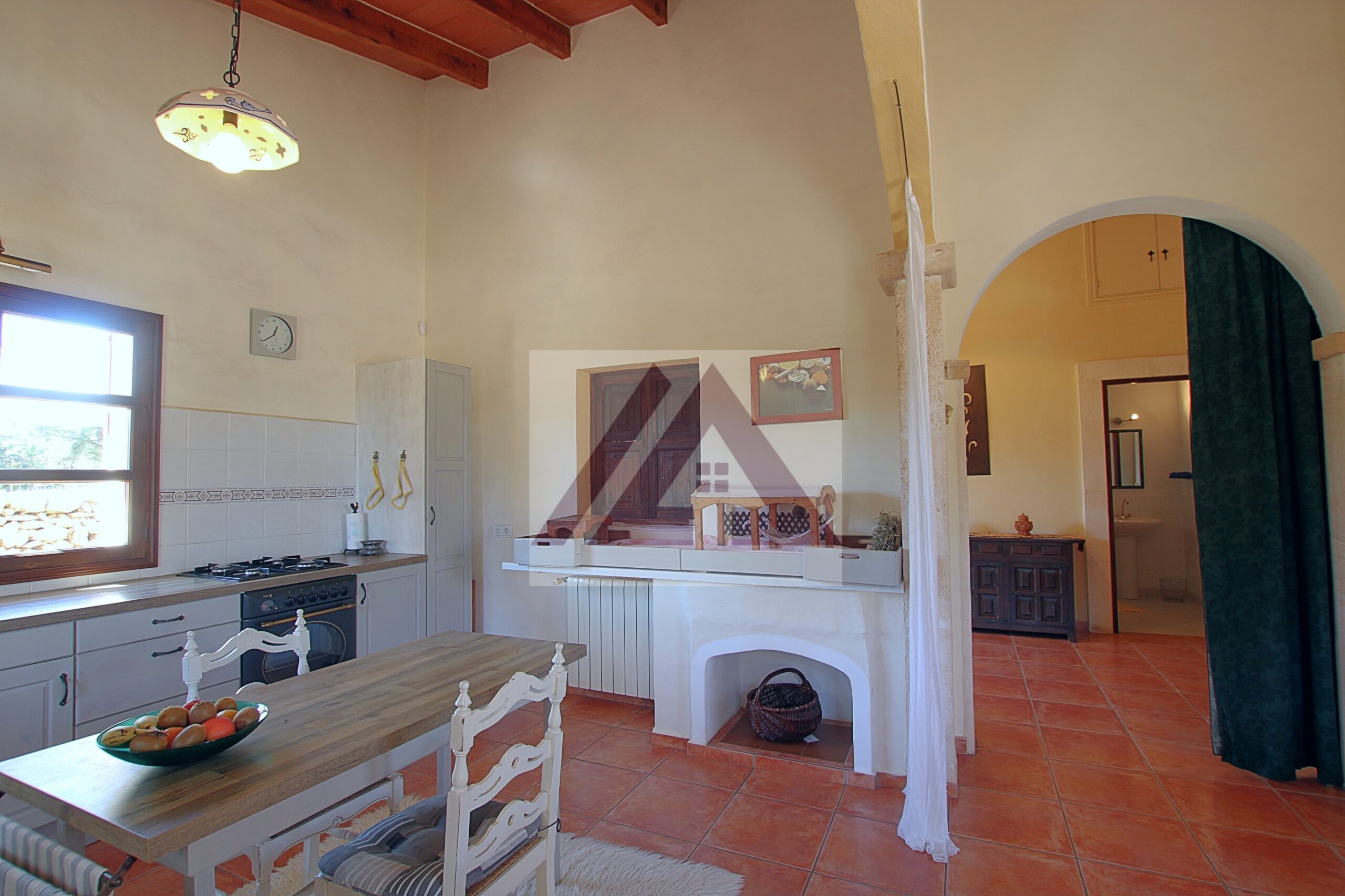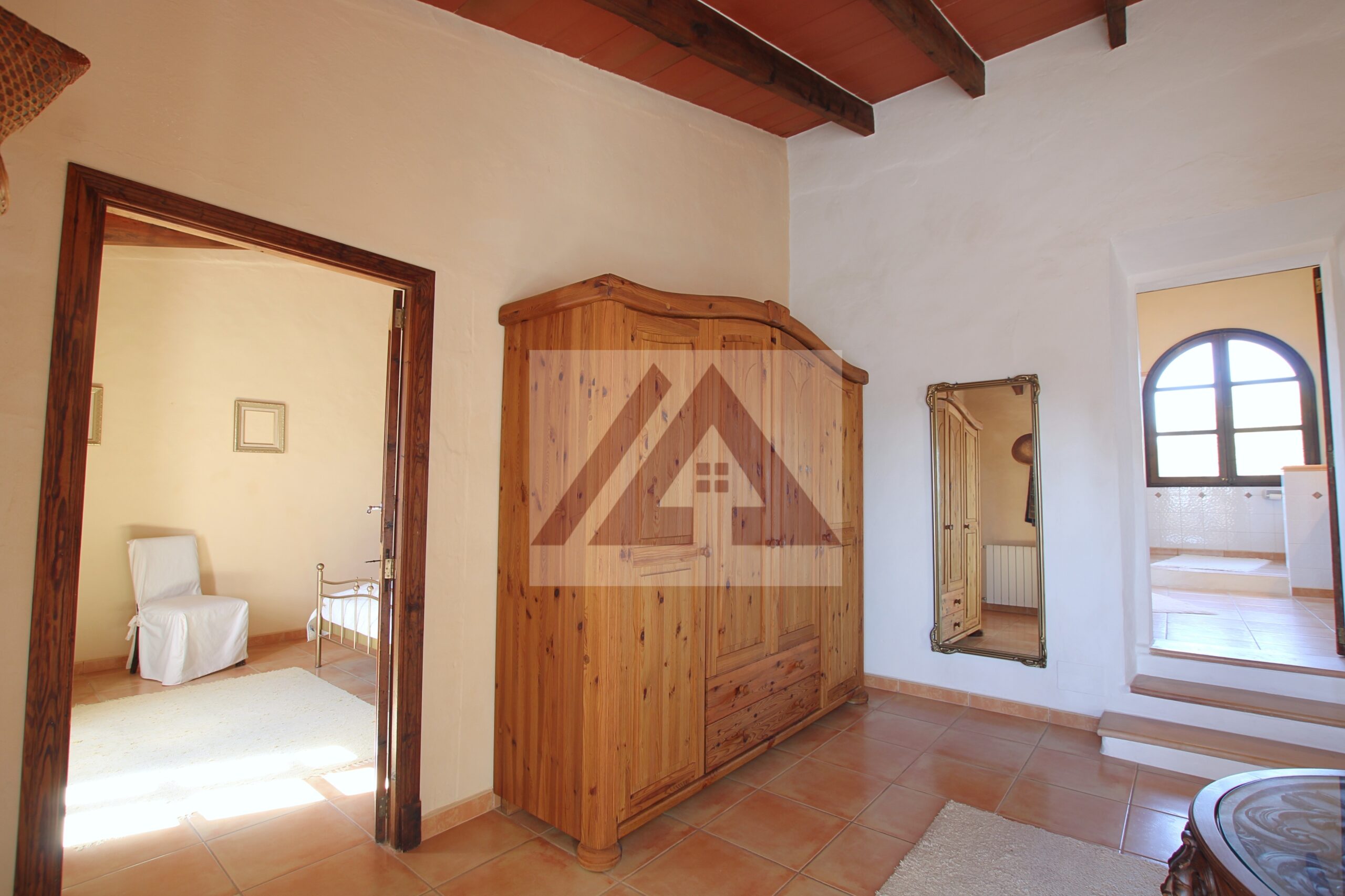 Das Haupthaus erstreckt sich über zwei Etagen, wobei sich im Erdgeschoss ein helles Wohnzimmer mit hohen Decken, sichtbaren Holzbalken, Steinwänden und einem restaurierten antiken Kamin, eine große Küche im Office-Stil und ein helles Esszimmer mit einem weiteren Kamin, ein Büro, eine Gästetoilette und ein Ausgang zur überdachten Terrasse mit einem authentischen mallorquinischen Ofen befinden.