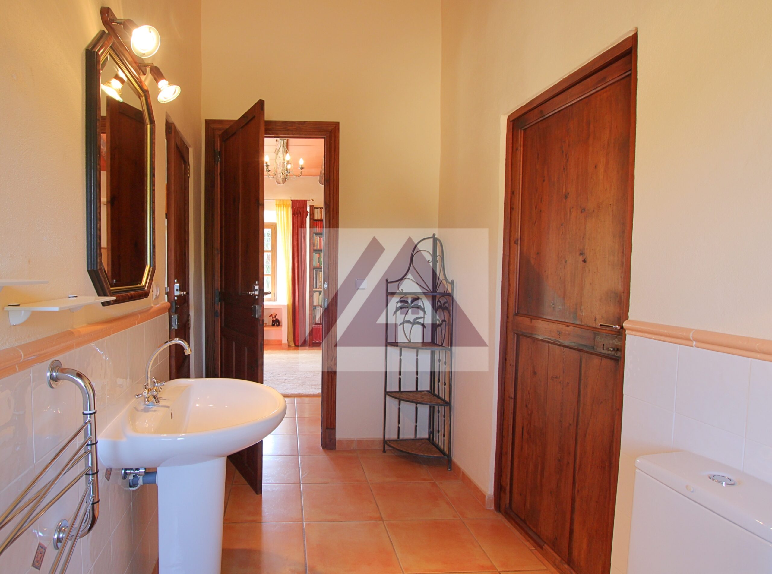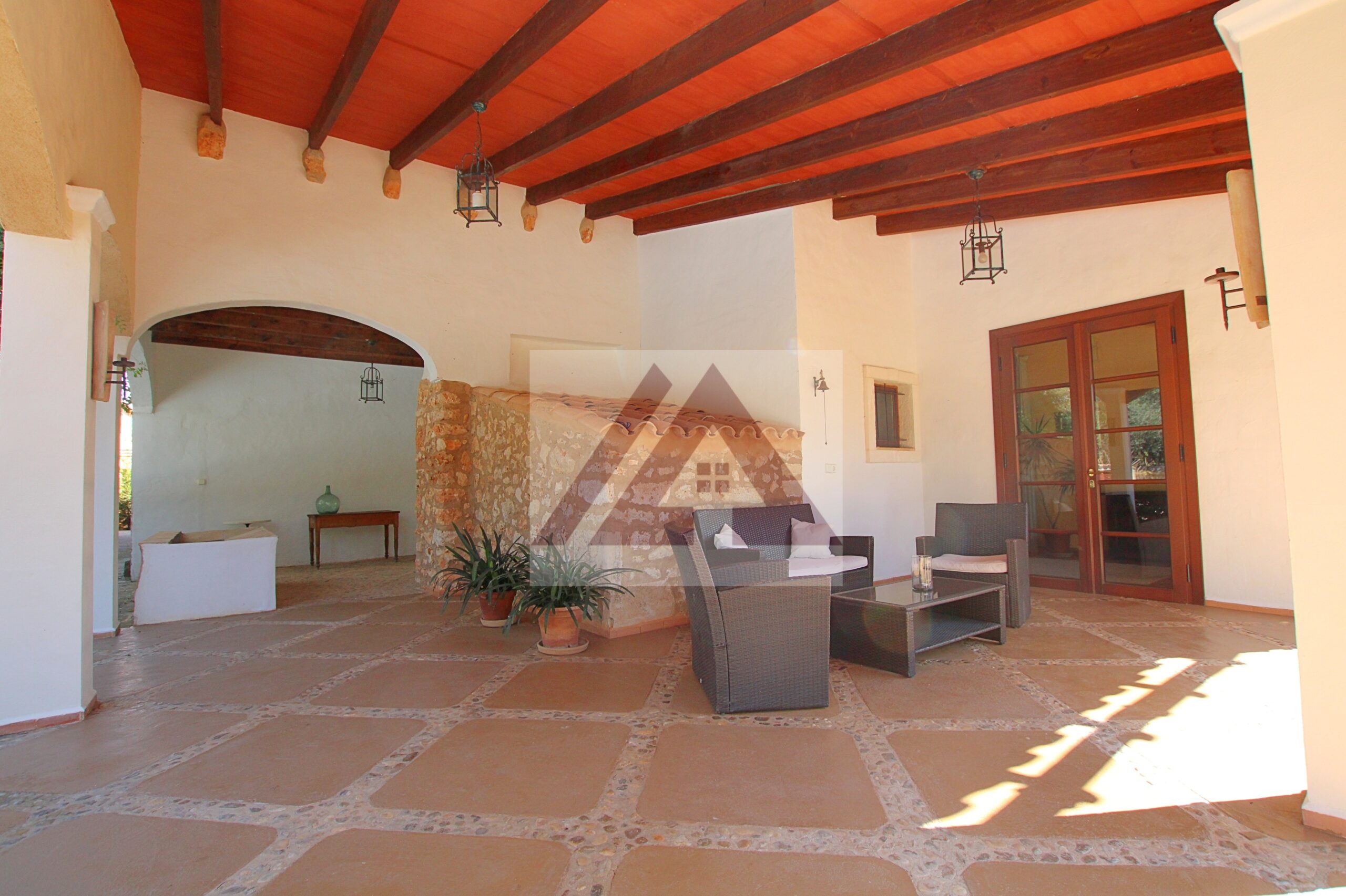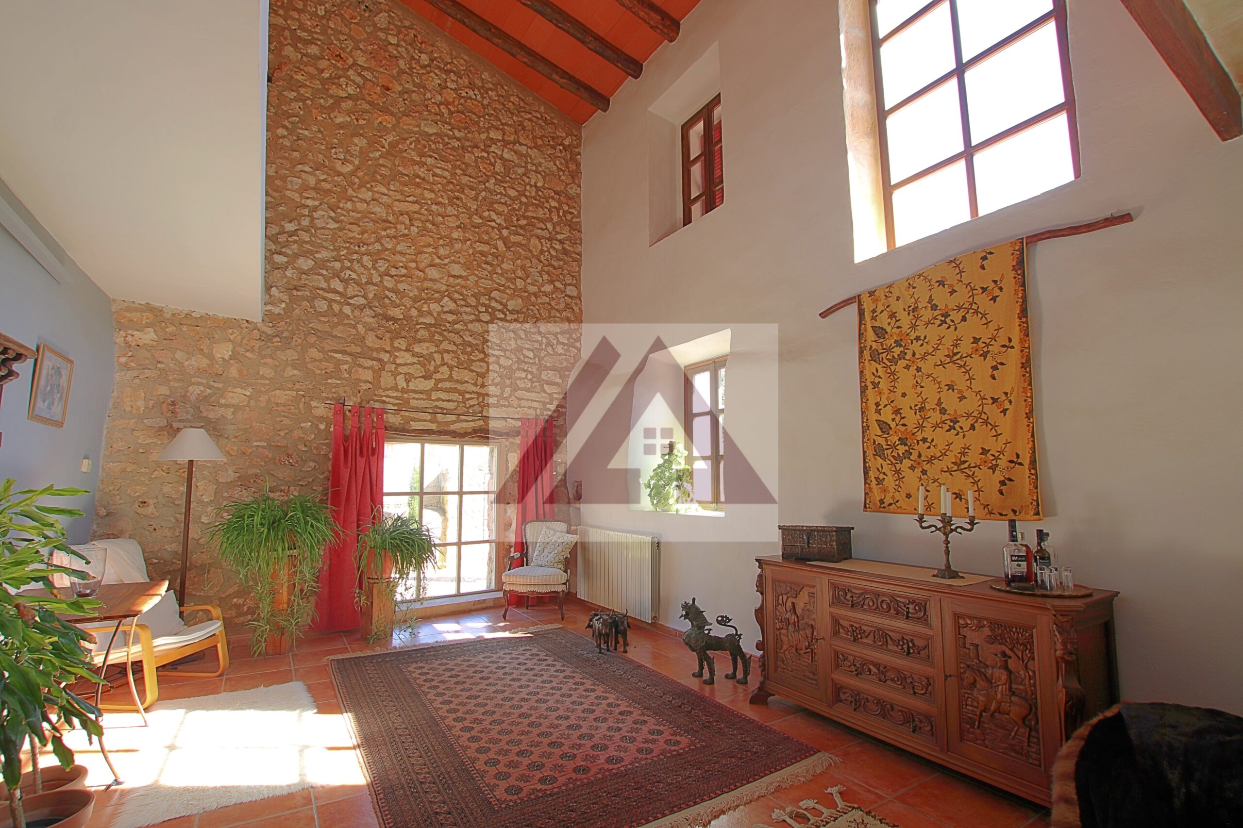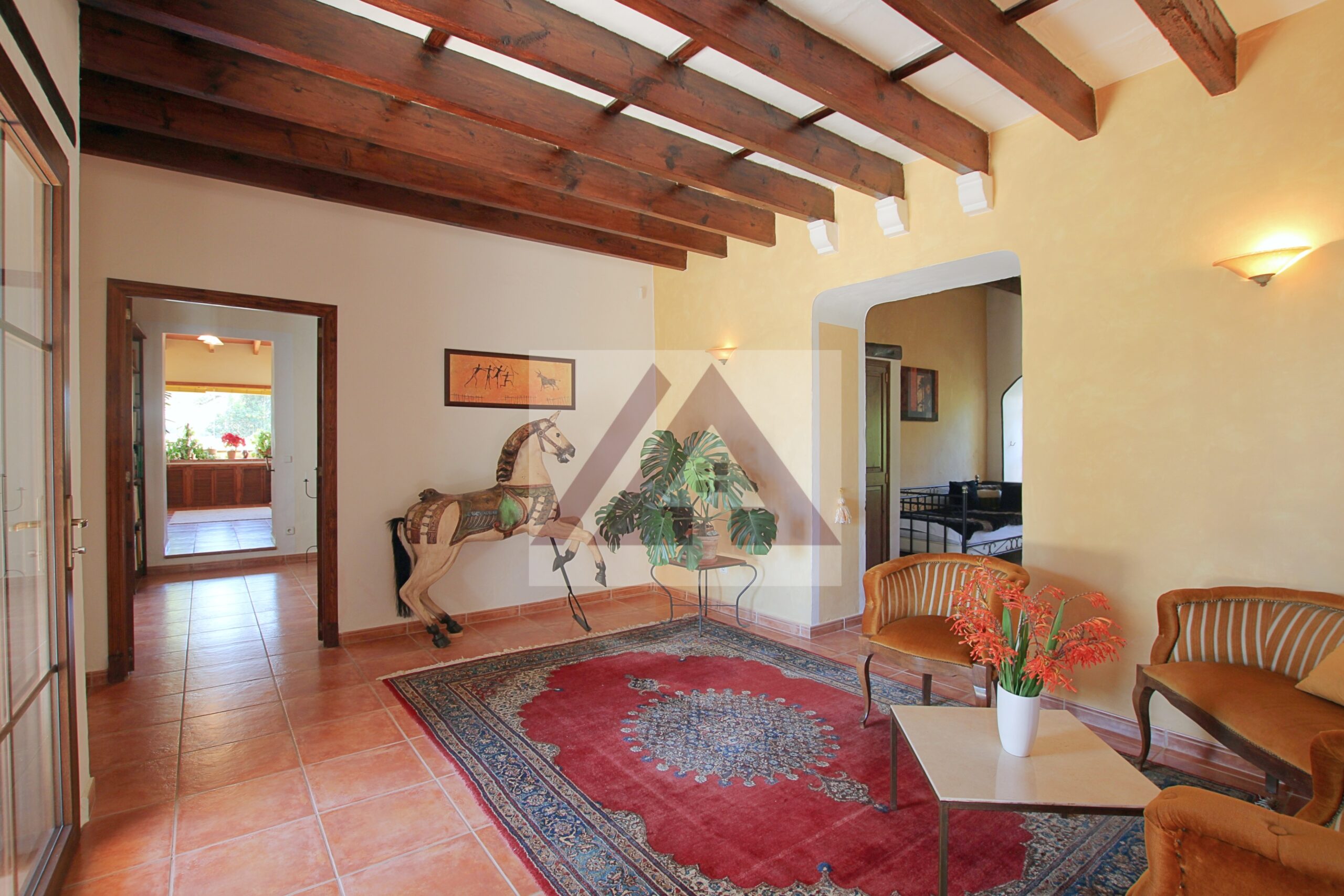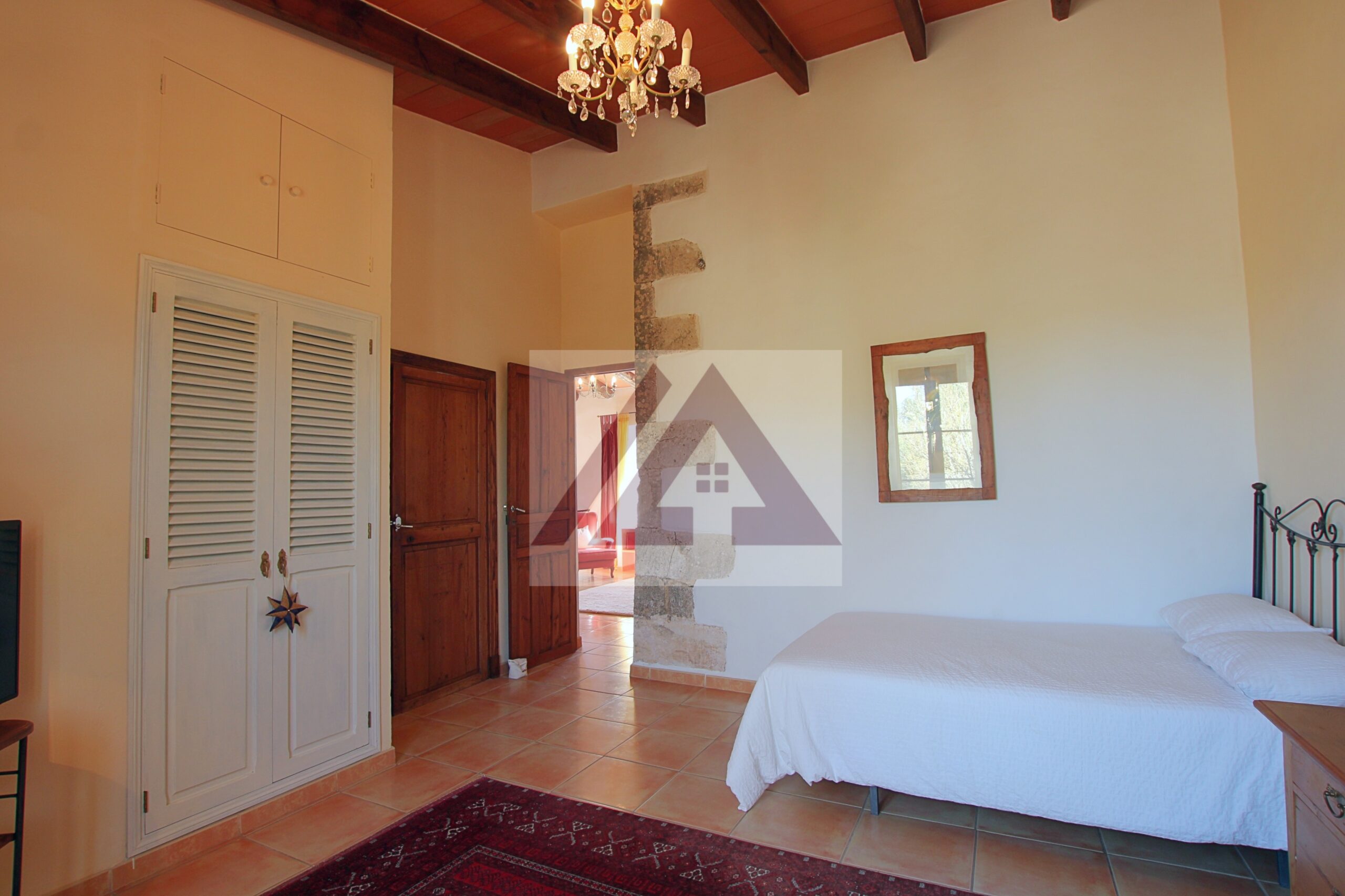 Das Haupthaus erstreckt sich über zwei Etagen, wobei sich im Erdgeschoss ein helles Wohnzimmer mit hohen Decken, sichtbaren Holzbalken, Steinwänden und einem restaurierten antiken Kamin, eine große Küche im Office-Stil und ein helles Esszimmer mit einem weiteren Kamin, ein Büro, eine Gästetoilette und ein Ausgang zur überdachten Terrasse mit einem authentischen mallorquinischen Ofen befinden.