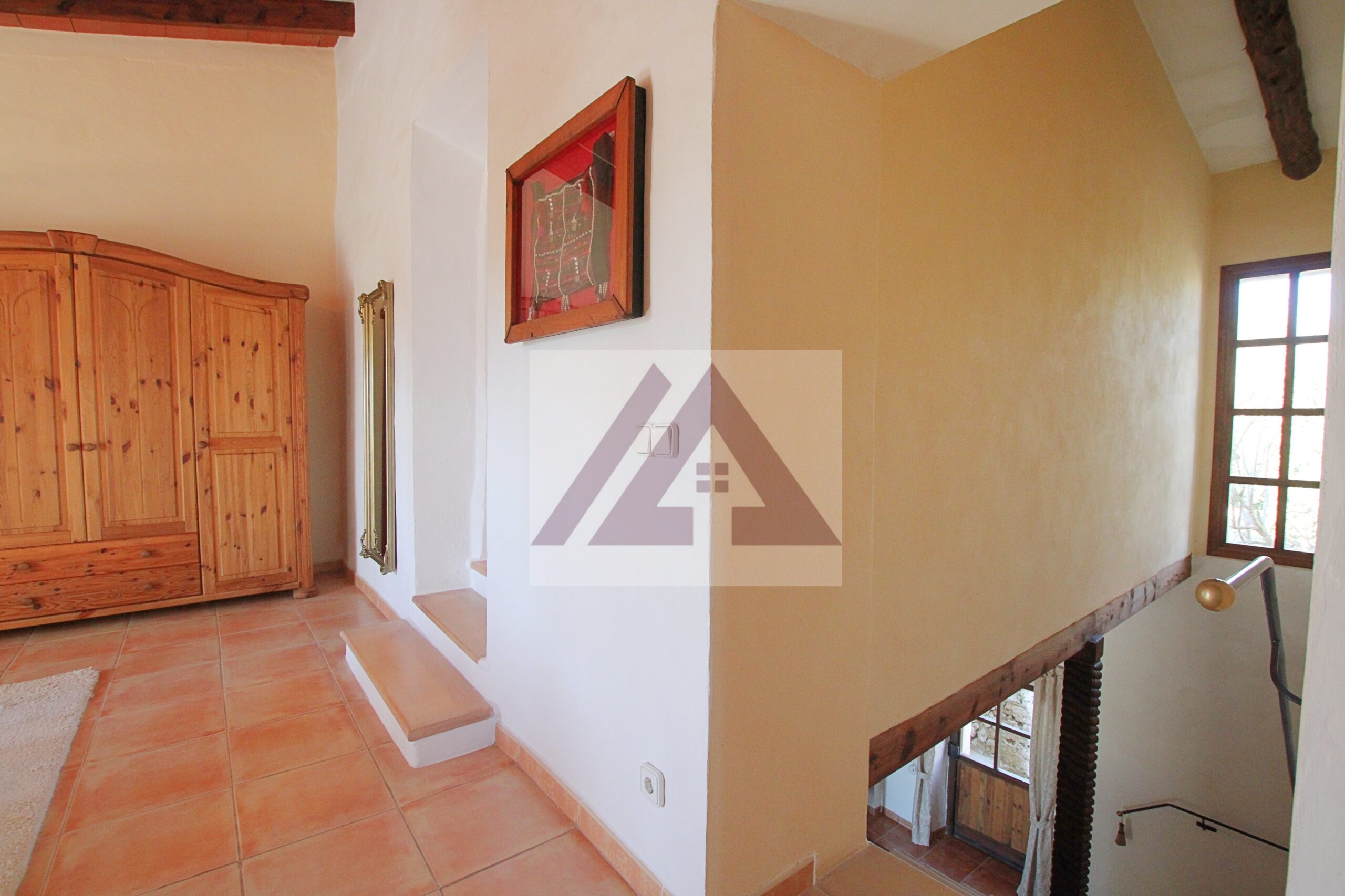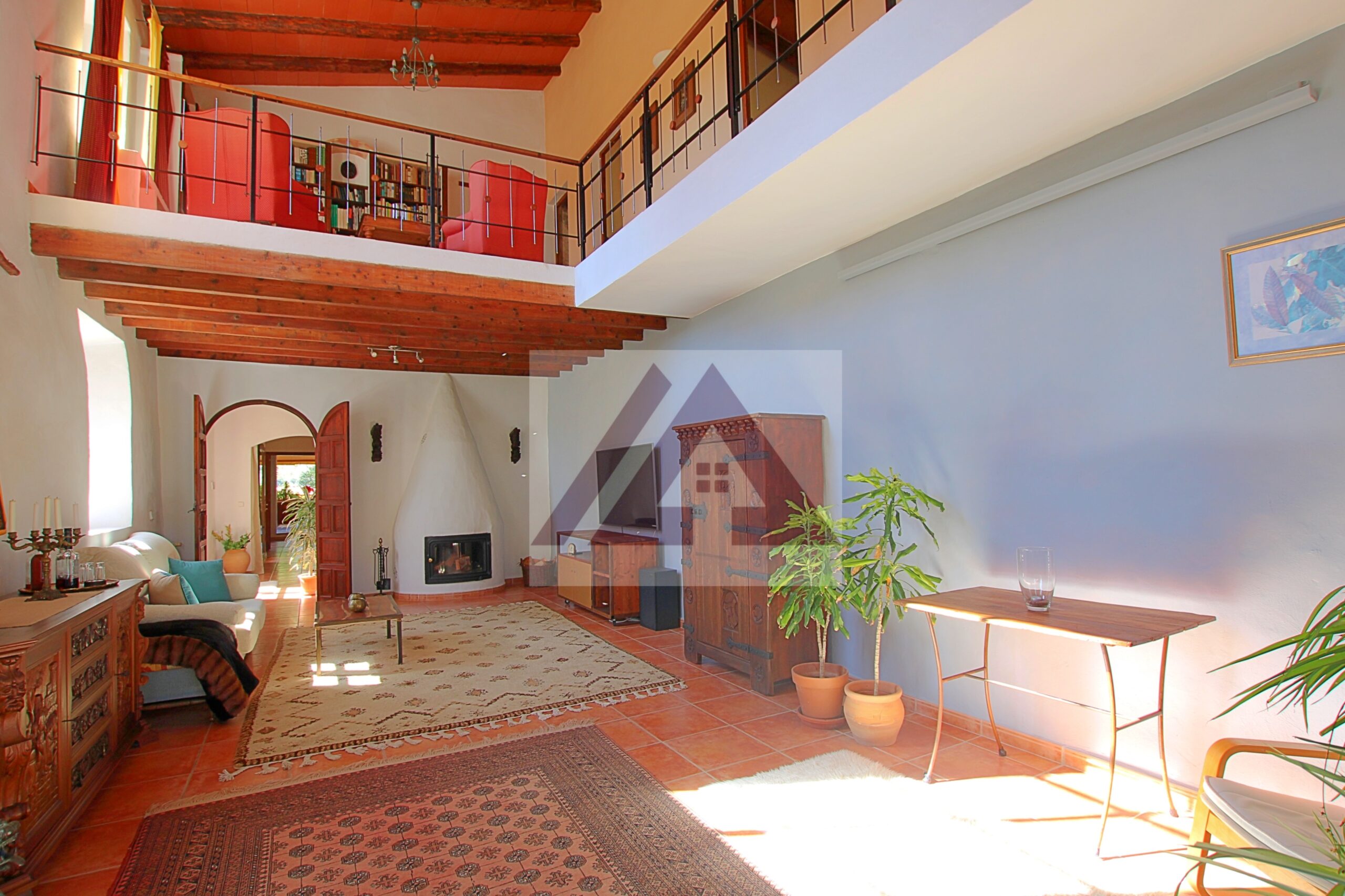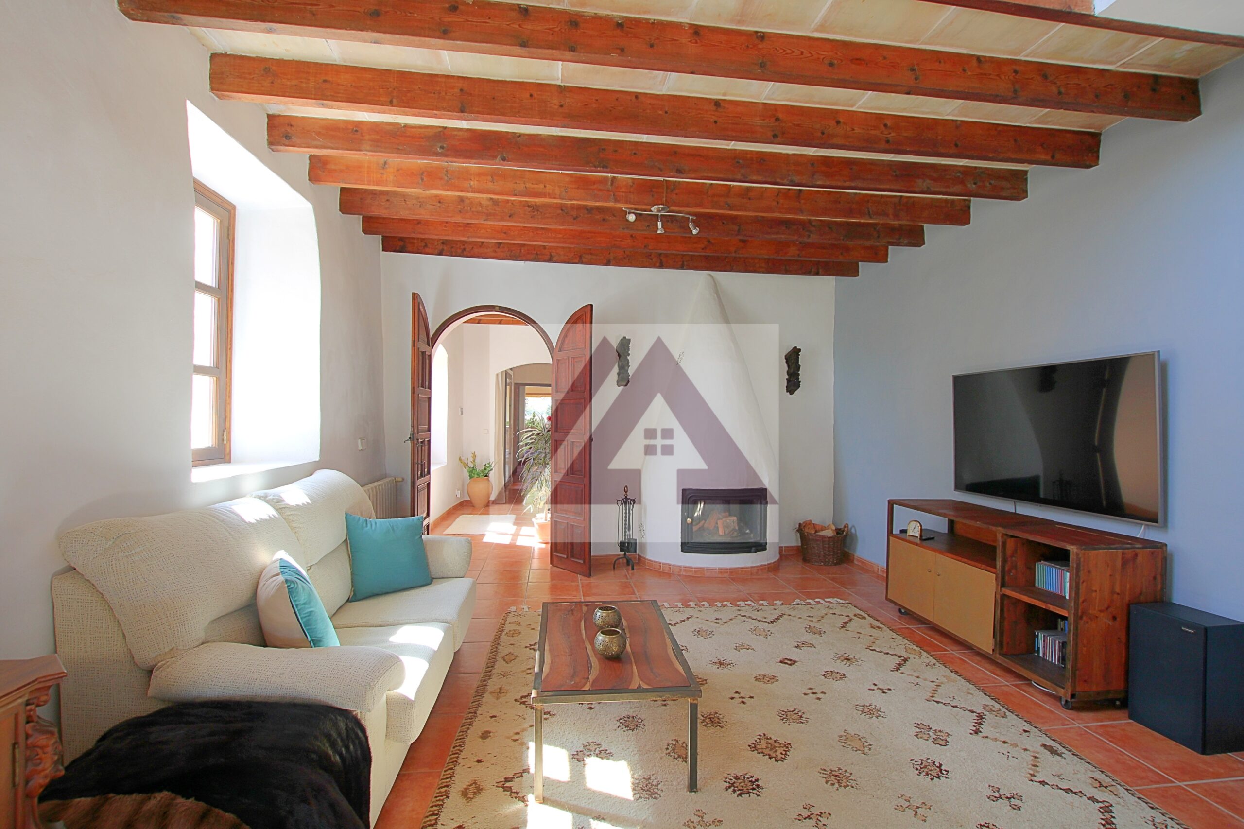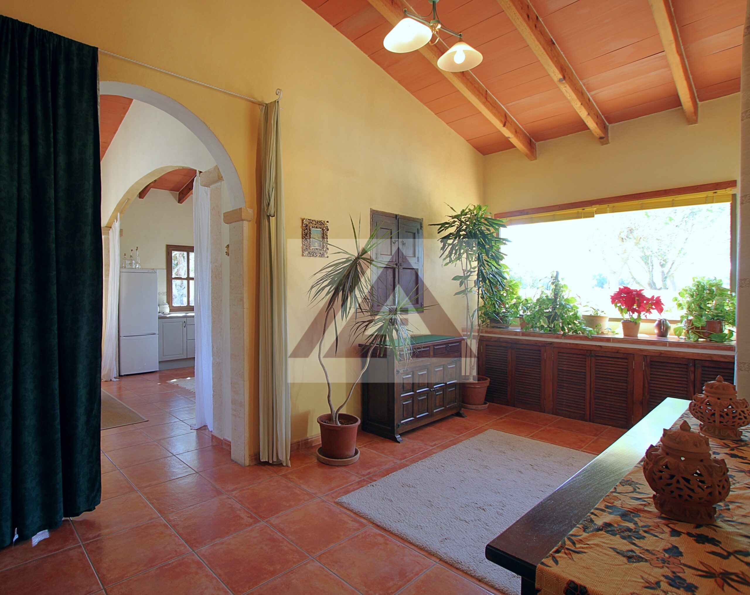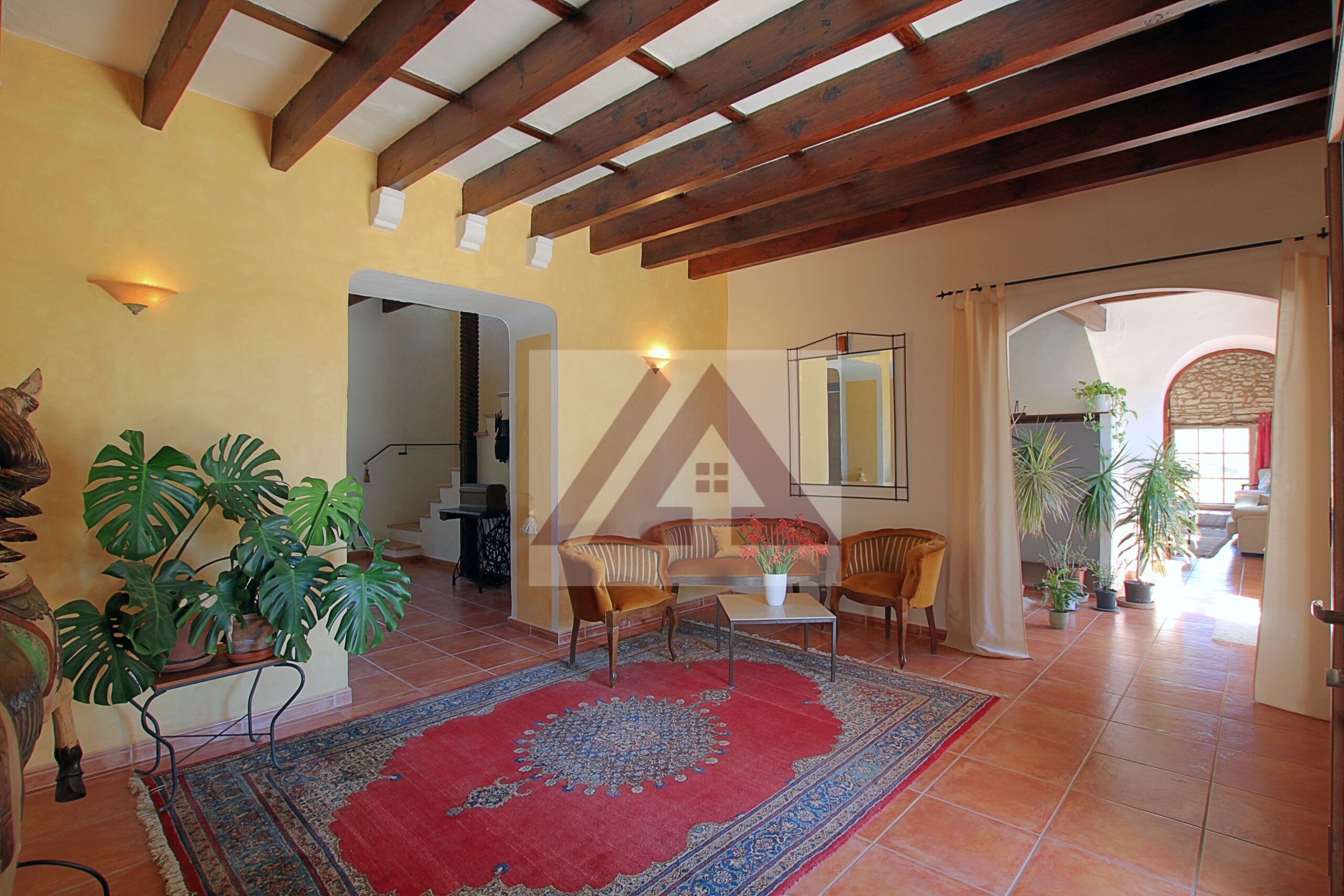 Das Haupthaus erstreckt sich über zwei Etagen, wobei sich im Erdgeschoss ein helles Wohnzimmer mit hohen Decken, sichtbaren Holzbalken, Steinwänden und einem restaurierten antiken Kamin, eine große Küche im Office-Stil und ein helles Esszimmer mit einem weiteren Kamin, ein Büro, eine Gästetoilette und ein Ausgang zur überdachten Terrasse mit einem authentischen mallorquinischen Ofen befinden.