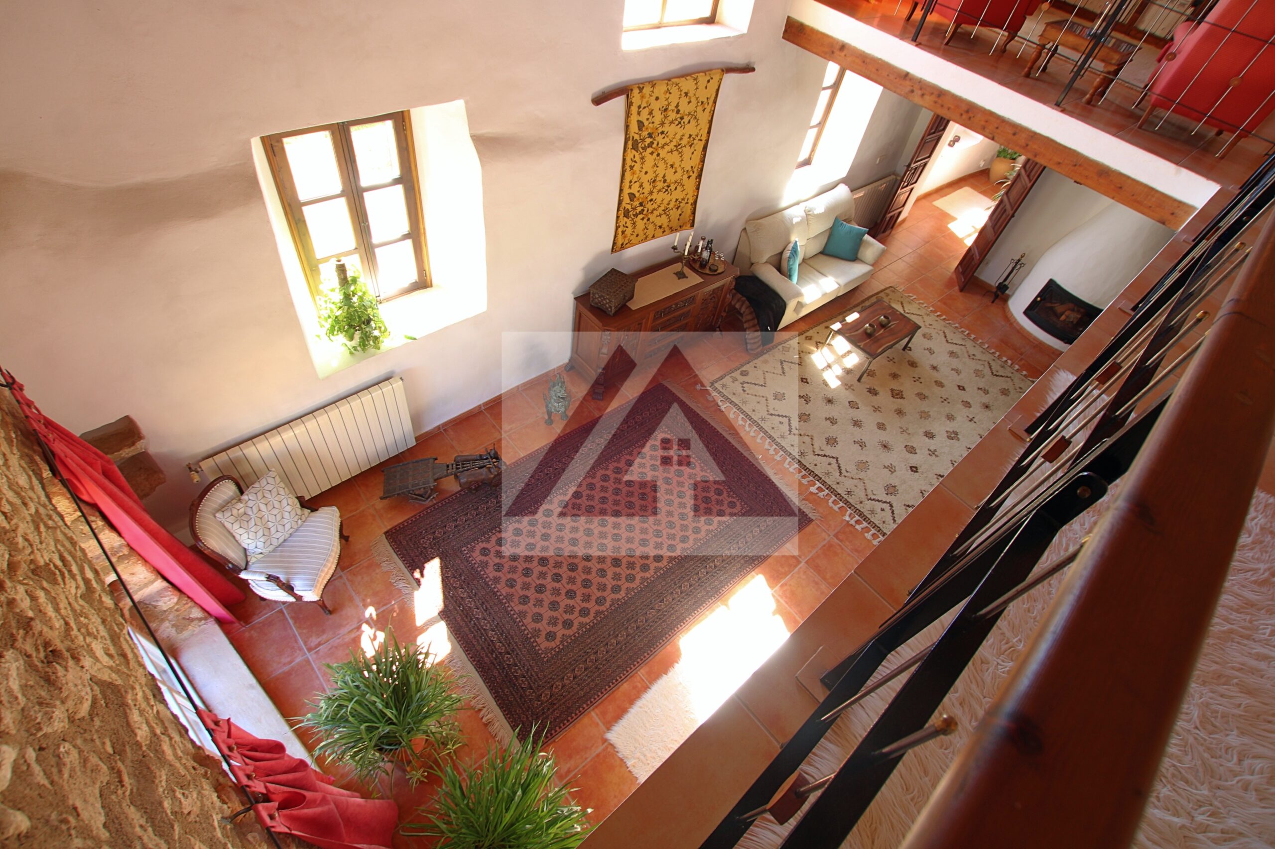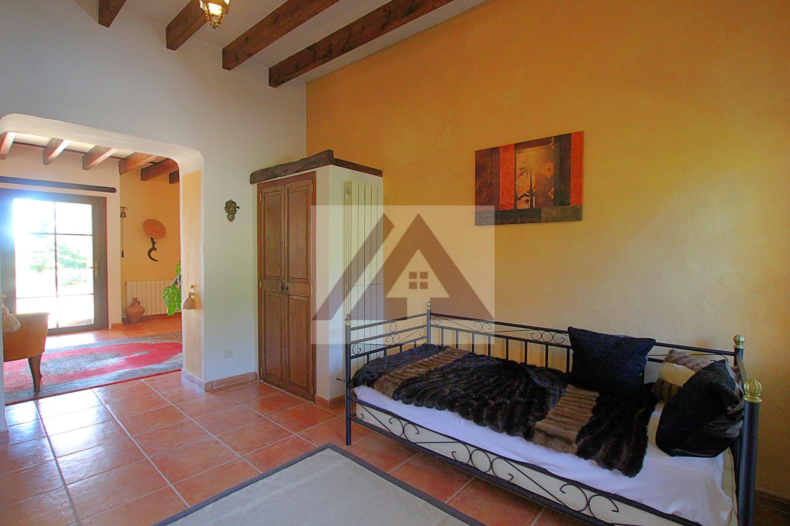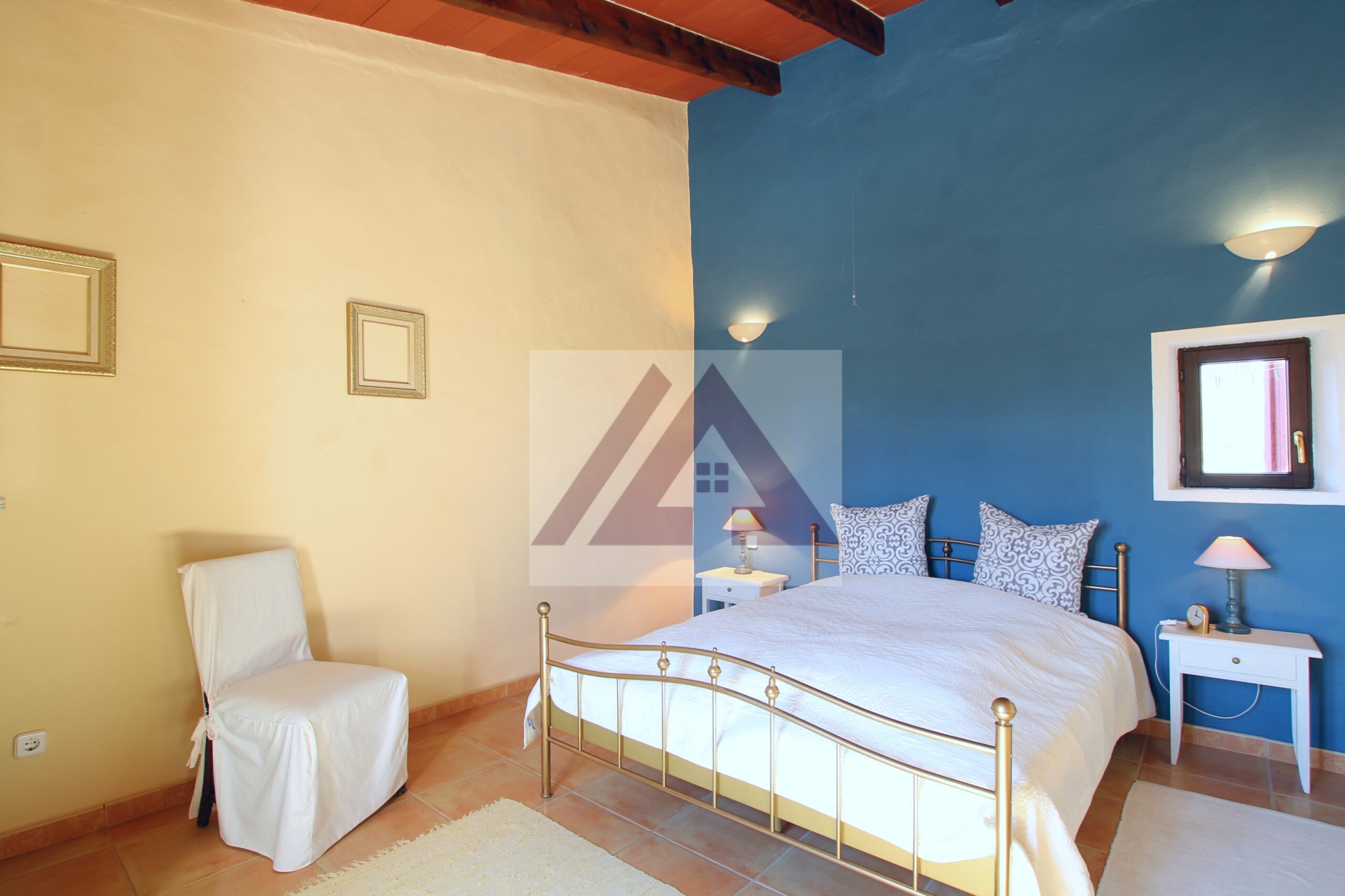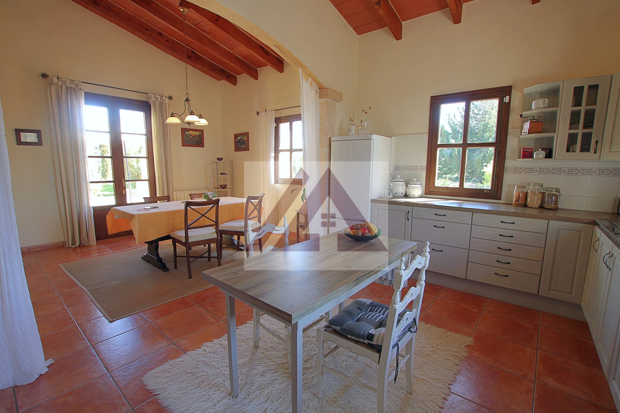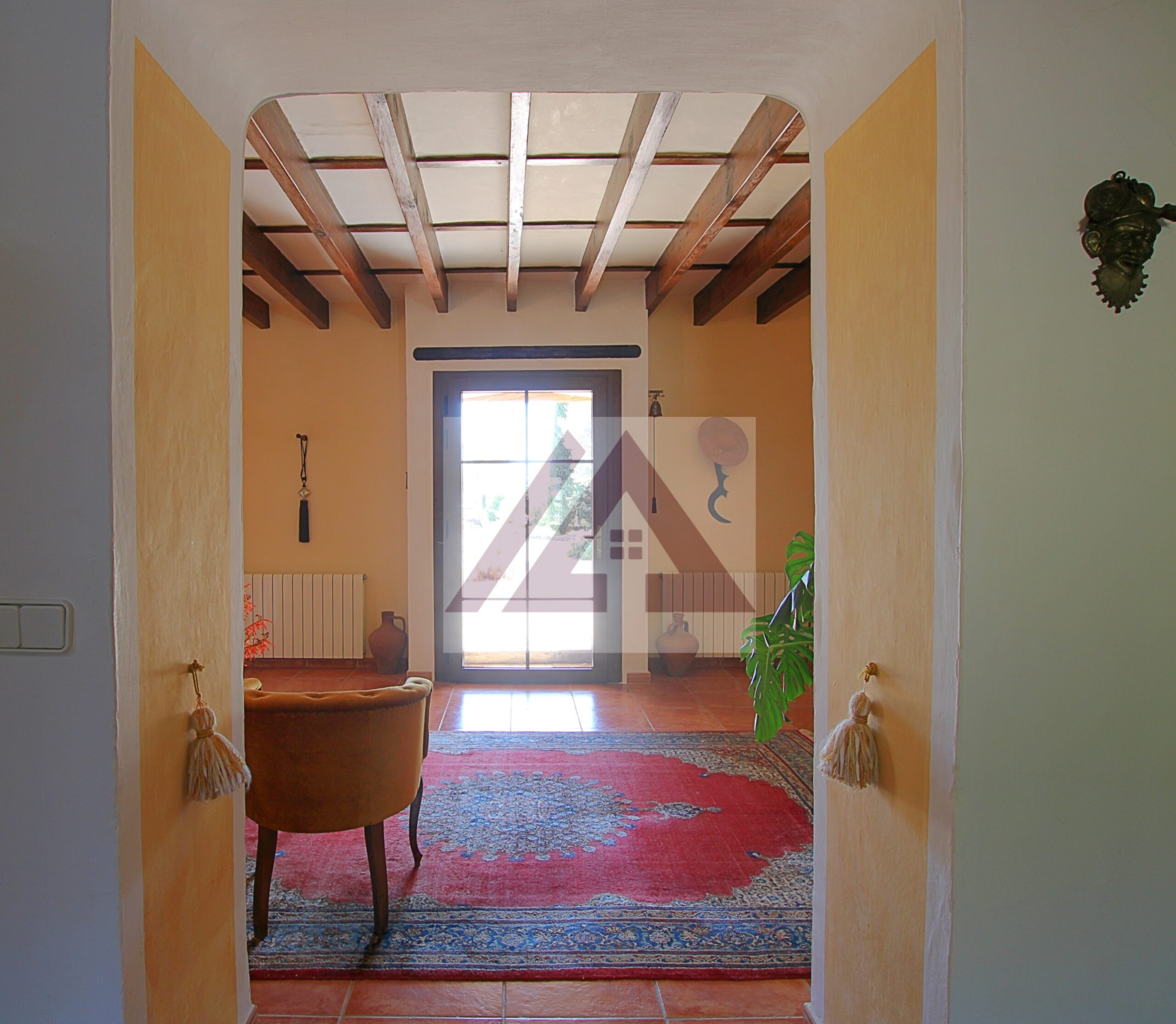 Das Haupthaus erstreckt sich über zwei Etagen, wobei sich im Erdgeschoss ein helles Wohnzimmer mit hohen Decken, sichtbaren Holzbalken, Steinwänden und einem restaurierten antiken Kamin, eine große Küche im Office-Stil und ein helles Esszimmer mit einem weiteren Kamin, ein Büro, eine Gästetoilette und ein Ausgang zur überdachten Terrasse mit einem authentischen mallorquinischen Ofen befinden.