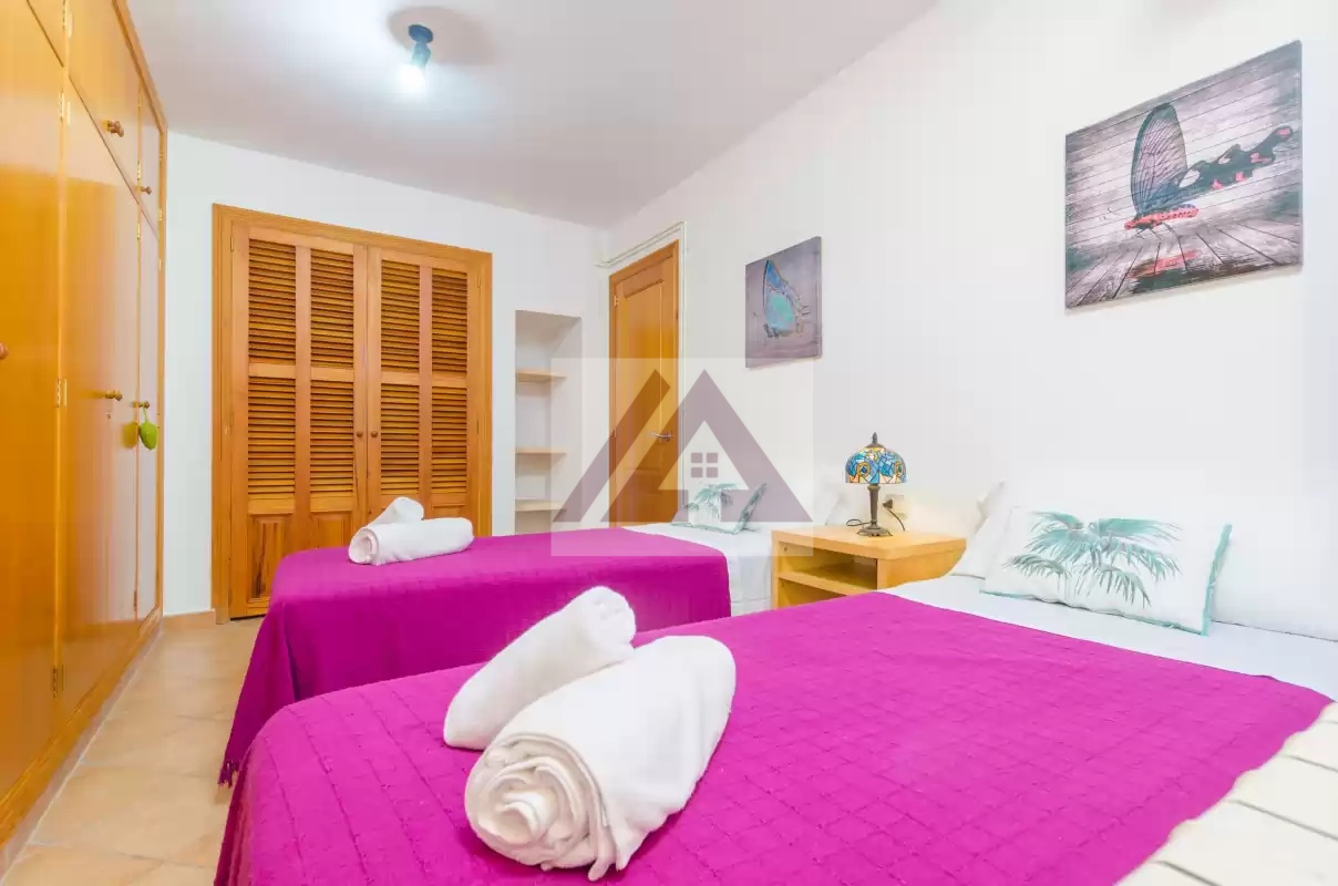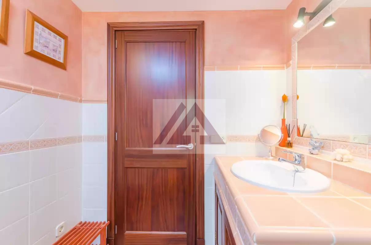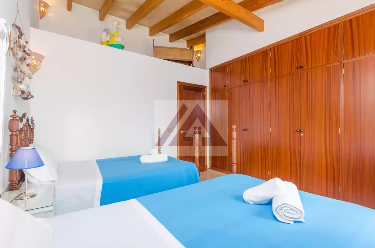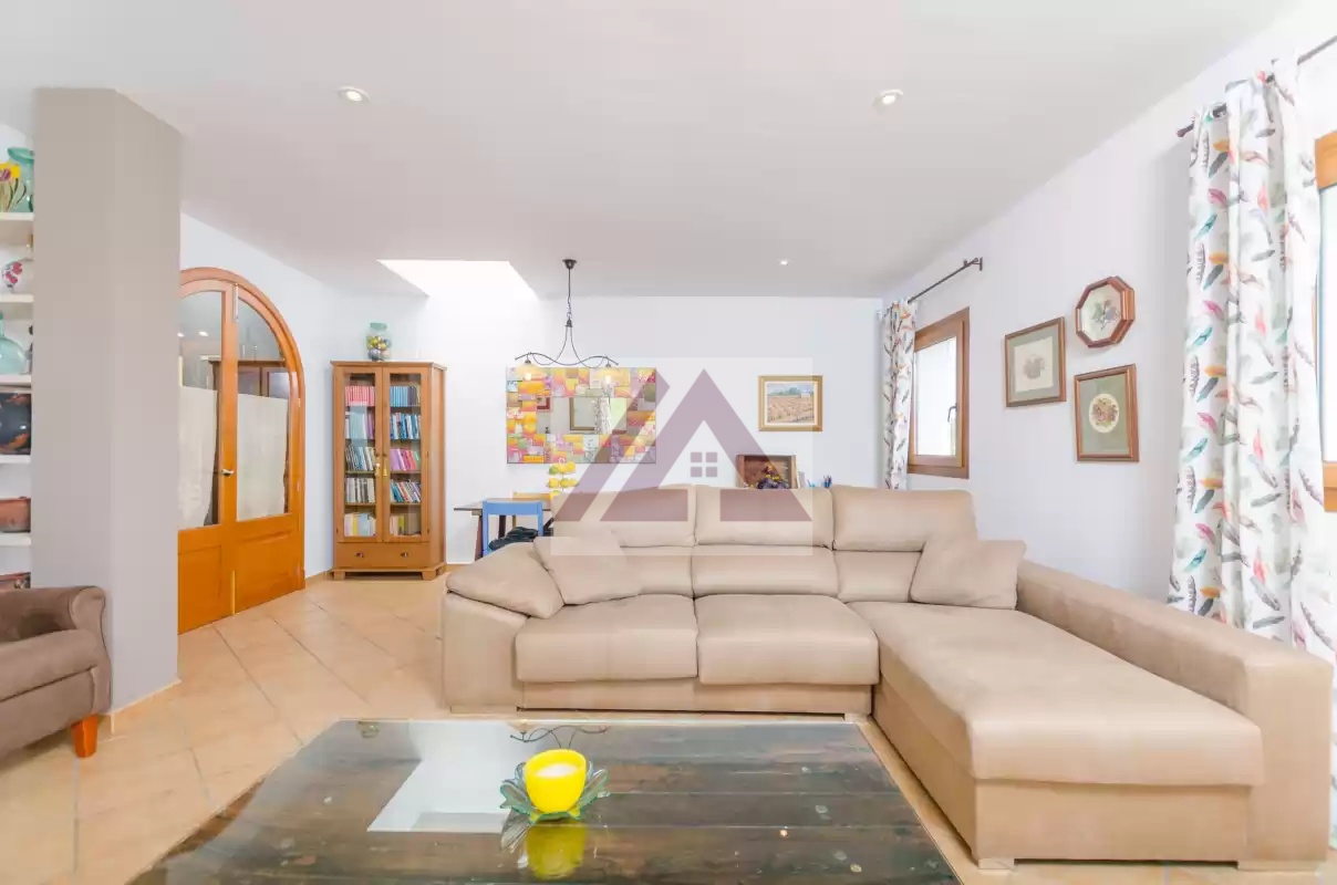 Im Haus gelangt man in ein helles Esszimmer, das in das Wohnzimmer mit einem zweiten Essbereich mit Blick auf den Pool und das Meer übergeht und mit der praktischen Küche mit Speisekammer und Waschküche verbunden ist.