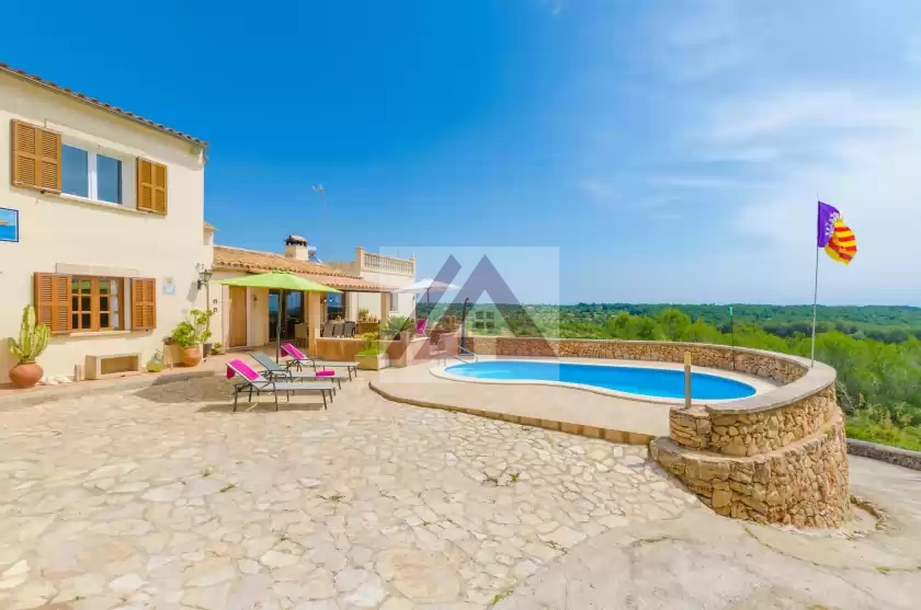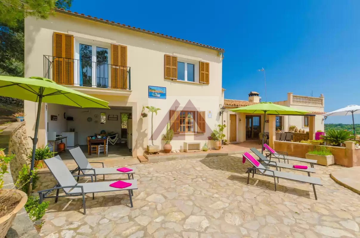 Nur wenige Autominuten vom Küstenort Portocolom entfernt, auf einem erhöhten Grundstück mit spektakulärem Meerblick, steht diese fantastische Finca zum Verkauf, die über eine Ferienlizenz für 8 Hotelbetten verfügt.