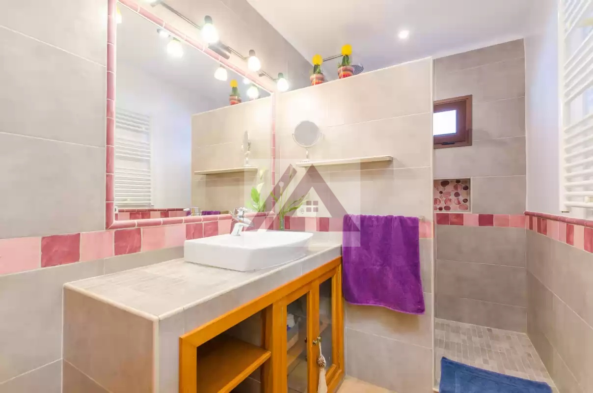 Im Untergeschoss des Hauses gibt es eine große Garage mit einem Badezimmer und einem Weinkeller.