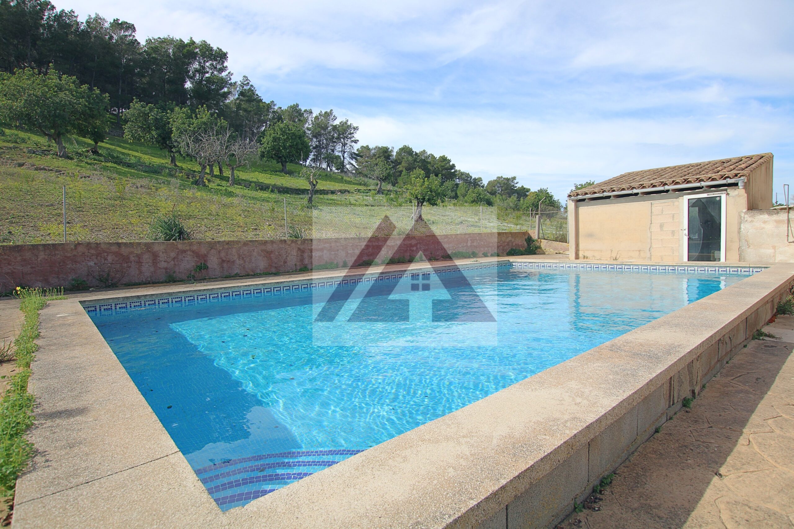Auf einem sonnigen, vollständig umzäunten Grundstück von 36.000 m² in der Nähe der Straße zwischen Portocolom und Felanitx wurde dieses 255 m² große Haus auf zwei Etagen gebaut, dazu gehören ein 60 m² großer Pool mit einem 17 m² großen Abstellraum, ein Außenbadezimmer, zwei Garagen und sogar einen etwa 20 m² großen Pferdestall.