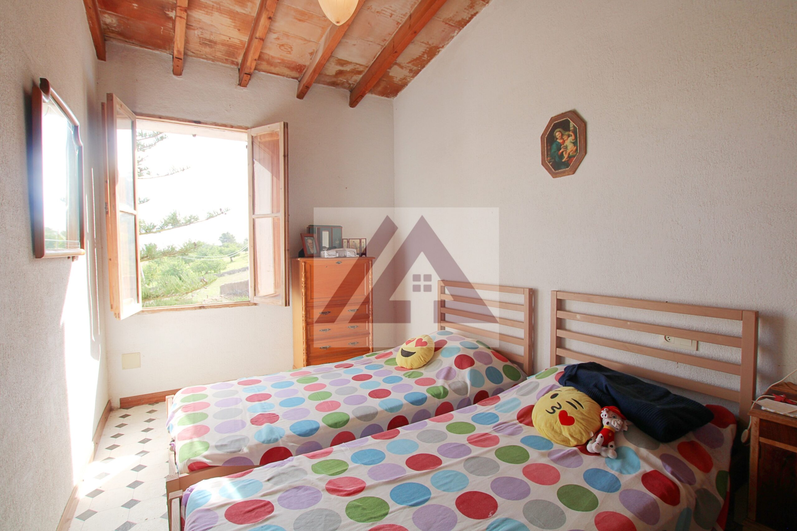 Im Erdgeschoss des Haupthauses befinden sich zwei Doppelzimmer, alle nach außen gelegen, und ein komplettes Badezimmer sowie ein separater Raum, in dem sich früher die Familie versammelte, um Tiere zu schlachten und Sobrasada zuzubereiten.
