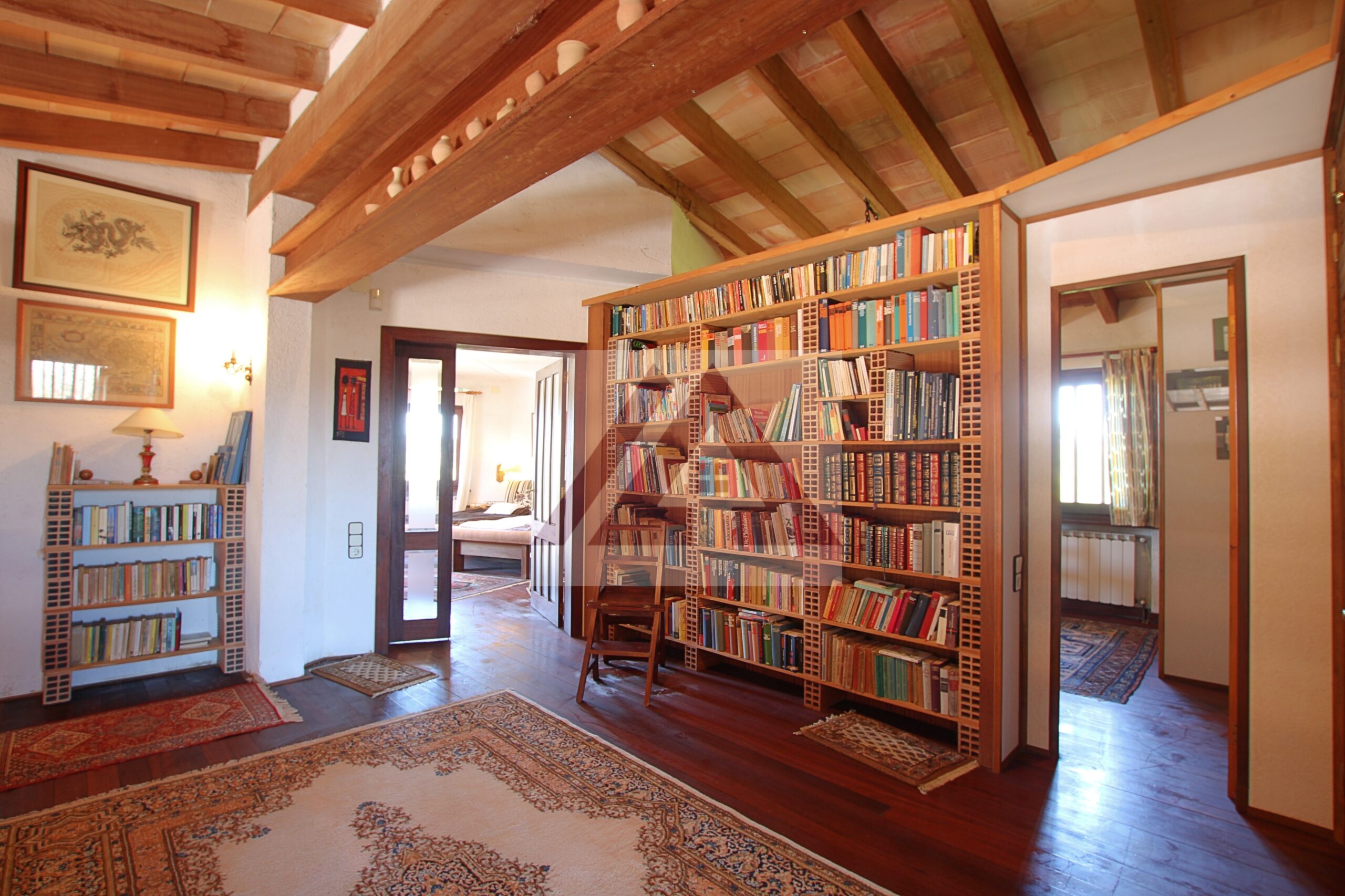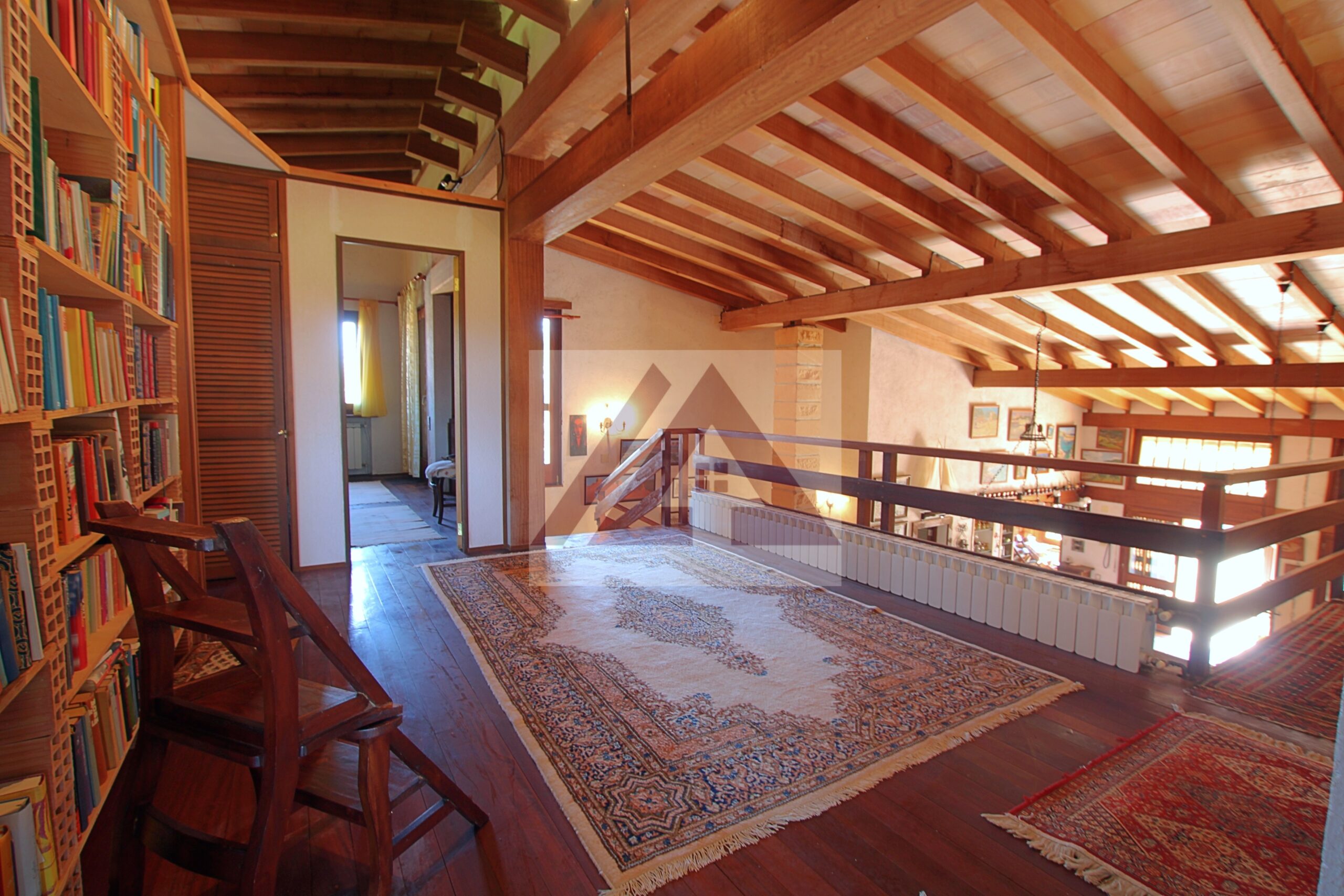 En la planta superior dispone de una biblioteca, dos habitaciones, una de ella con vestidor y baño en suite y salida a la terraza con vistas despejadas.