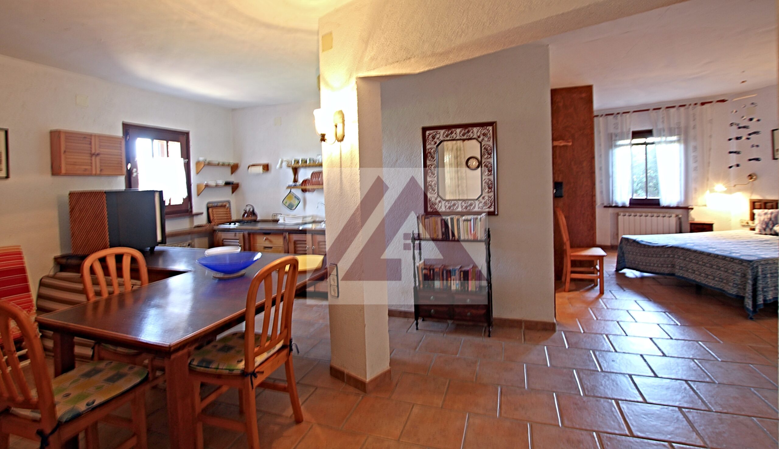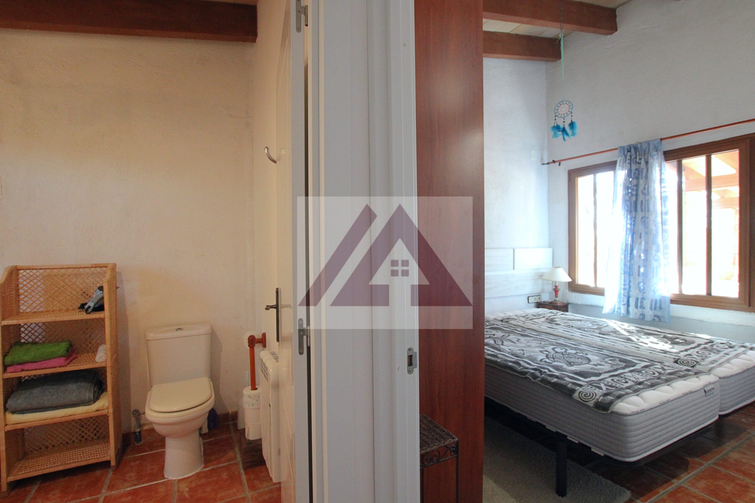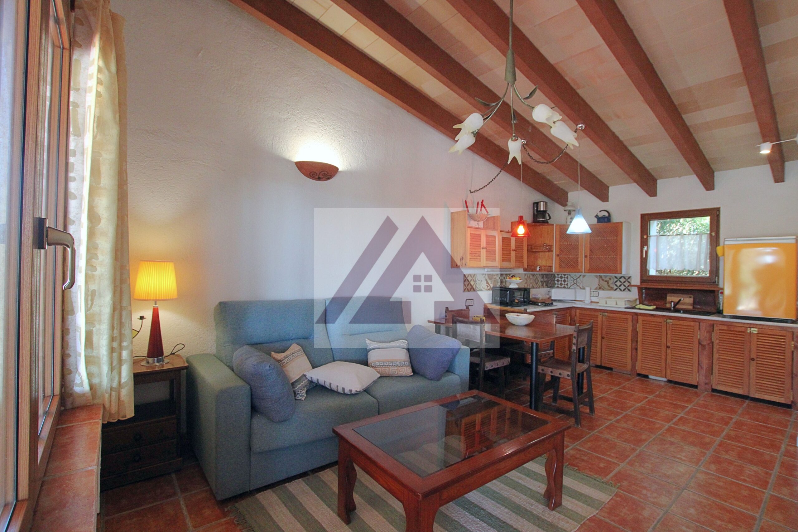 La casita de invitados se compone de una habitación doble, cocina-salón, baño completo y una amplia terraza techada.