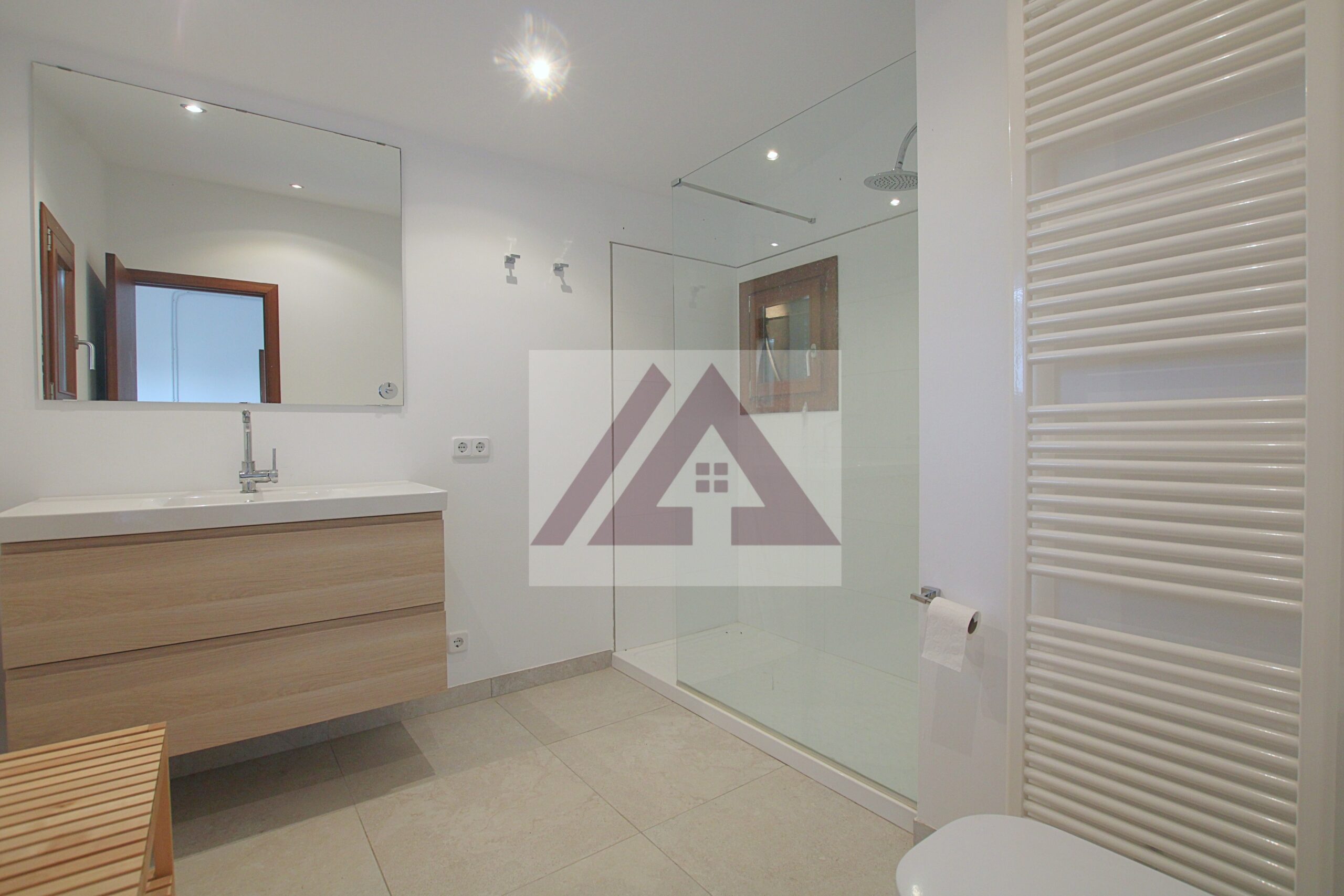 Im Obergeschoss befinden sich zwei geräumige Schlafzimmer mit eigenem Bad, großen Einbauschränken und Zugang zur großen Terrasse mit freiem Blick auf die Felder und den Wald.